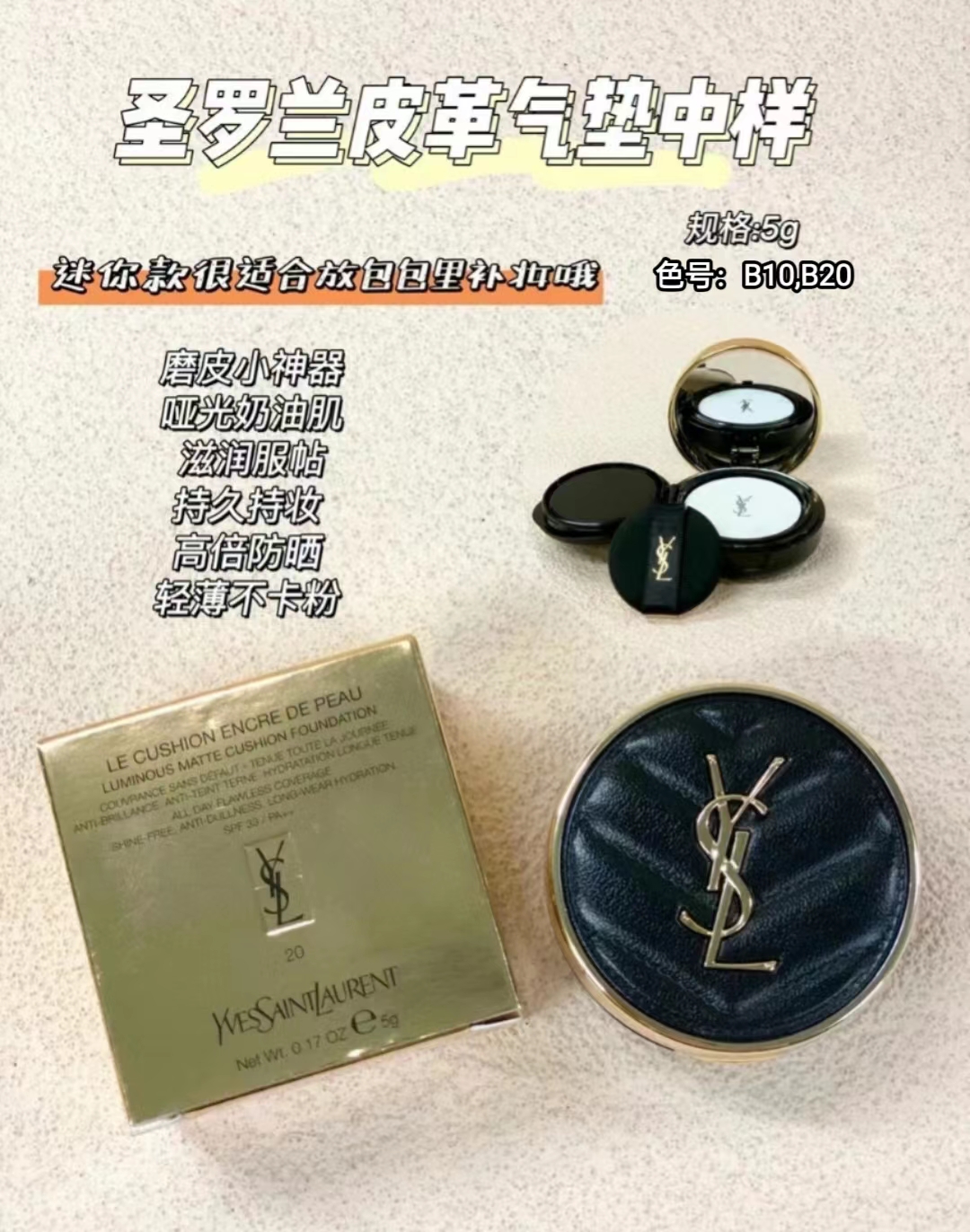 [小滋心选]【活动价¥69.9】圣罗兰明彩轻垫粉底液小样5g(粉色皮革,黑色皮革)5g