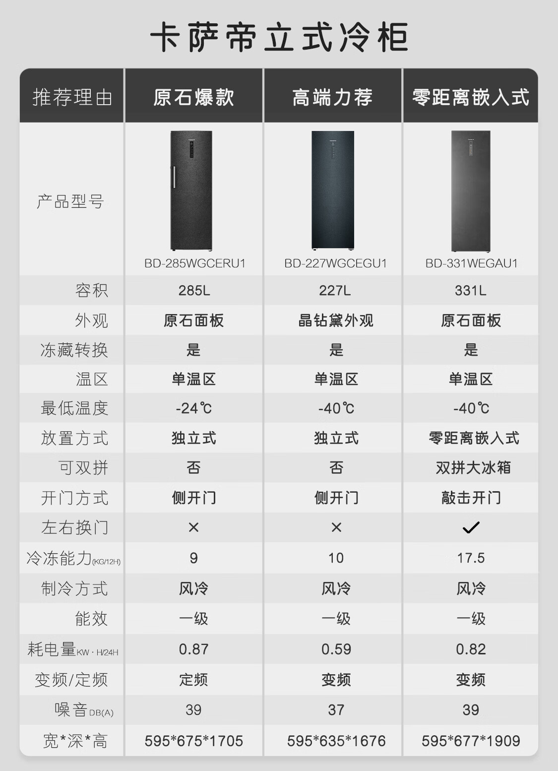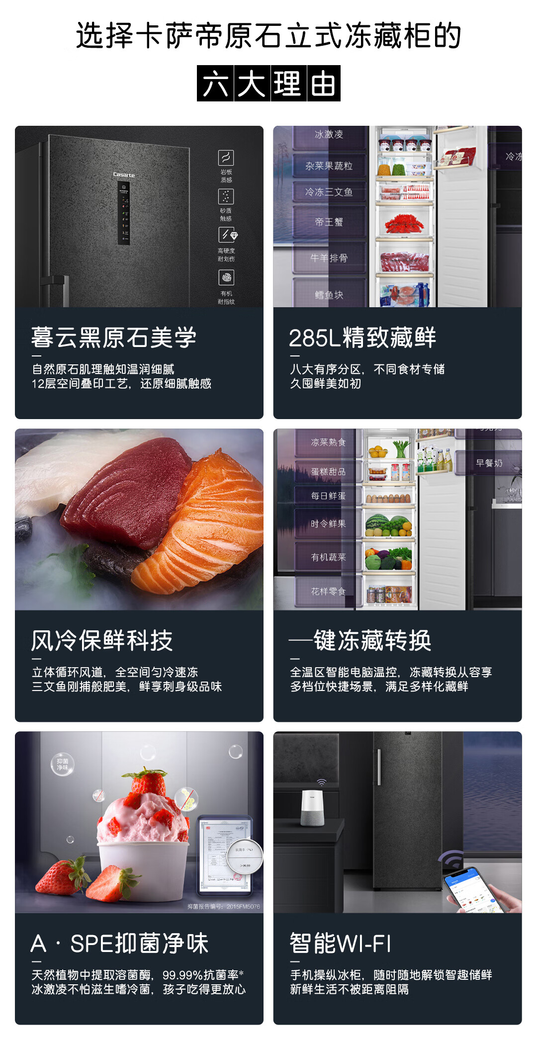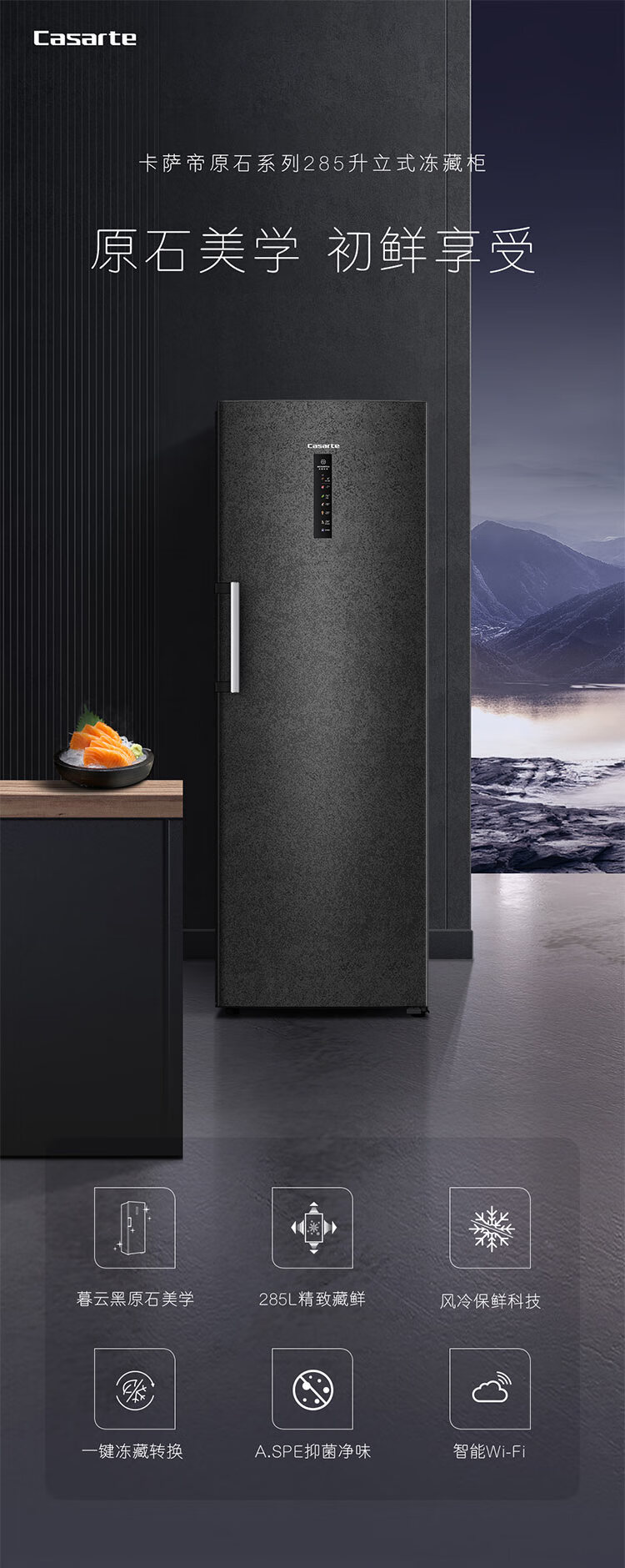卡萨帝(Casarte)原石系列285升风冷家用立式冰柜 一级能效 冷柜冰箱冷藏冷冻柜BD-285WGCERU1