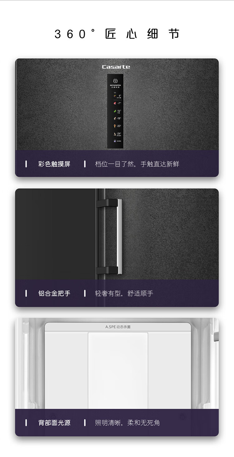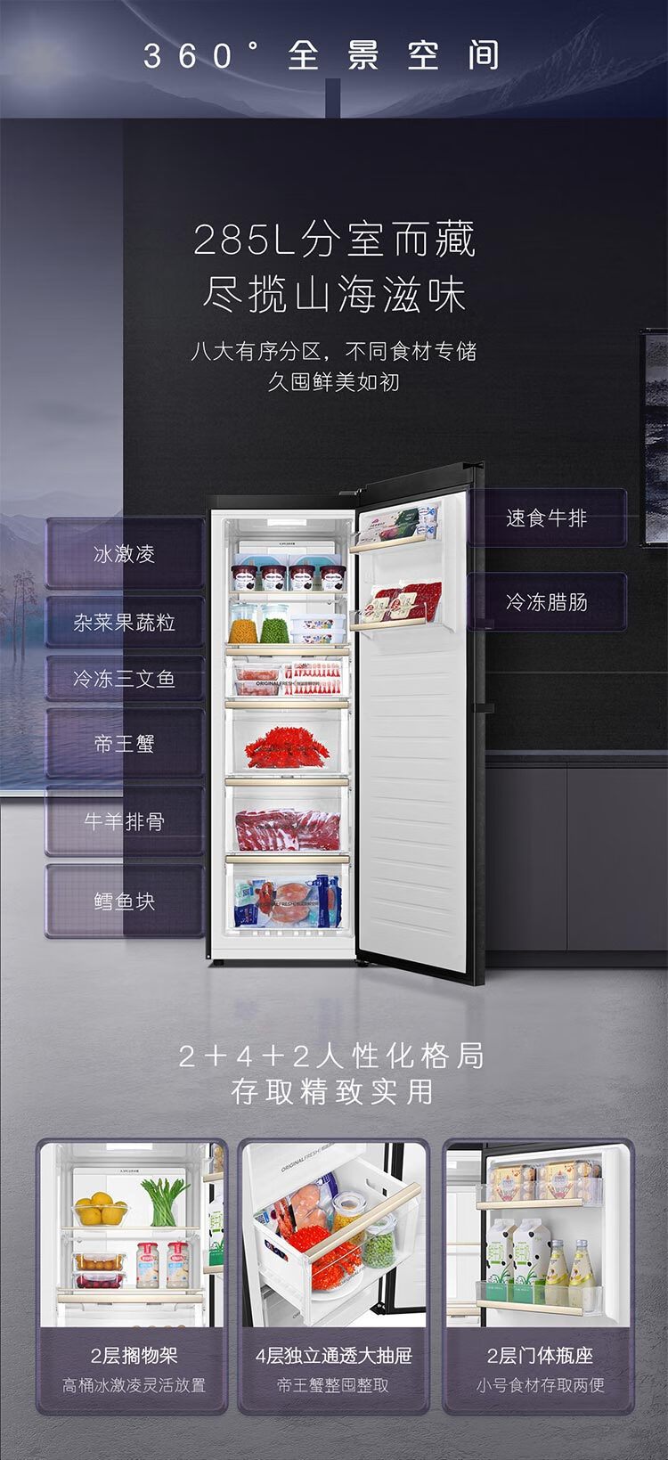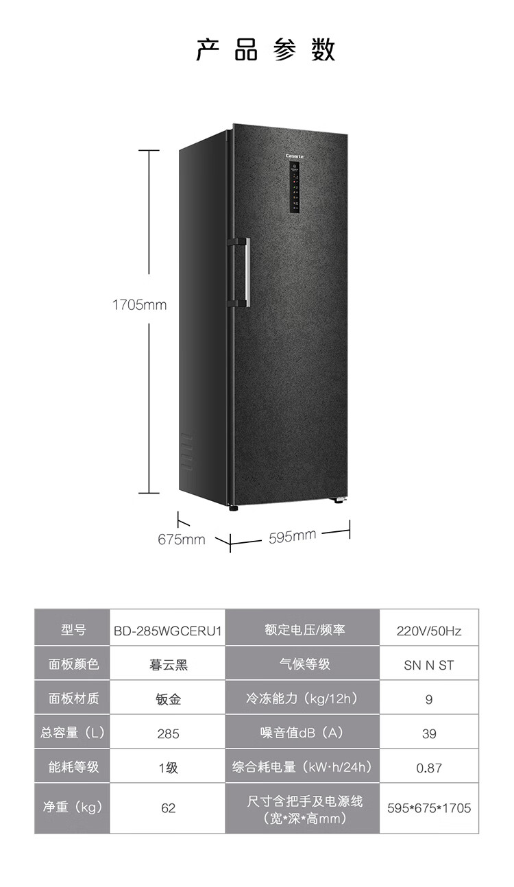 卡萨帝(Casarte)原石系列285升风冷家用立式冰柜 一级能效 冷柜冰箱冷藏冷冻柜BD-285WGCERU1