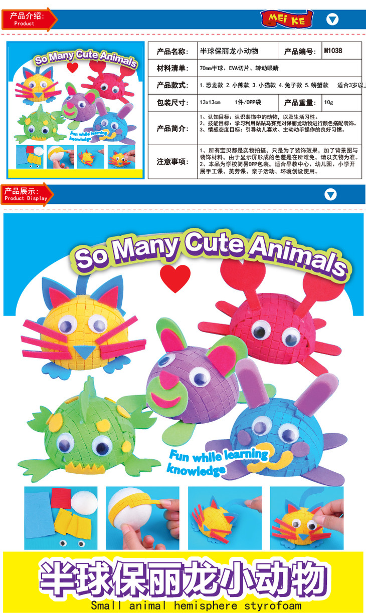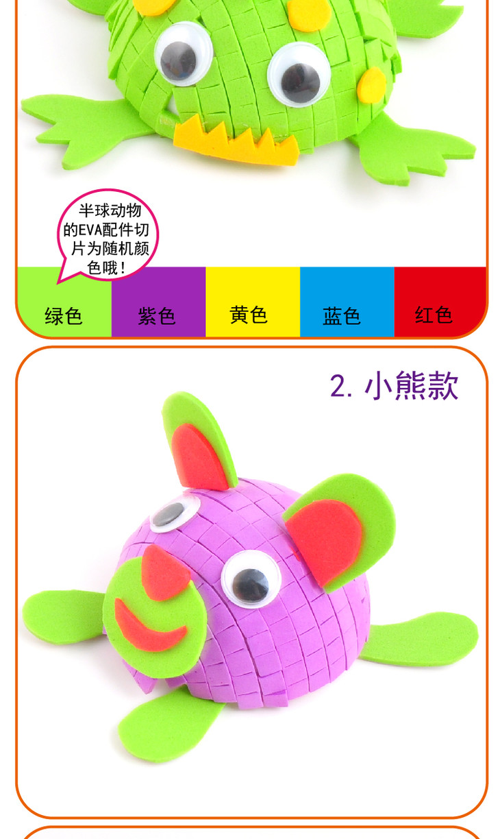 幼儿园课堂手工DIY半球保利龙小动物材料包