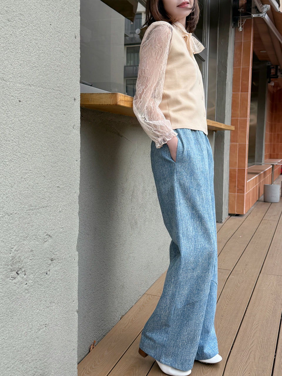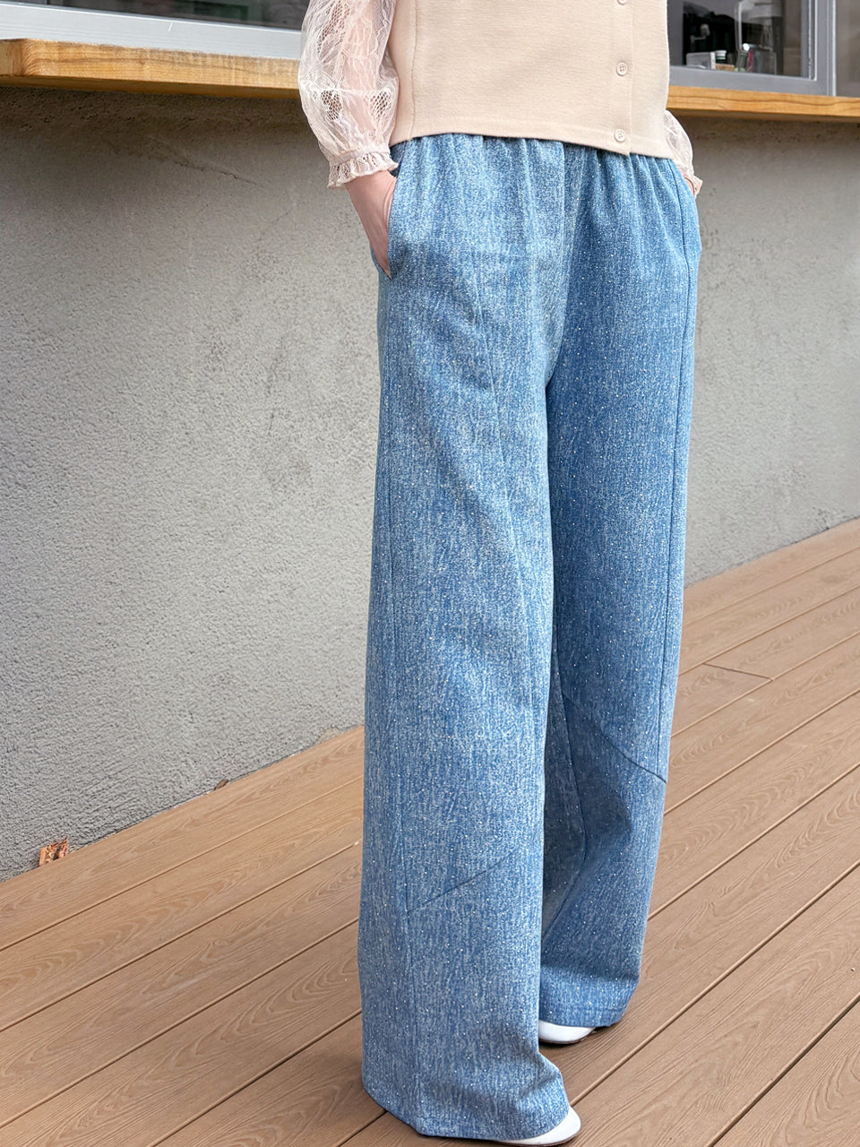 TYNVIE 插袋直筒阔腿裤-白色