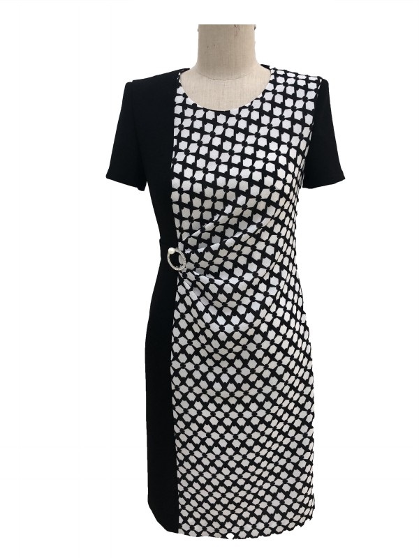 皮尔卡丹女装夏季新款简约通勤拼接修身连衣裙P1279D1111B3