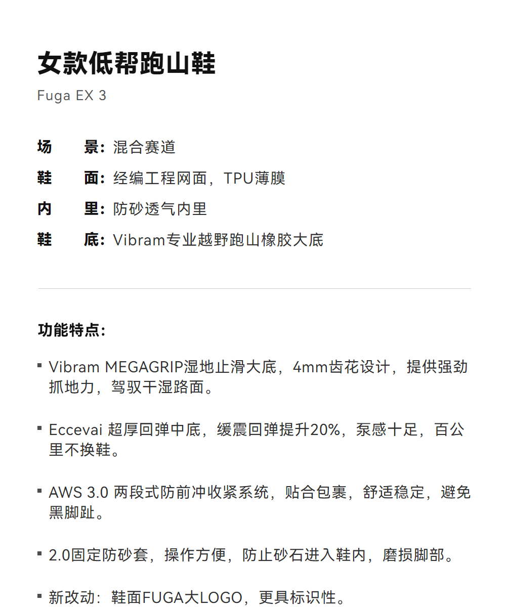KAILAS凯乐石 男女款低帮越野跑山鞋(Fuga EX 3) KS2413112/KS2433179