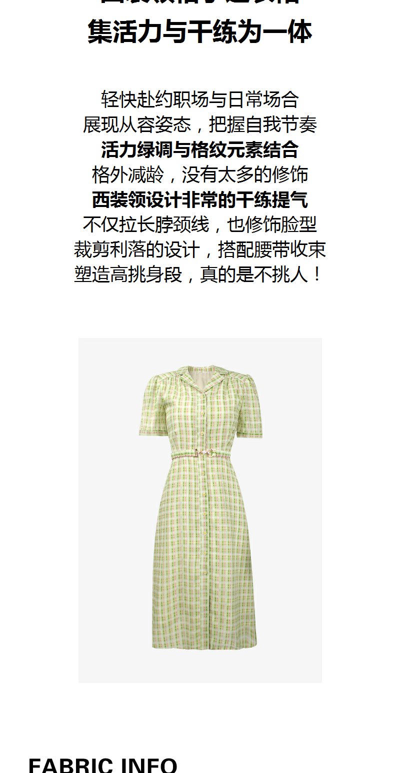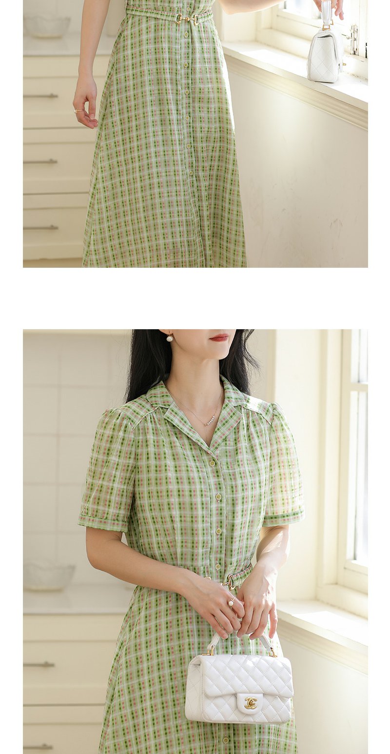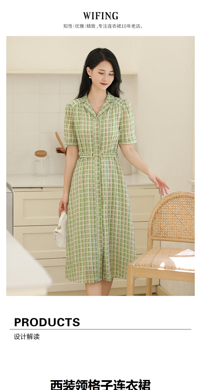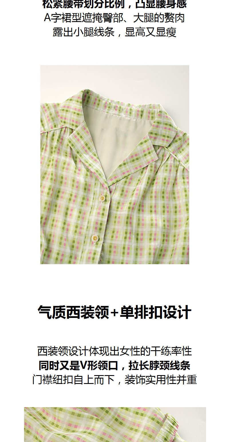未风绿色格子西装领连衣裙女夏2025年夏季新款气质小个子显高裙子