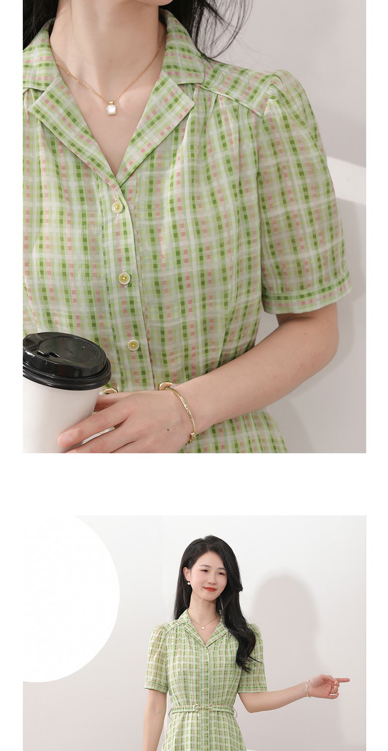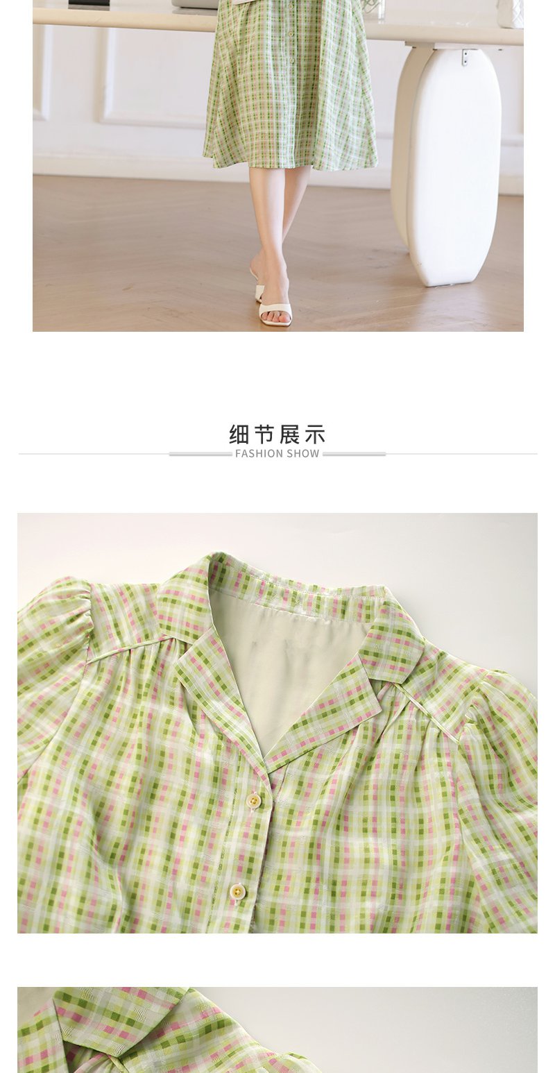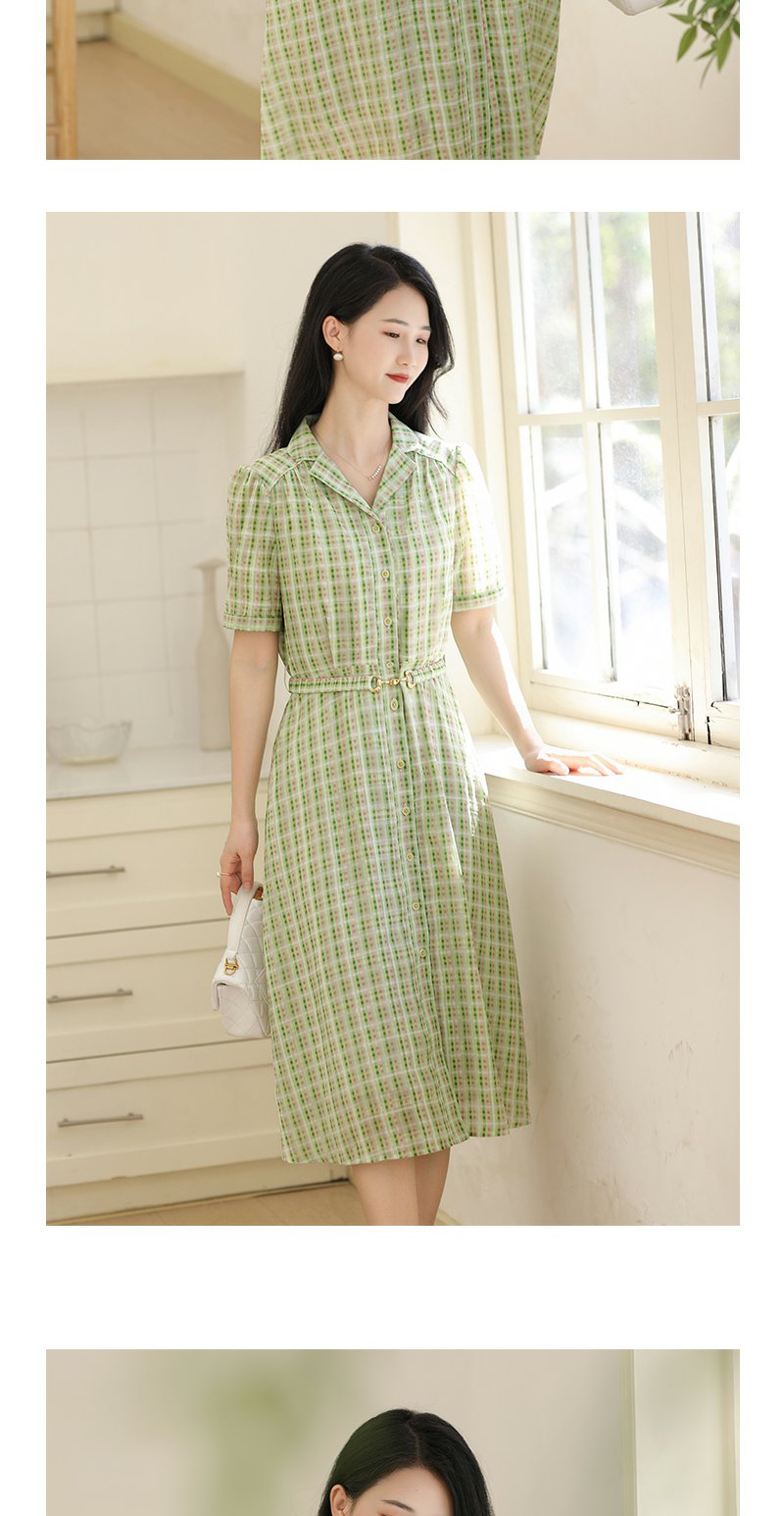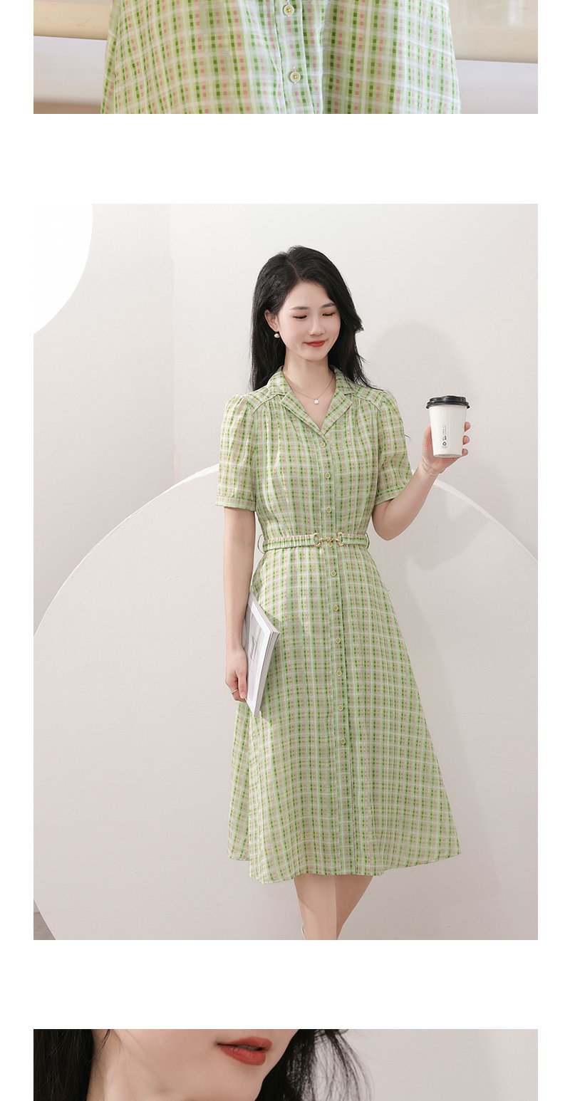 未风绿色格子西装领连衣裙女夏2025年夏季新款气质小个子显高裙子