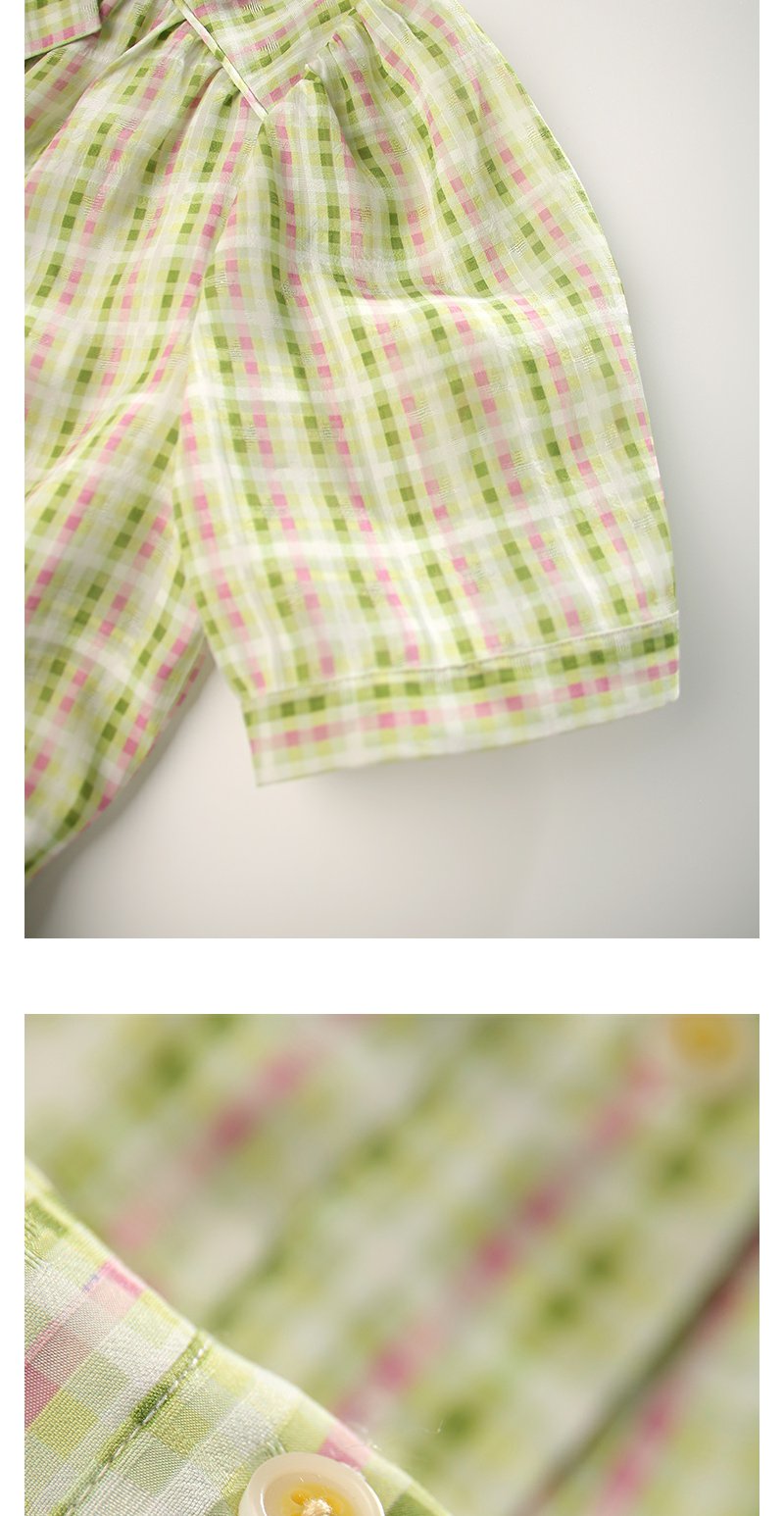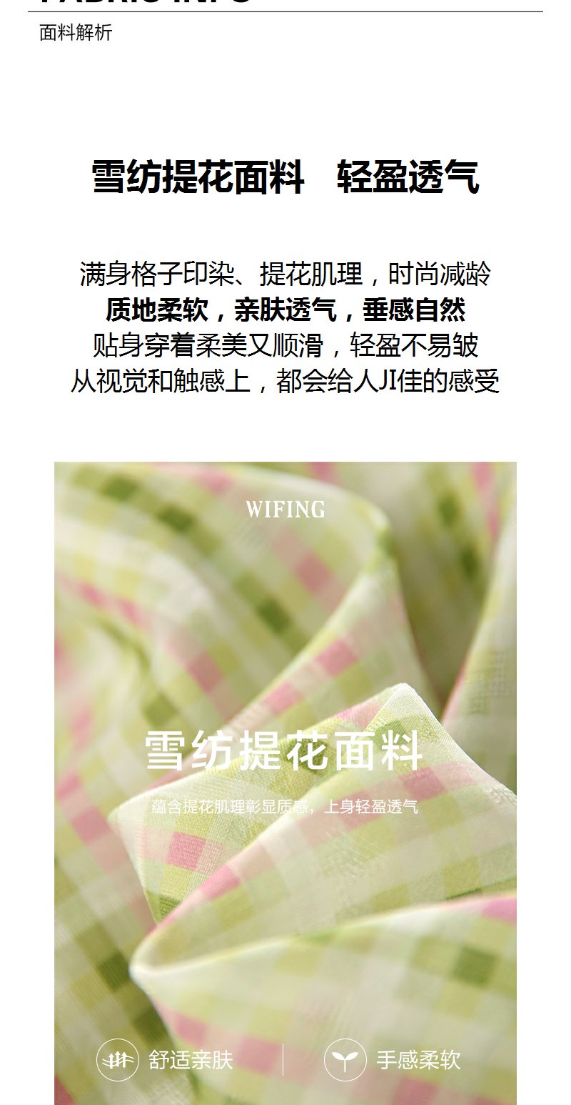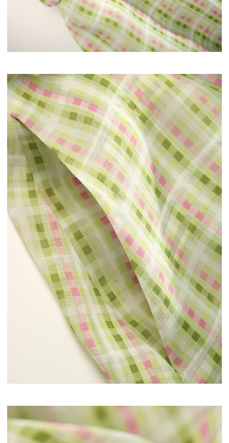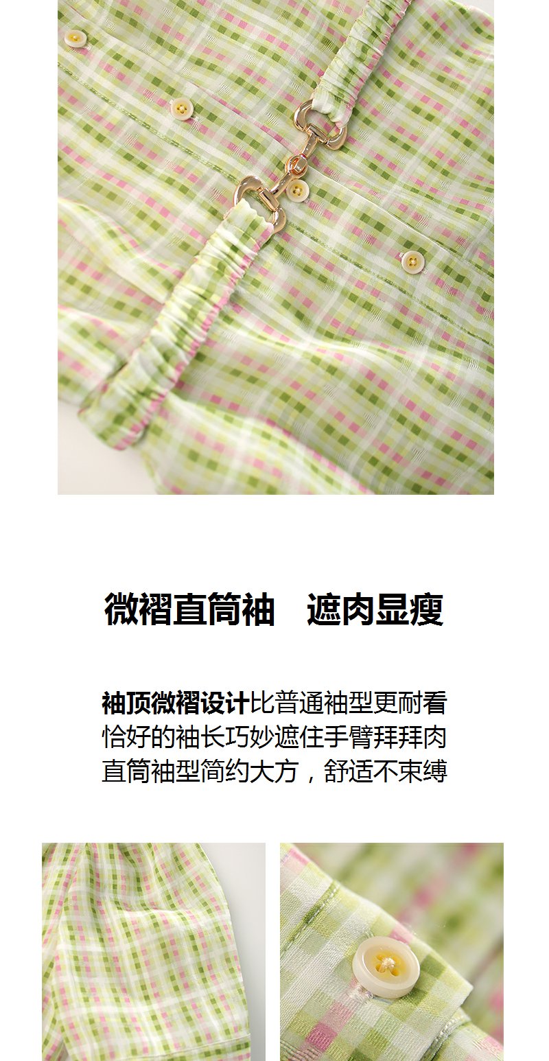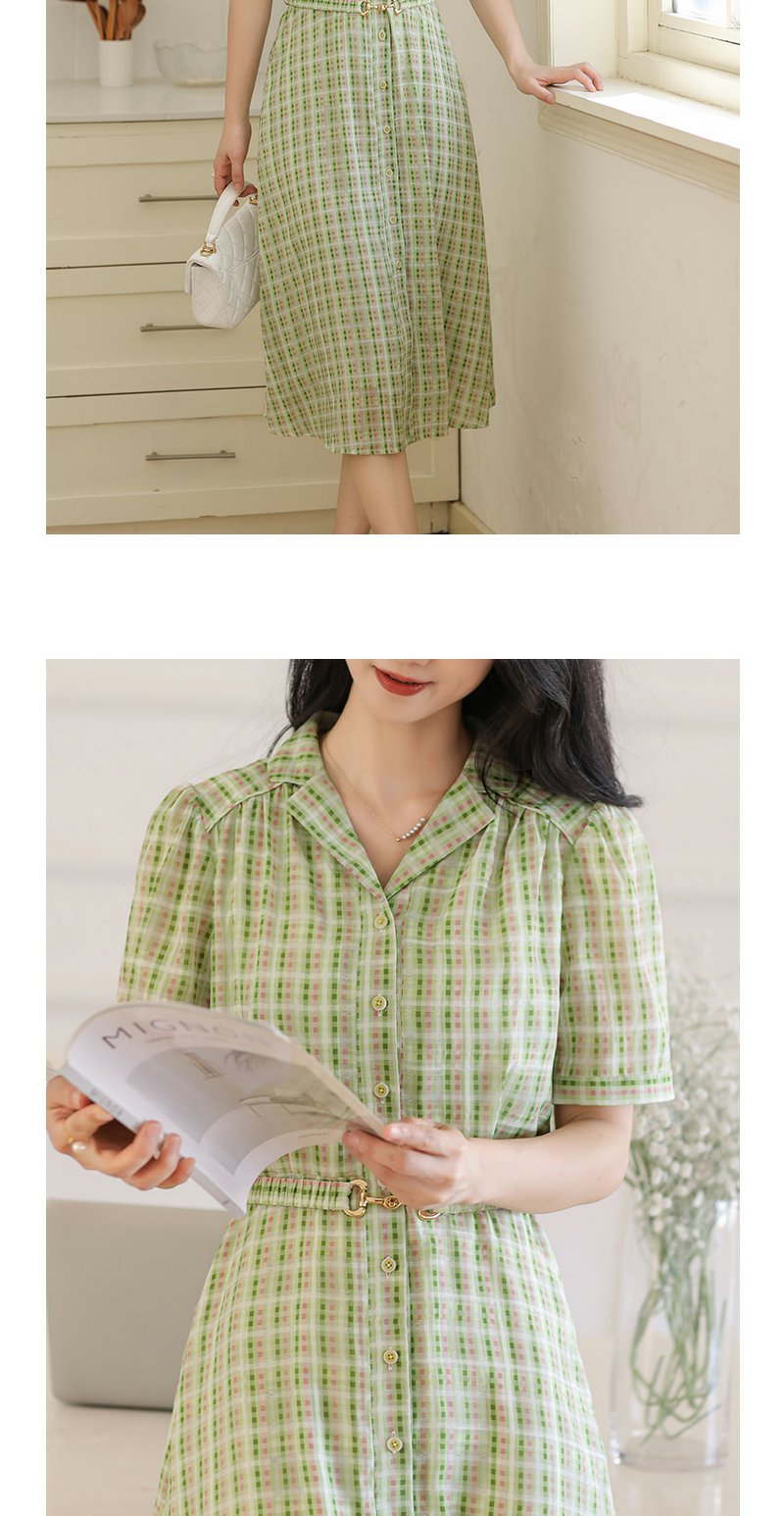 未风绿色格子西装领连衣裙女夏2025年夏季新款气质小个子显高裙子