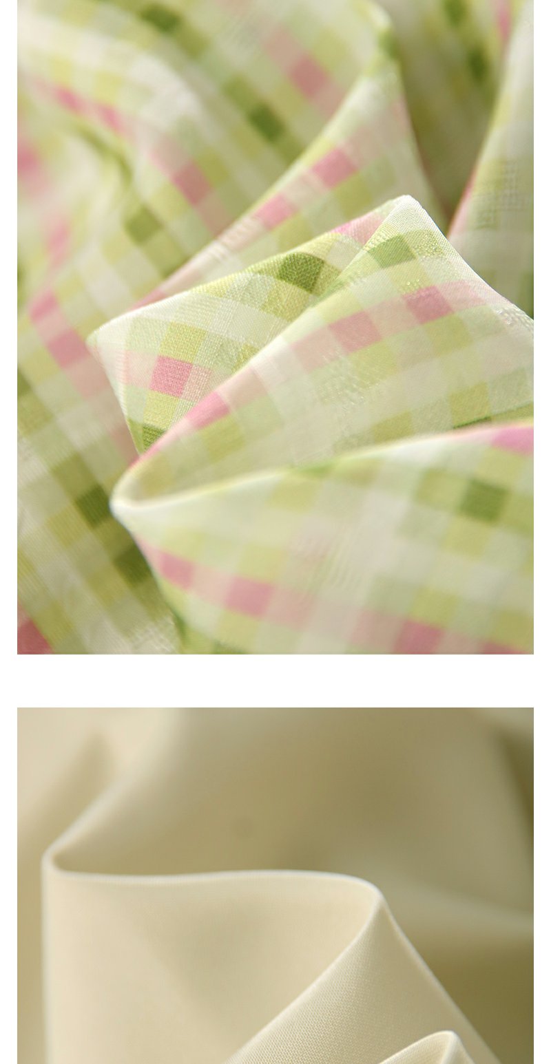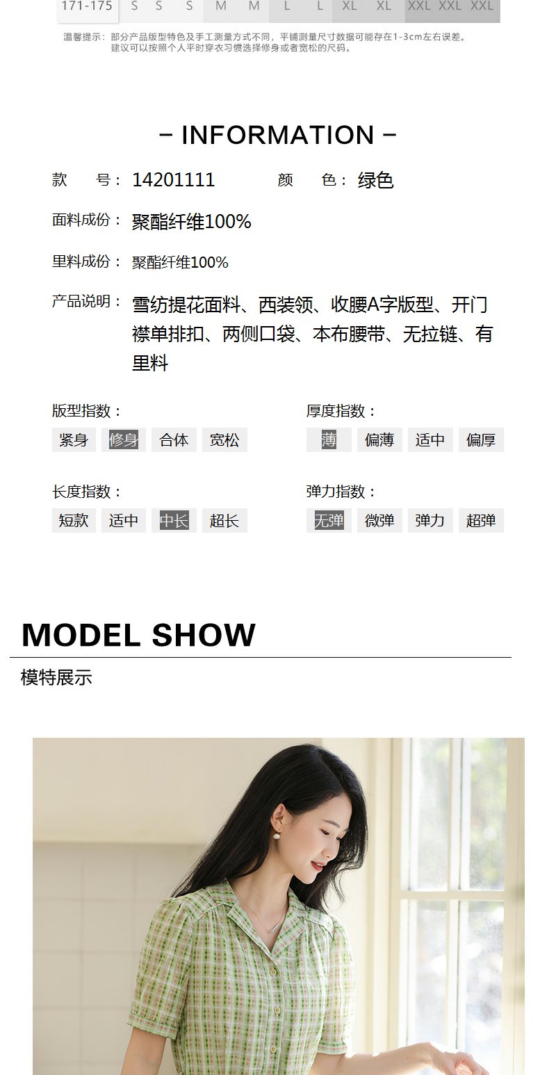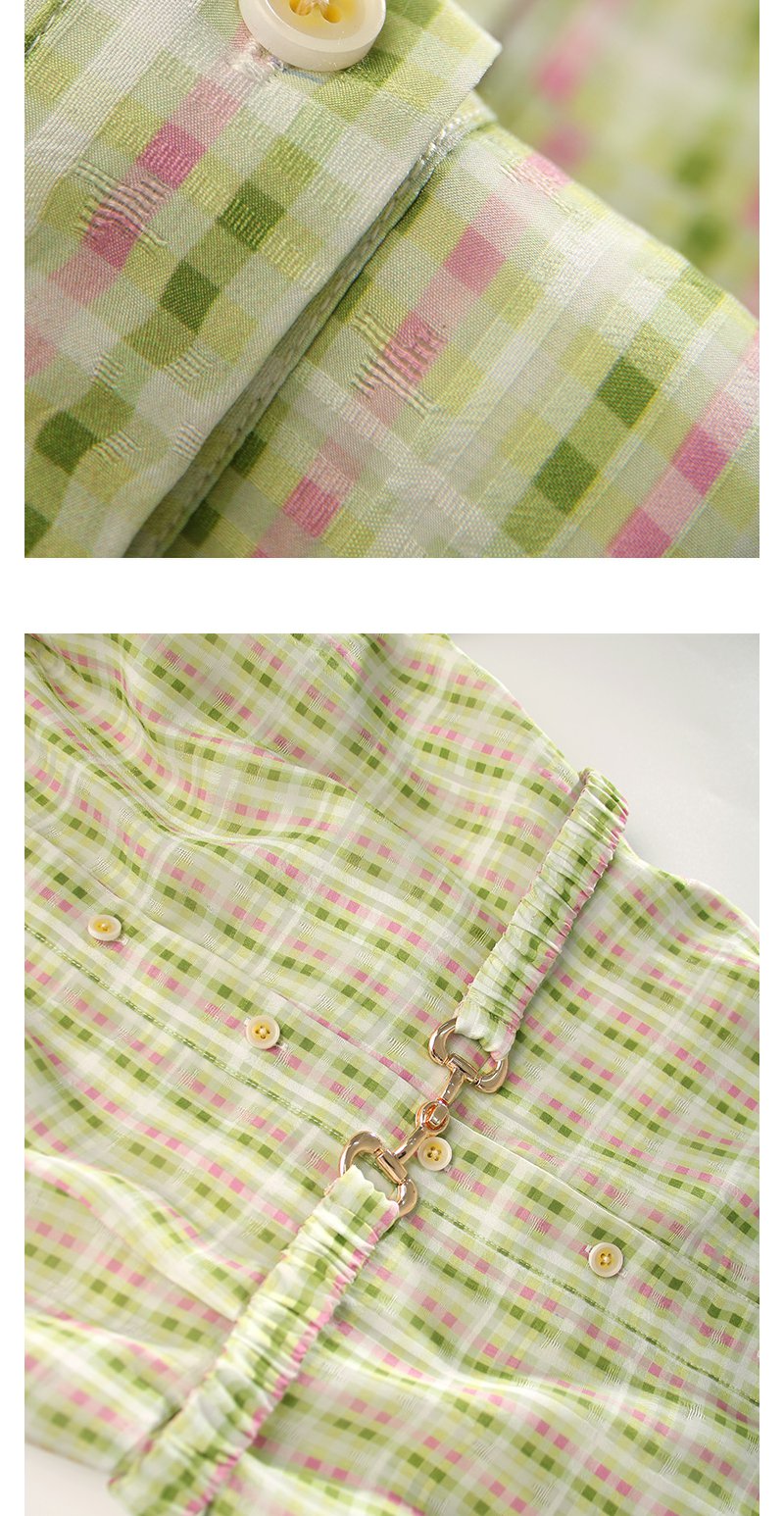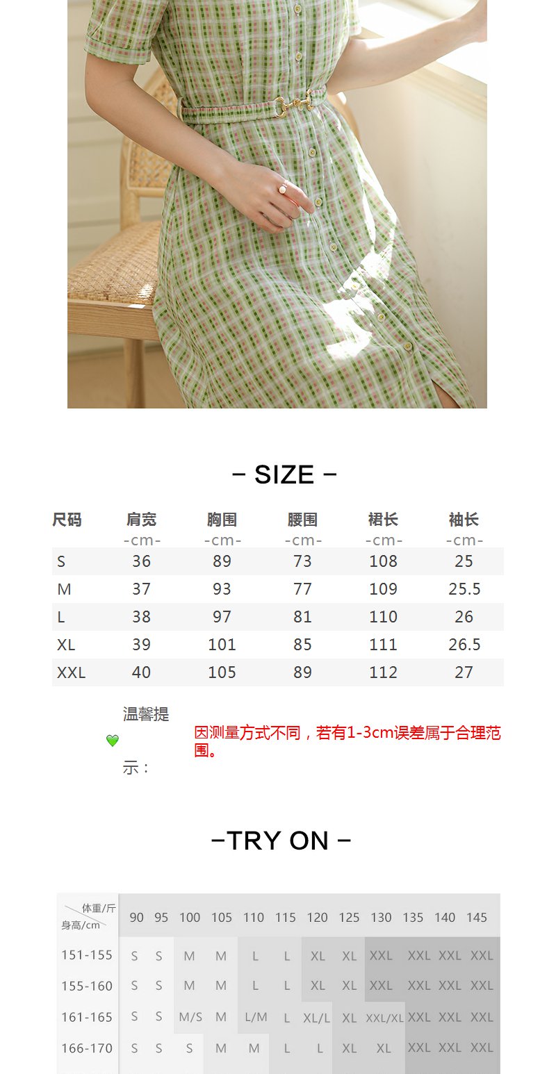 未风绿色格子西装领连衣裙女夏2025年夏季新款气质小个子显高裙子
