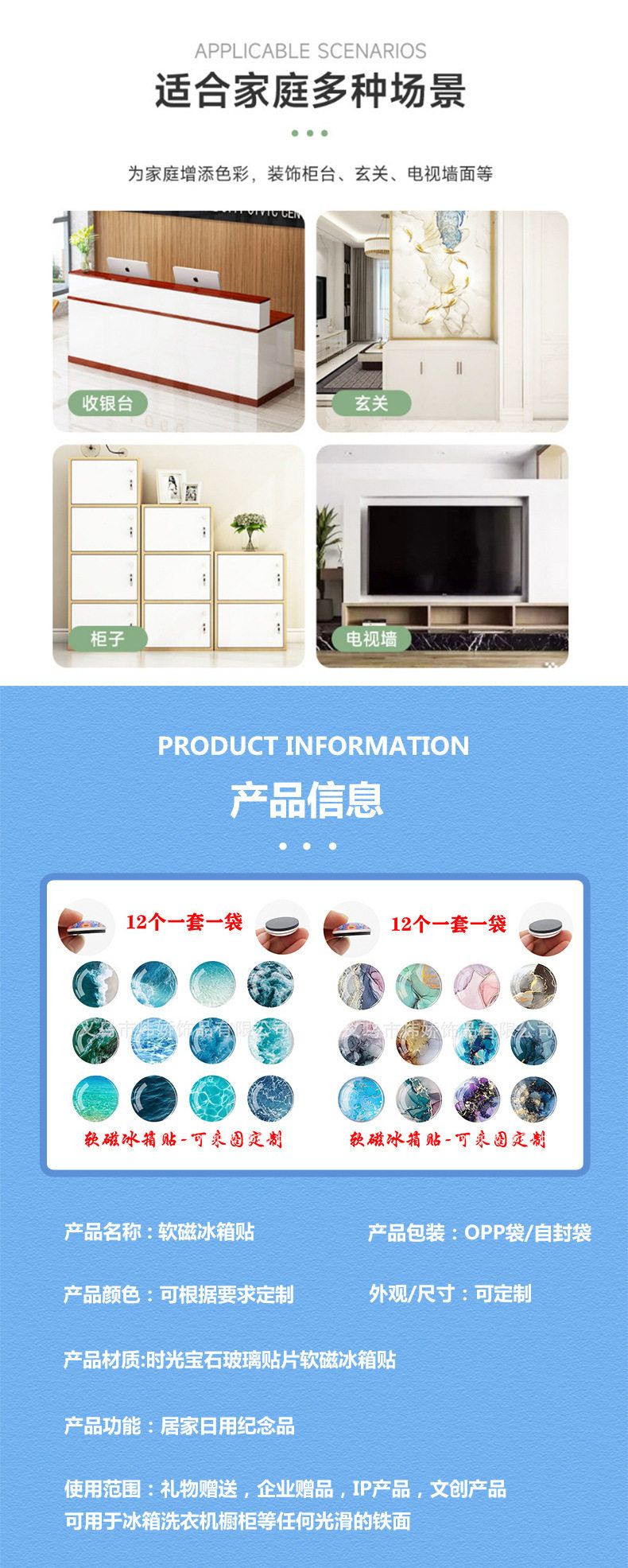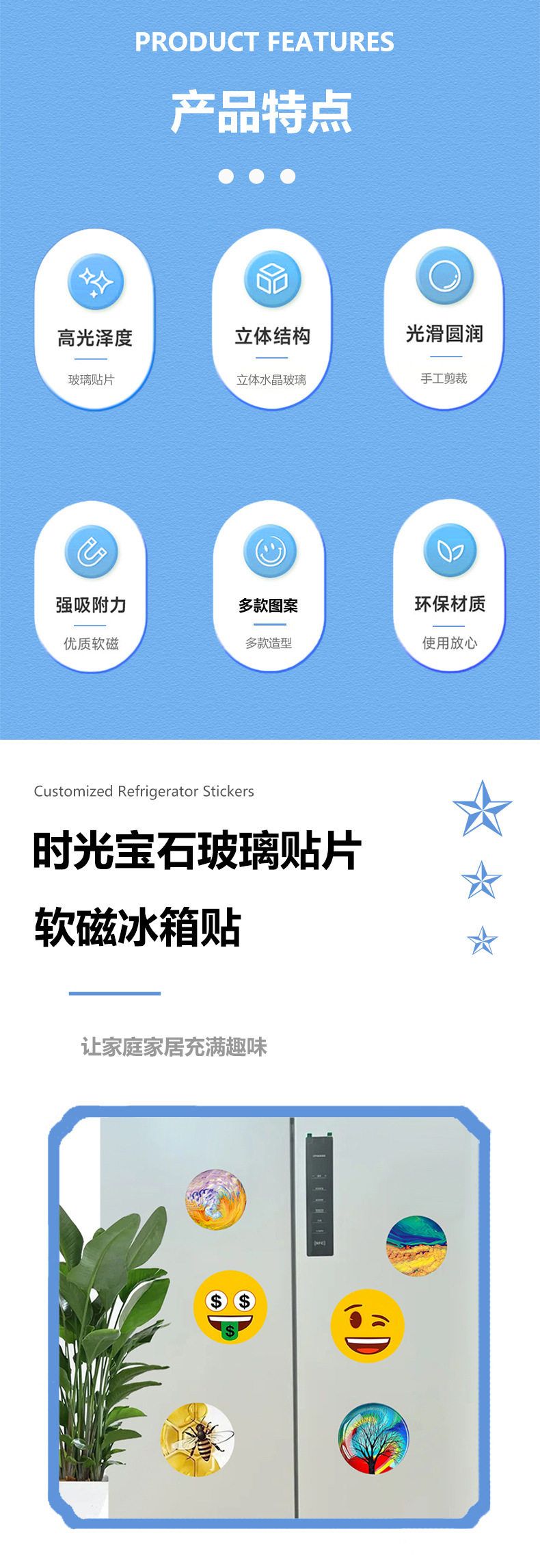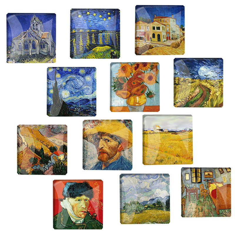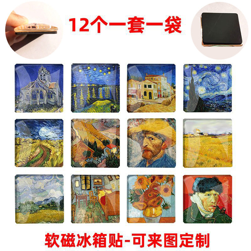 跨境配饰 梵高星空向日葵名画 时光宝石方形玻璃贴片软磁冰箱贴