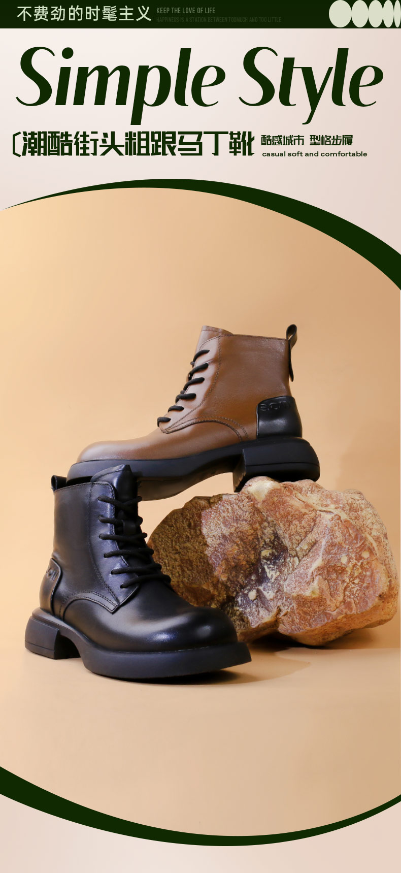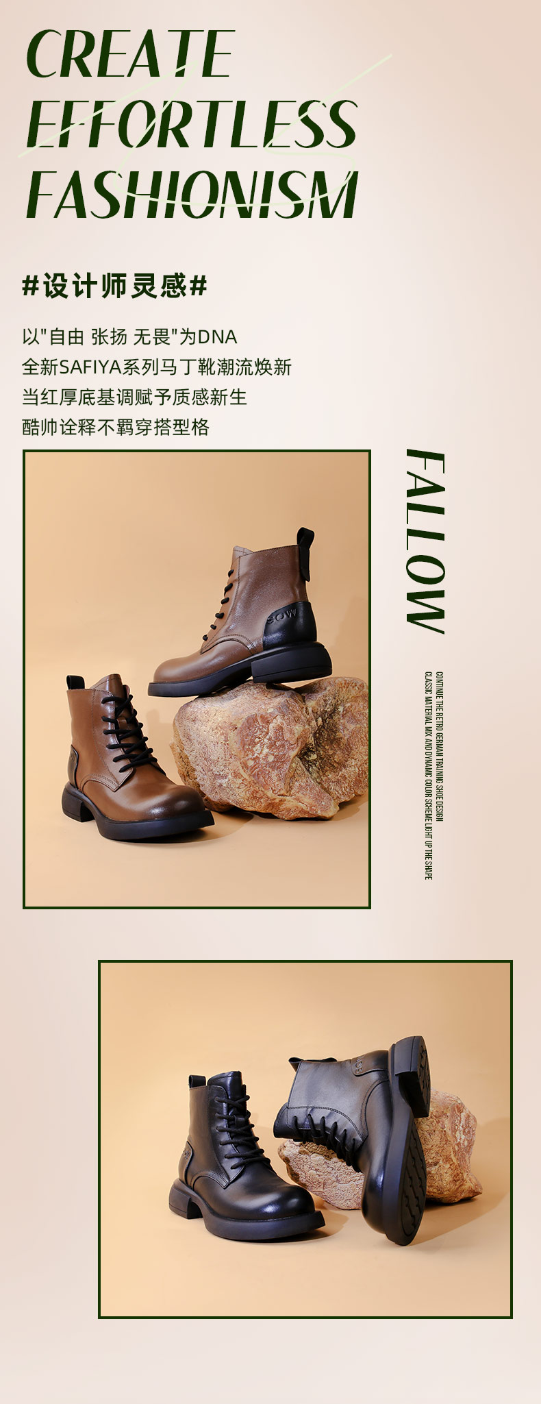 超值精选 | Safiya/索菲娅2023冬季潮酷街头粗跟英伦风圆头马丁靴 SF33912353