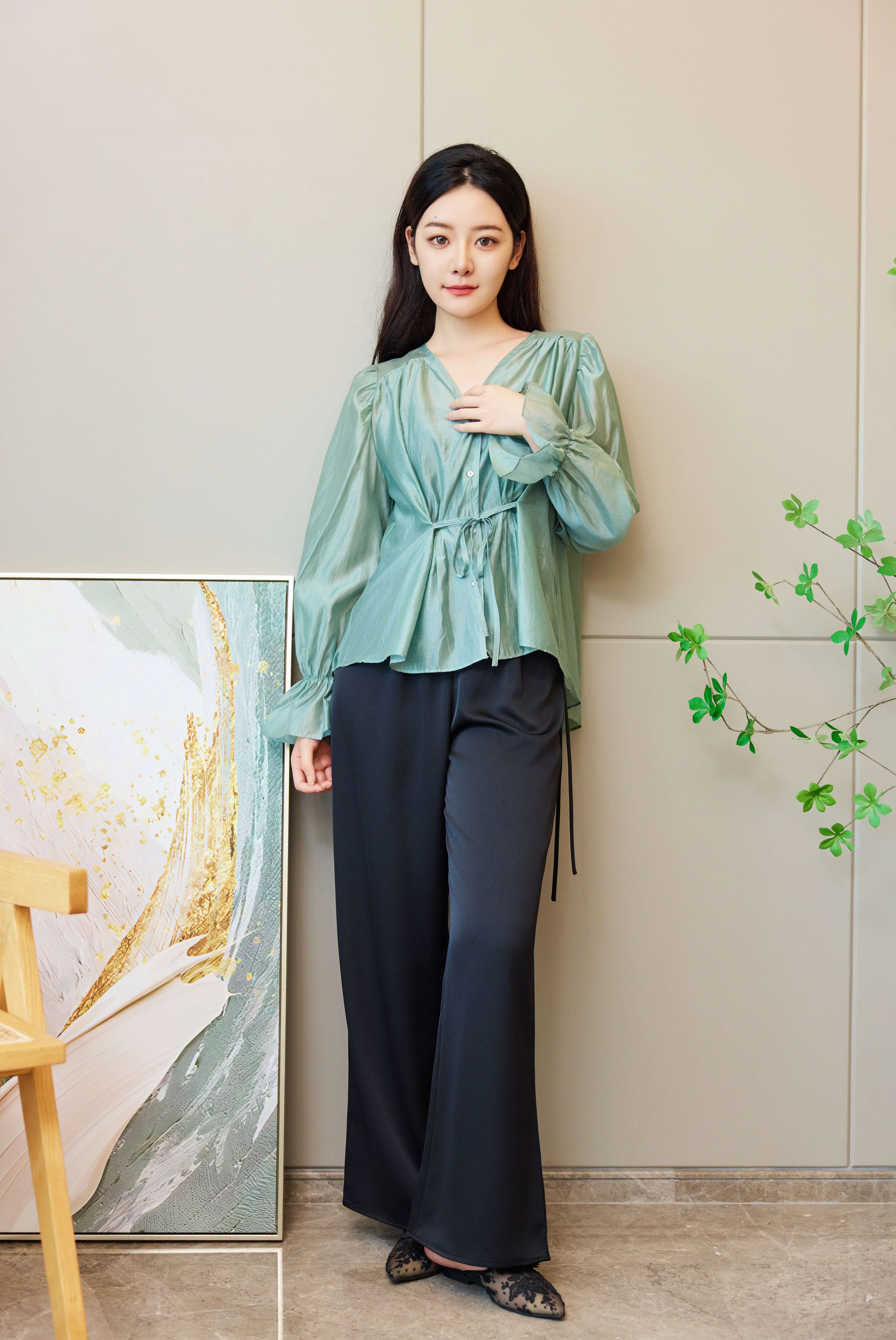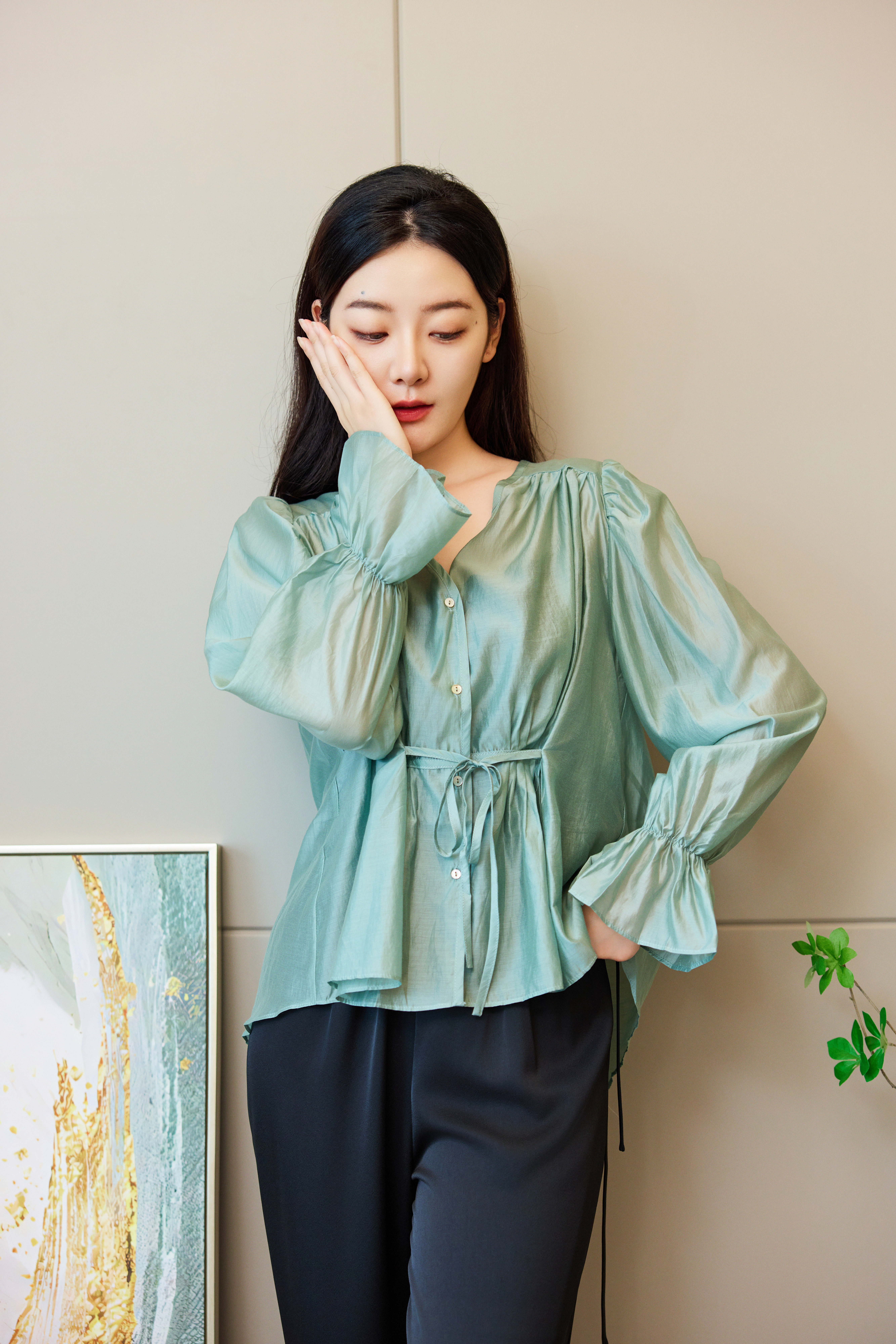 独特高级感抽绳天丝衬衣
