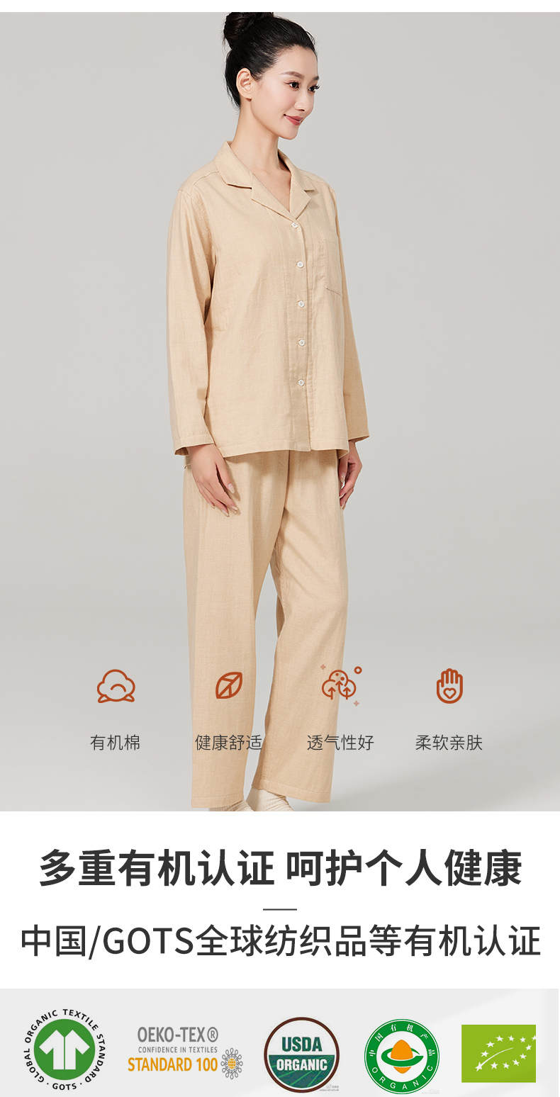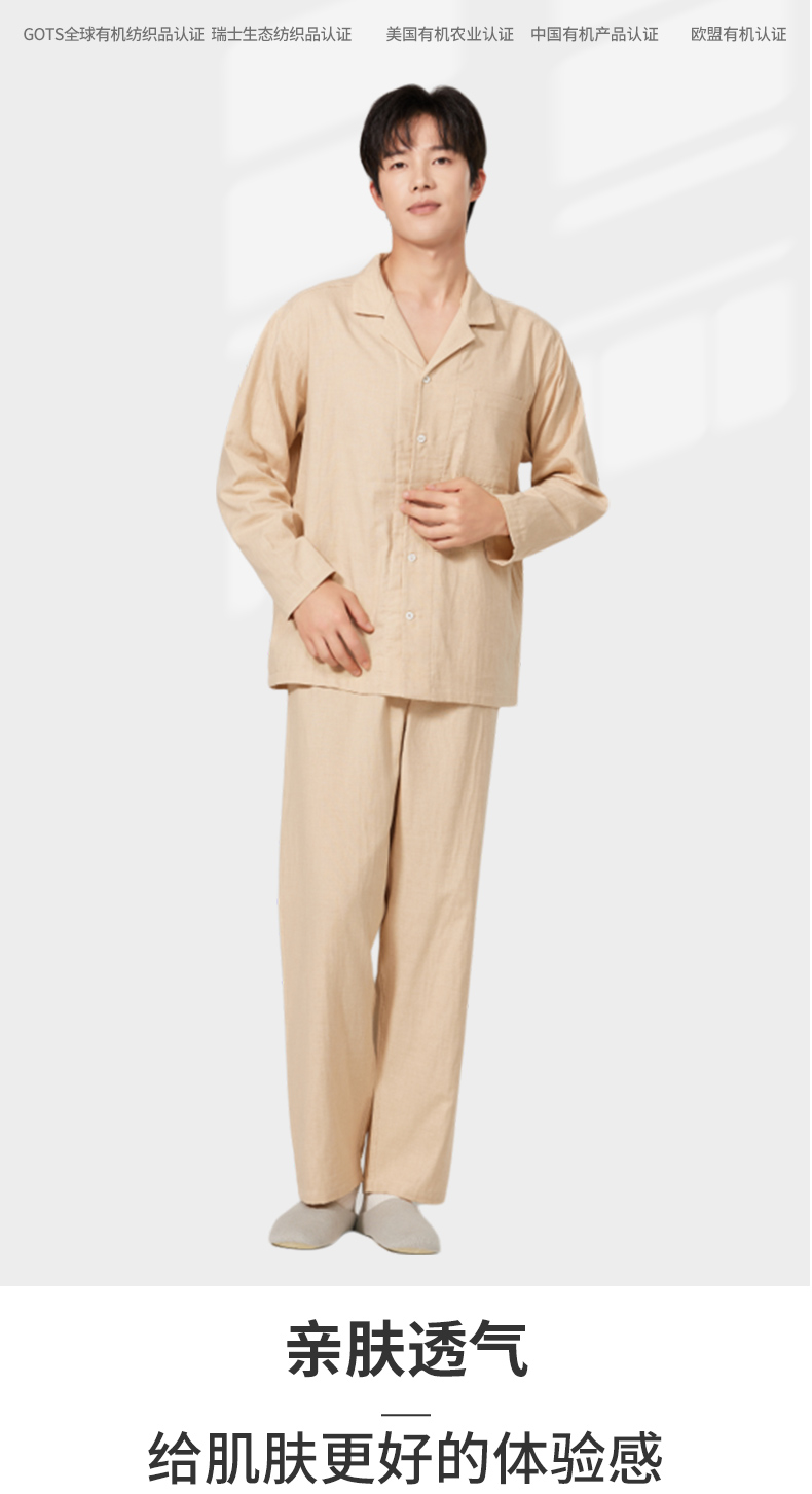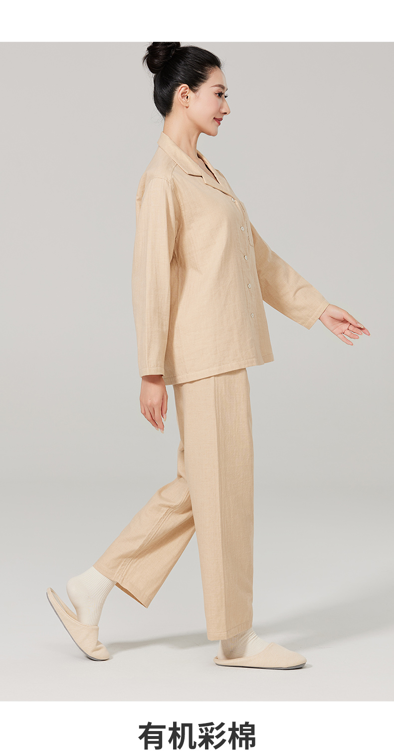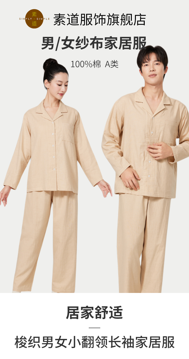 素道有机彩棉 男女同款家居服 纱布长袖上衣长裤情侣100%棉居家服