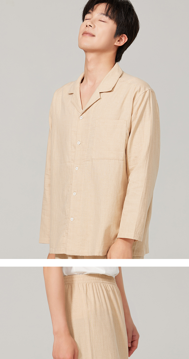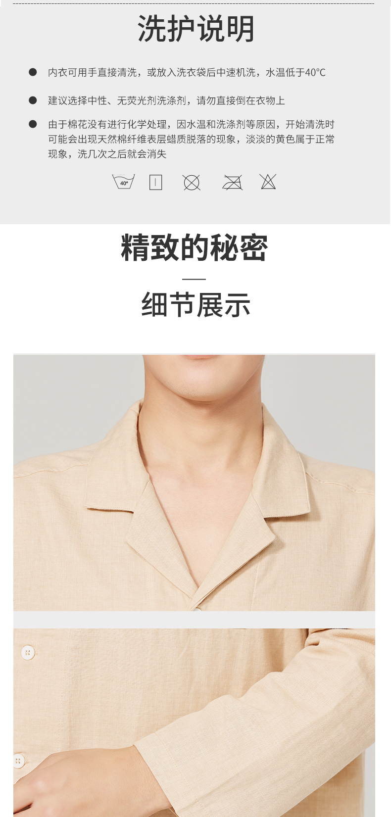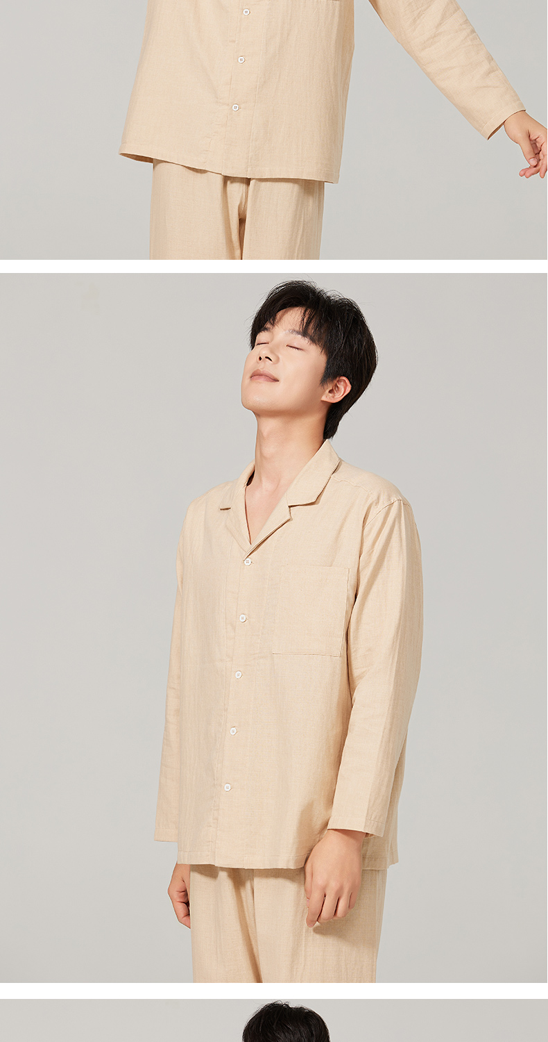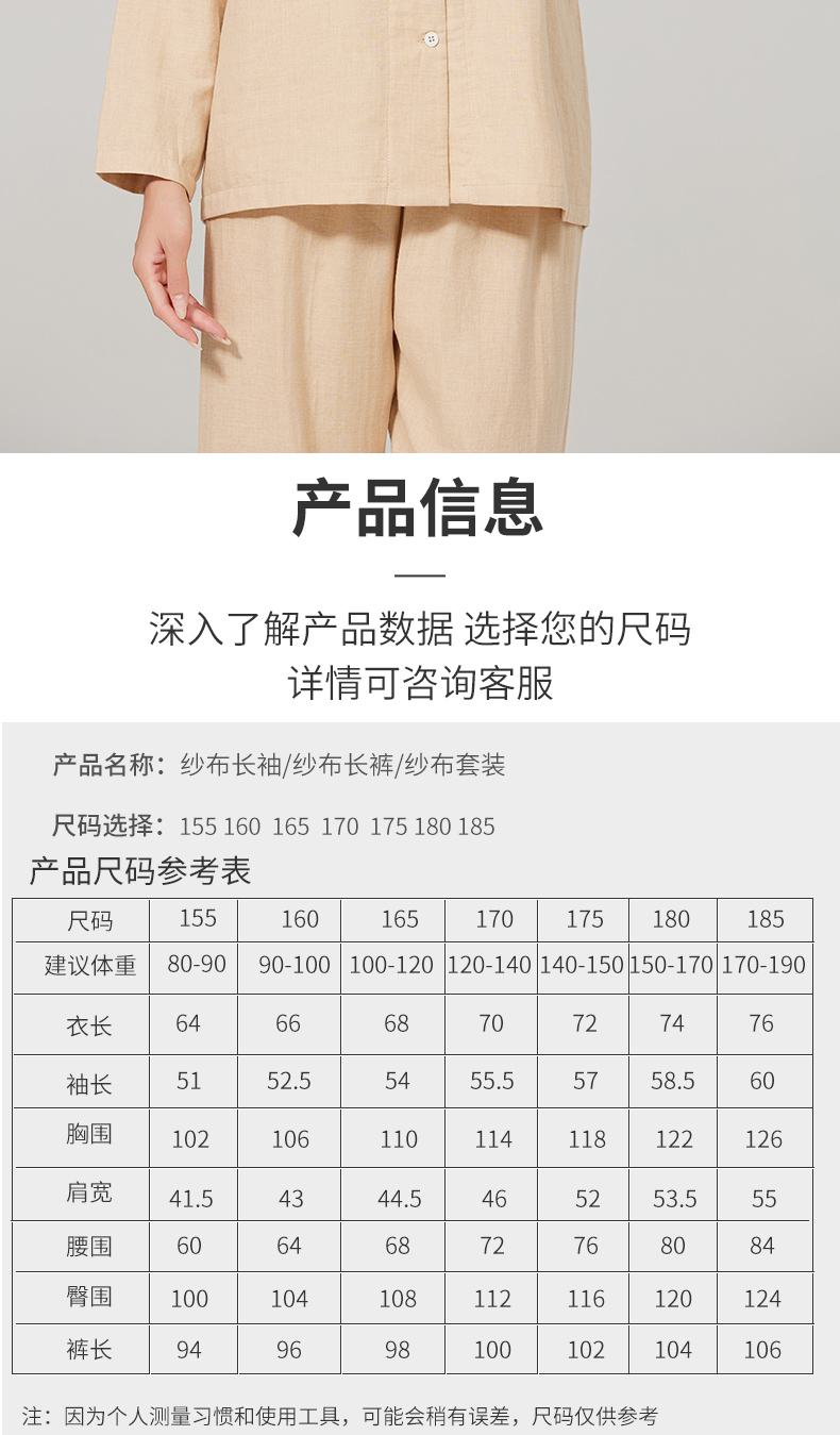 素道有机彩棉 男女同款家居服 纱布长袖上衣长裤情侣100%棉居家服