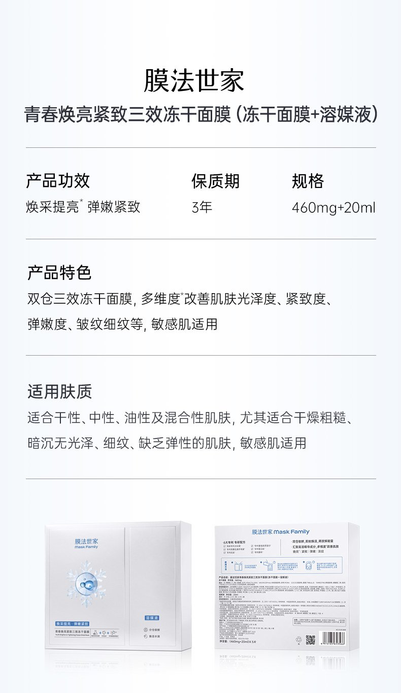 【冻干锁鲜】膜法世家青春焕亮紧致三效冻干面膜5片装