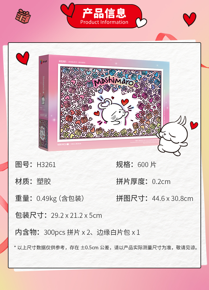 【折扣商品 不退不换】600片平面拼图塑料拼图 H3261 流氓兔系列-爱与礼物