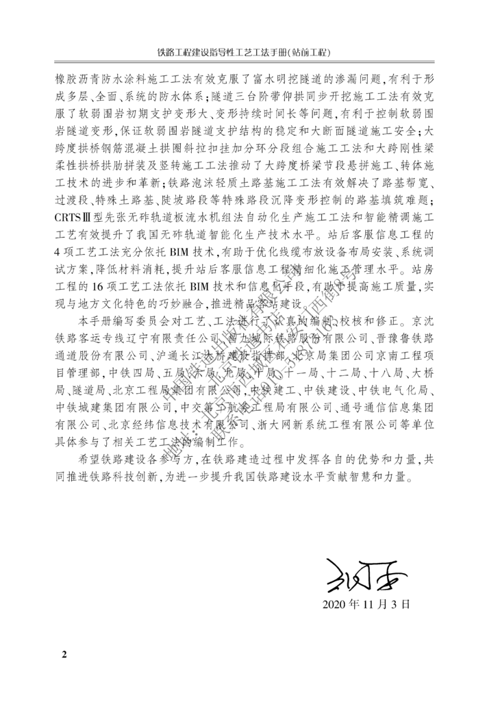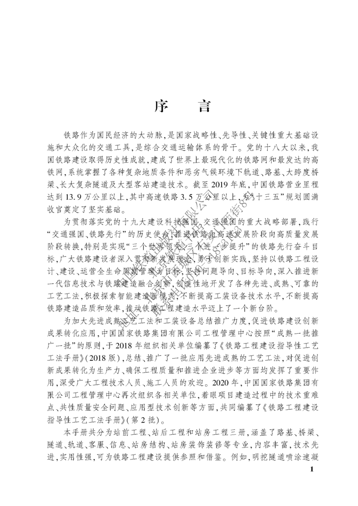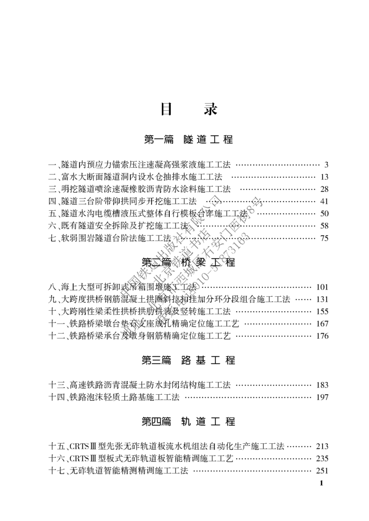 本书为铁路工程建设指导性工艺工法手册(站前工程)(第2批),包括隧道内预应力锚索压注速凝高强浆液施工工法、富水大断面隧道洞内设水仓抽排水工法、明挖隧道喷涂速凝橡胶沥青防水涂料施工工法、隧道三台阶仰拱同步开挖施工工法、隧道水沟电缆槽液压式整体自行模板台车施工工法等共17种工法,每种工法分别从工法特点、适用范围、工艺特点、施工工艺流程及操作要点、材料与设备、质量标准与控制目标、安全措施、环境保护措施等方面进行叙述。