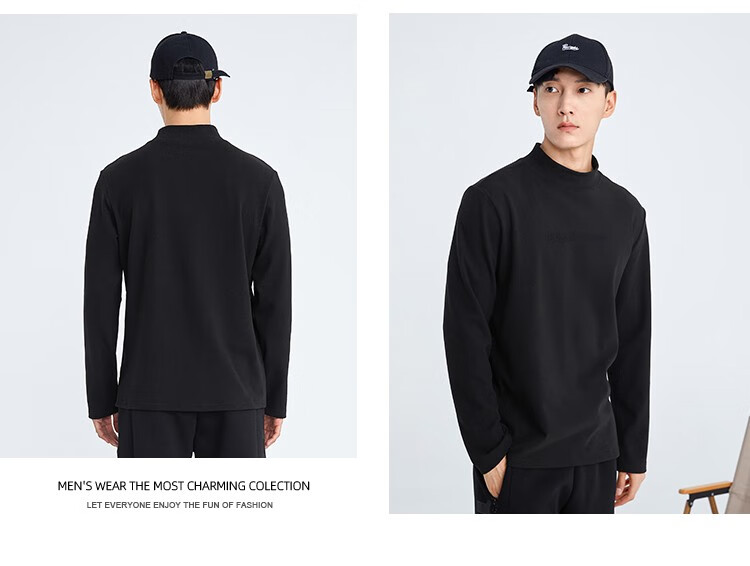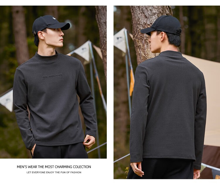 【69秒杀】拓路者(Pioneer Camp)长袖T恤男半高领加绒男士上衣打底衫内搭纯色抗皱保暖秋冬季