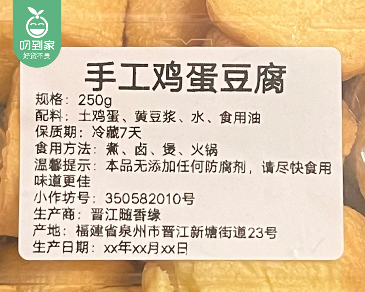 随香缘手工鸡蛋豆腐(250g±10g/盒)生产日期:4月14日