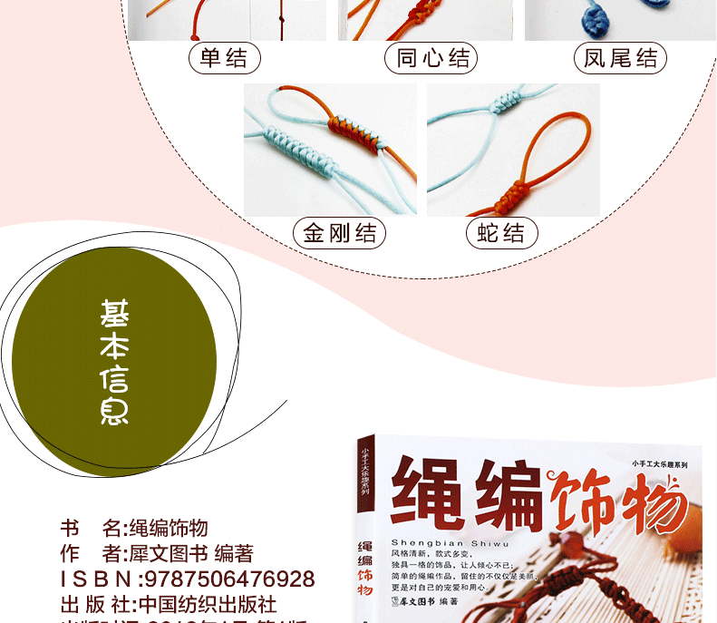 正版 绳编饰物/小手工大乐趣系列 编绳教程手工编织书手工书籍大全成人 编绳教程编手链的绳子教程书手工书籍diy