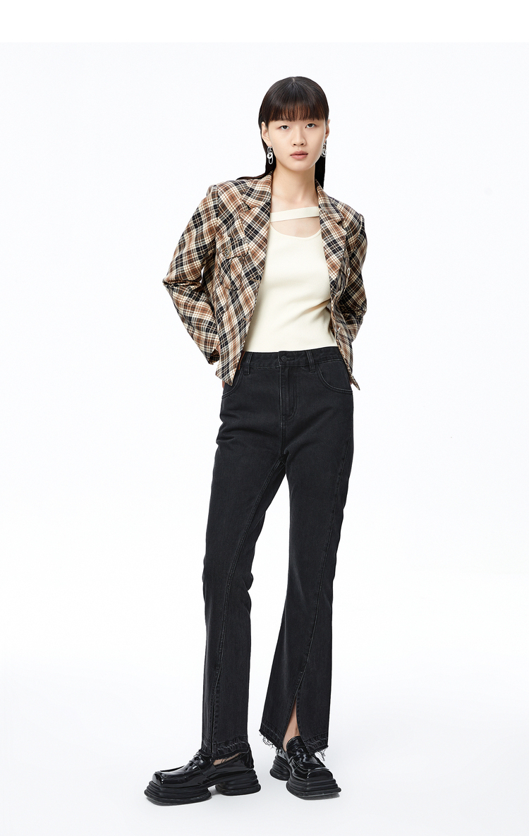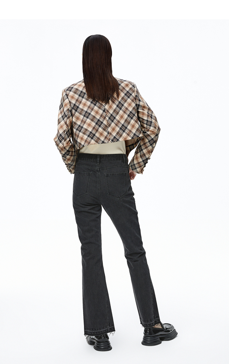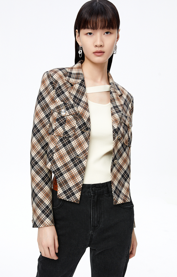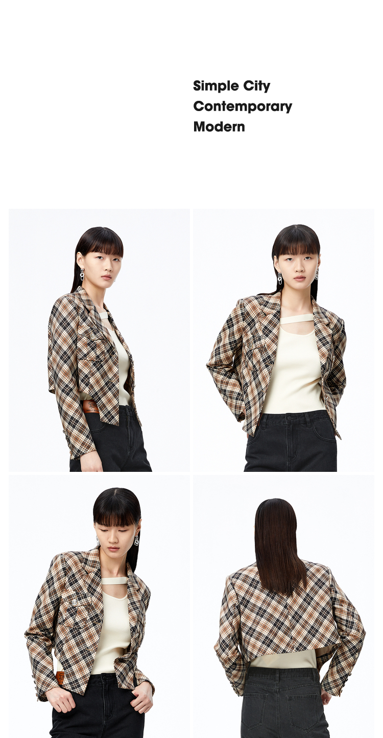 NEELLY纳俪商场同款复古格纹西装外套女秋季新款设计感短款上衣