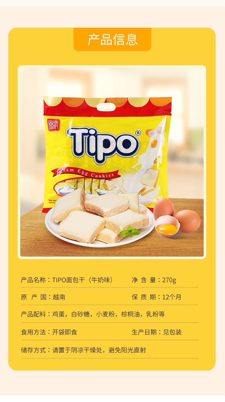 TIPO面包干(牛奶味)/1包(24-25小包,共270g)生产日期:26年3月