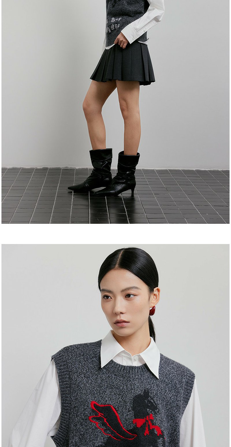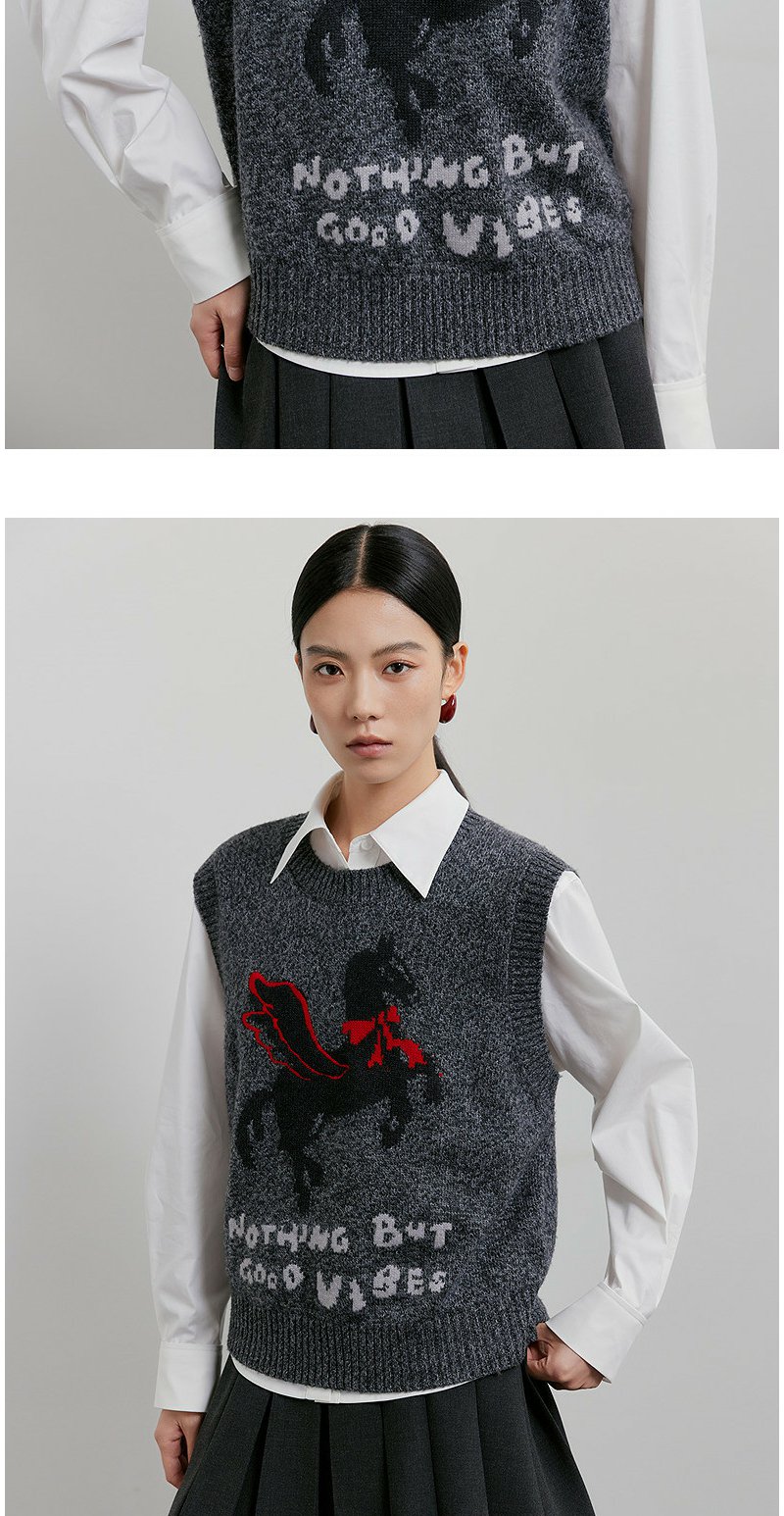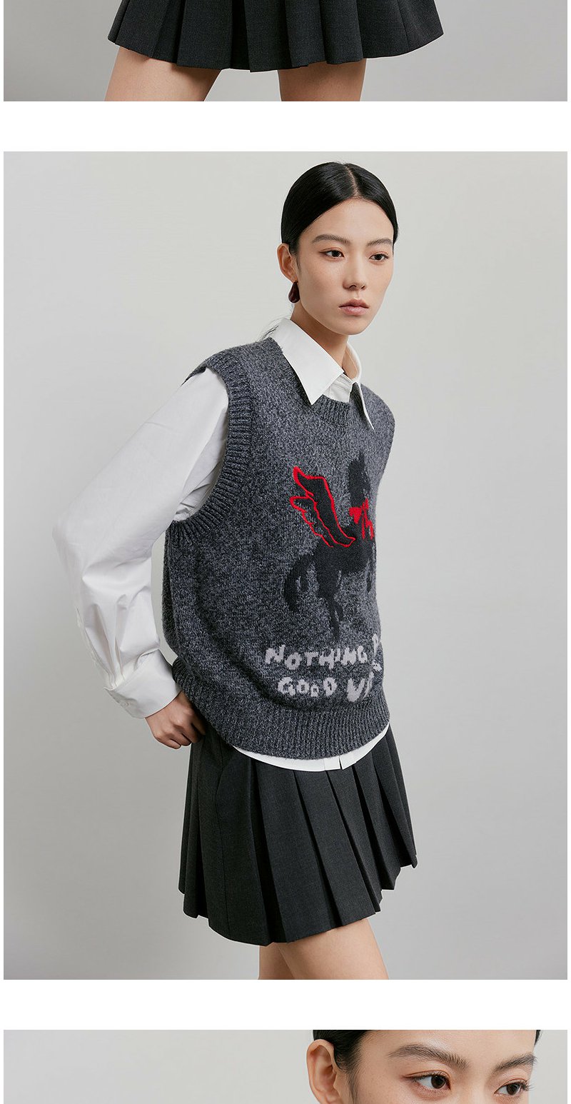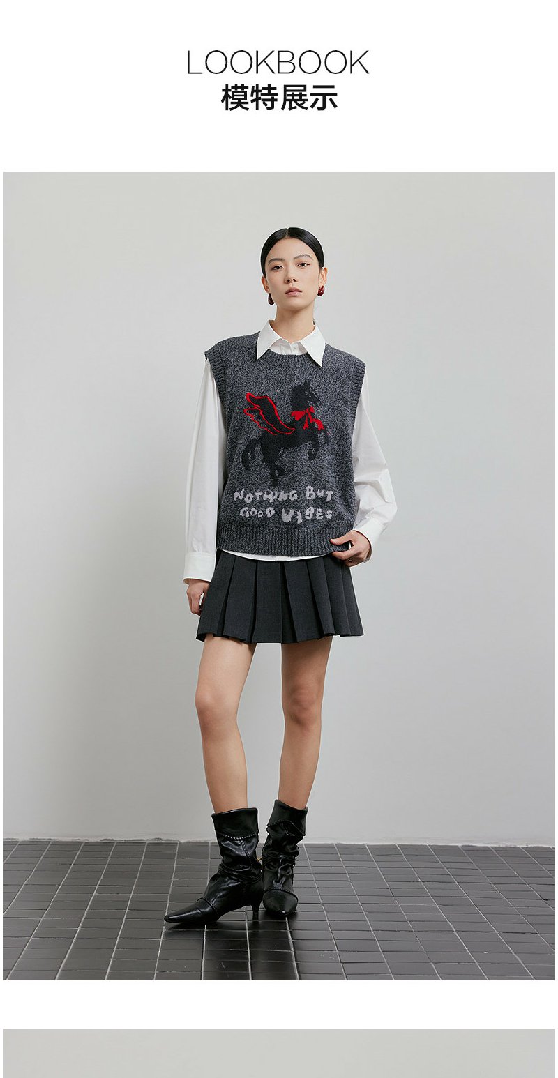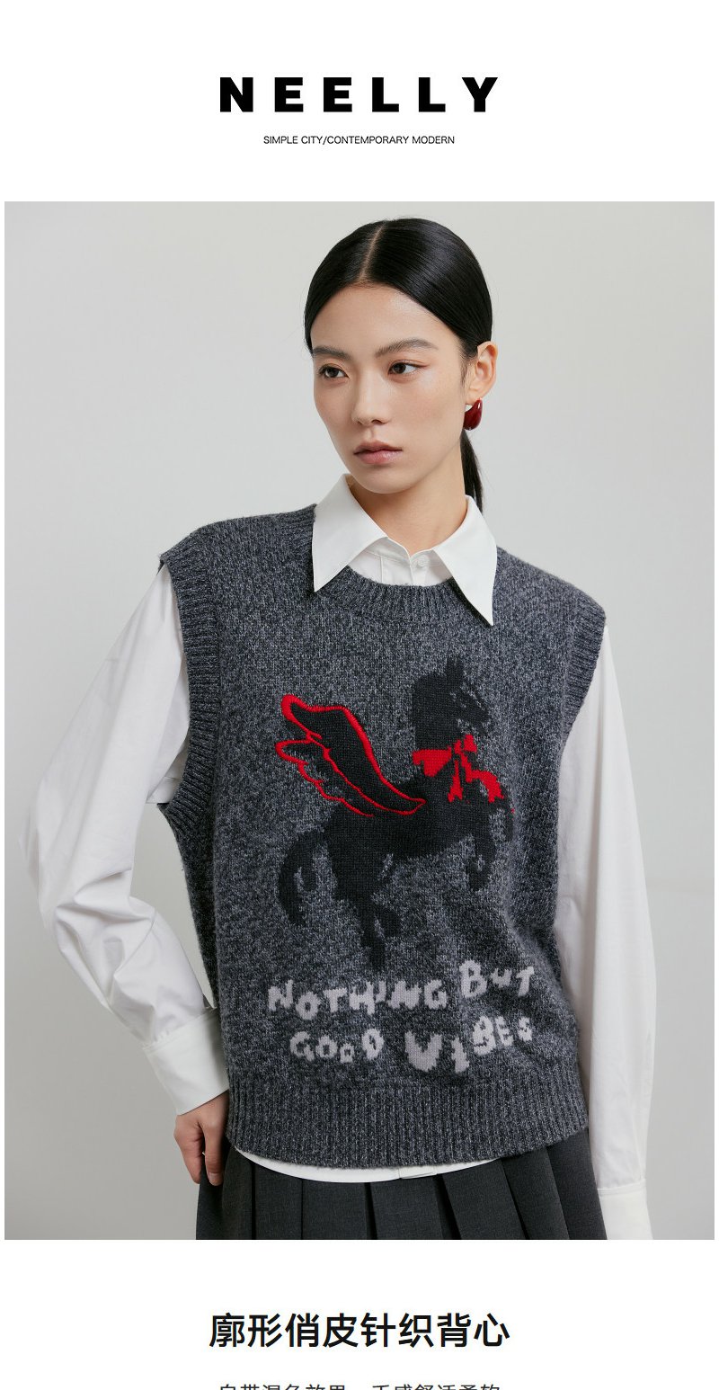 NEELLY纳俪商场同款春季新款时尚俏皮针织背心女复古高级感上衣N26011A01005