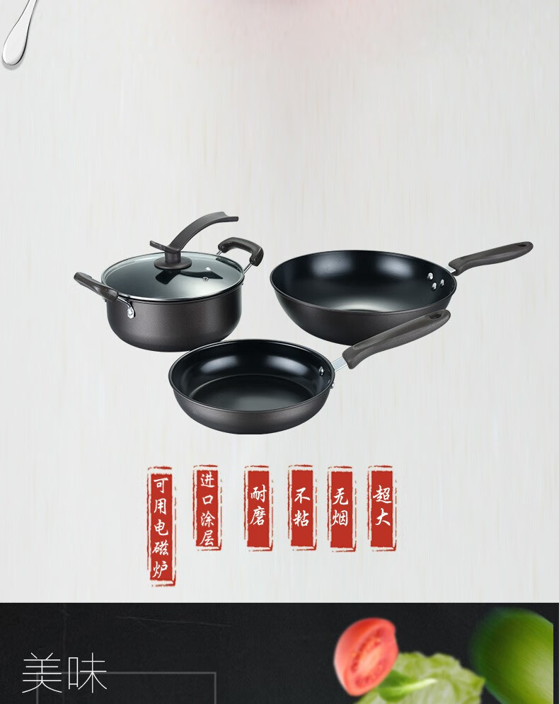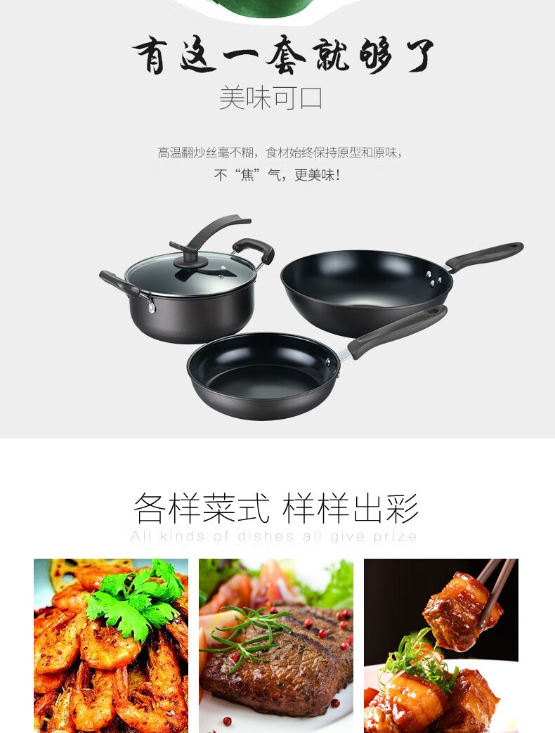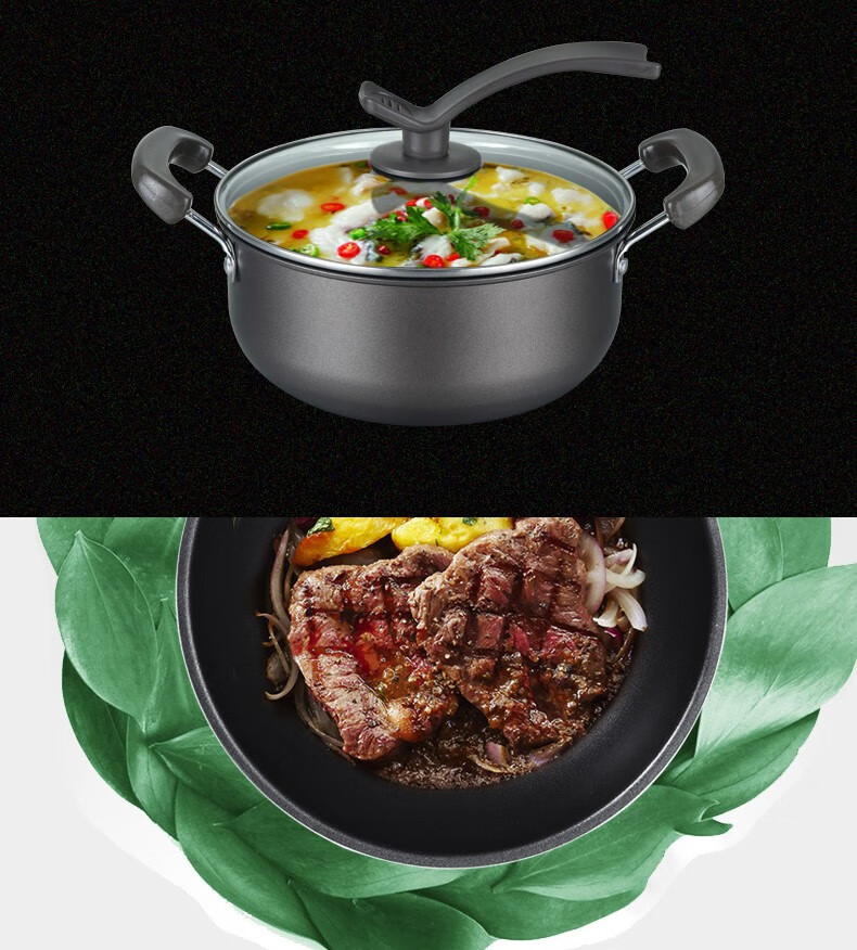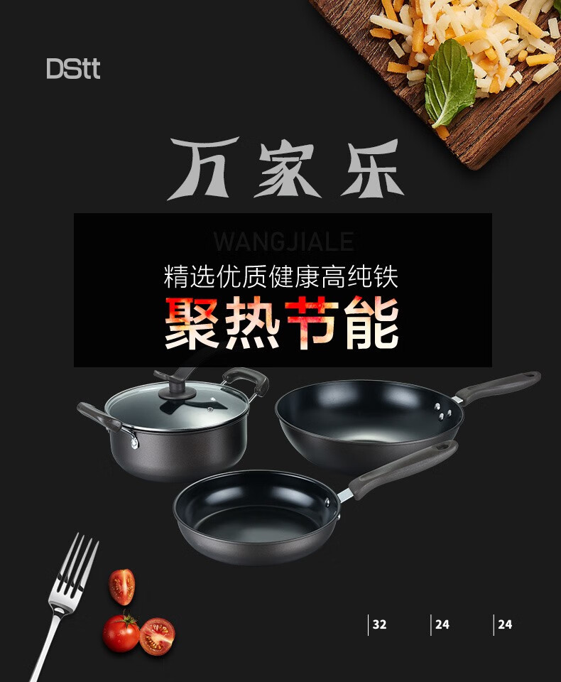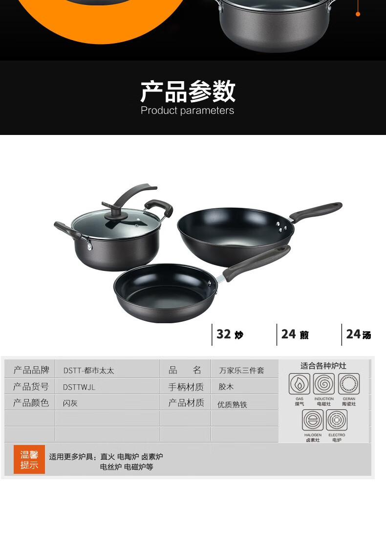都市太太(DStt)都市太太万家乐炒锅煎锅汤锅三件套燃气灶电磁炉通用_黑色_炖煎炒套装