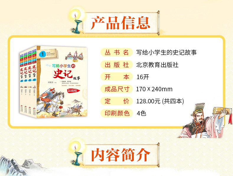 写给小学生的史记故事全4册彩图版小学生三四五六年级课外阅读书