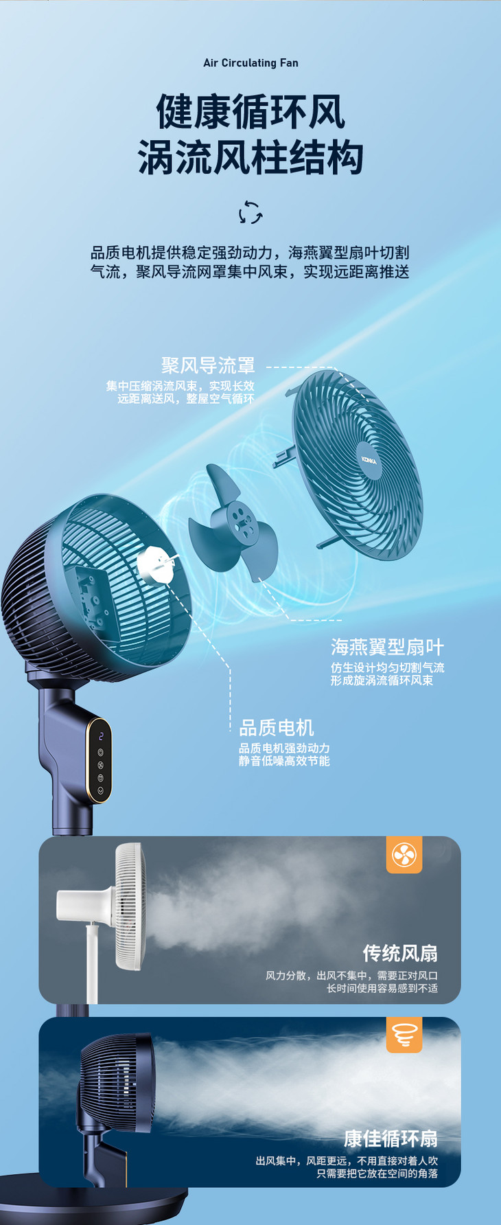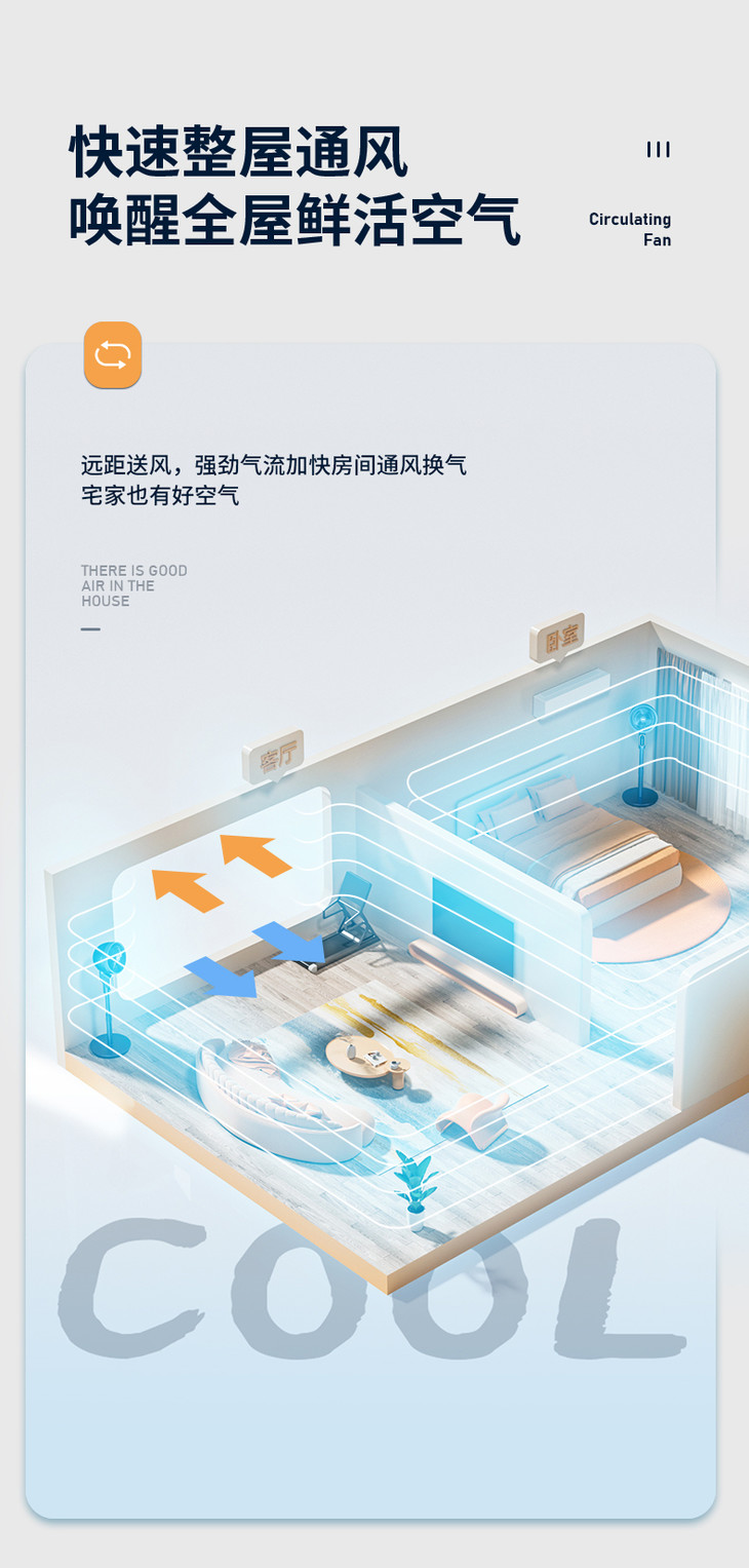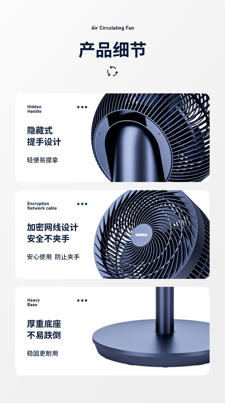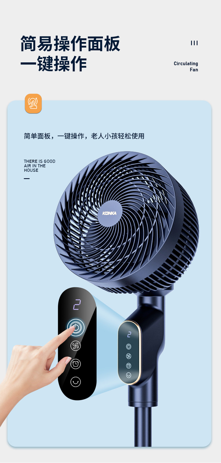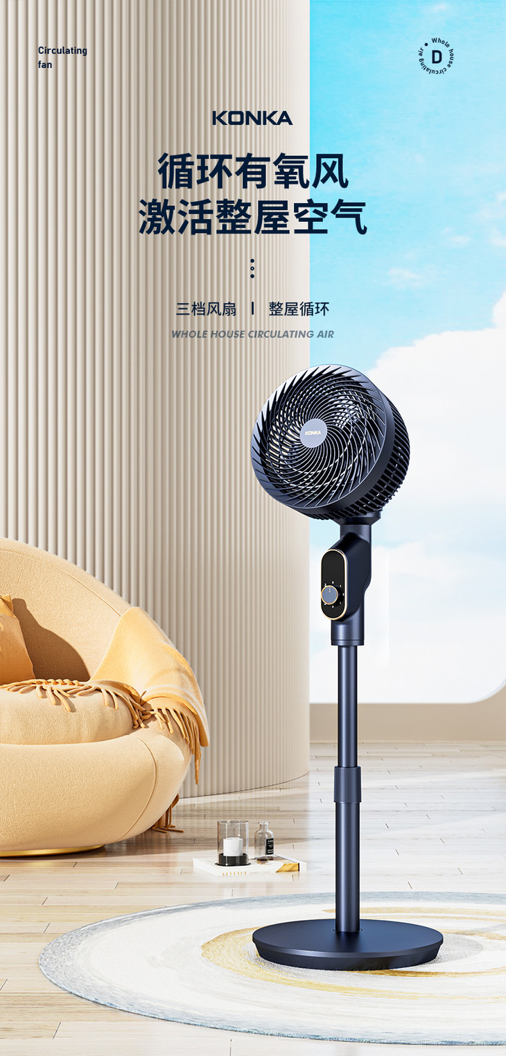 【整屋循环 立体送风】康佳机械循环扇 空调好伴侣节能省电风扇 三档调节广角摇摆送风 省电低音低噪家用卧室宿舍台式扇