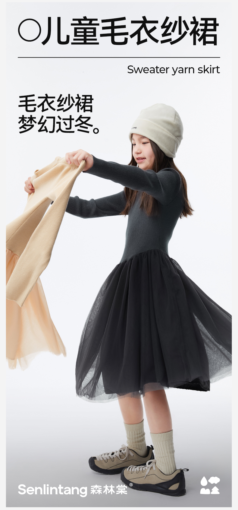 【品牌优选】【儿童毛衣纱裙】森林棠2024冬款儿童修身打底毛衣连衣裙80612401