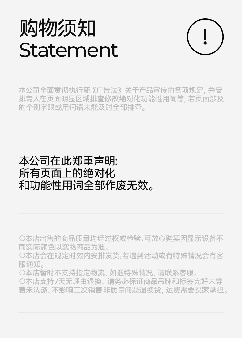 四、退换货及售后政策:非质量问题不影响二次销售的商品支持七天无理由退换货,买家承担运费自行寄回;收到商品有任何质量问题请联系我们处理售后