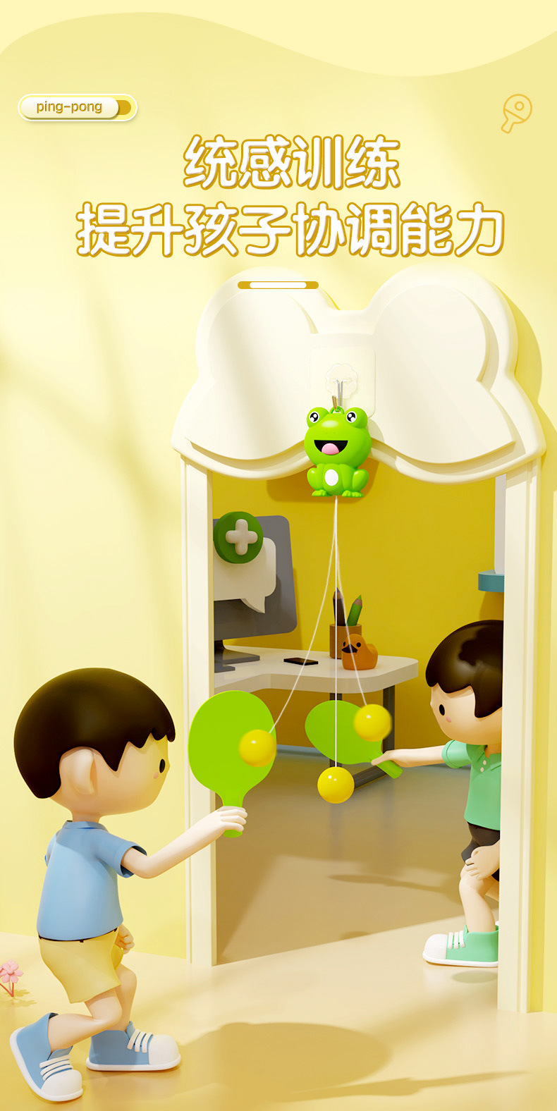 悬挂青蛙乒乓球训练器家用儿童亲子感统锻炼视力注意力手摸高健身