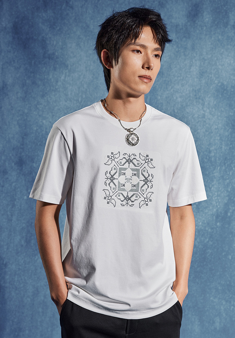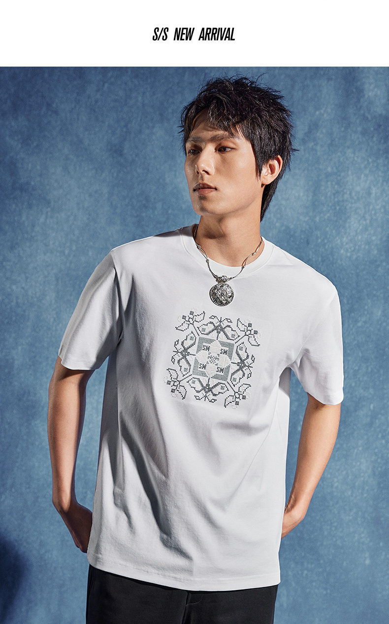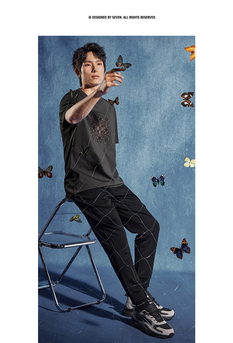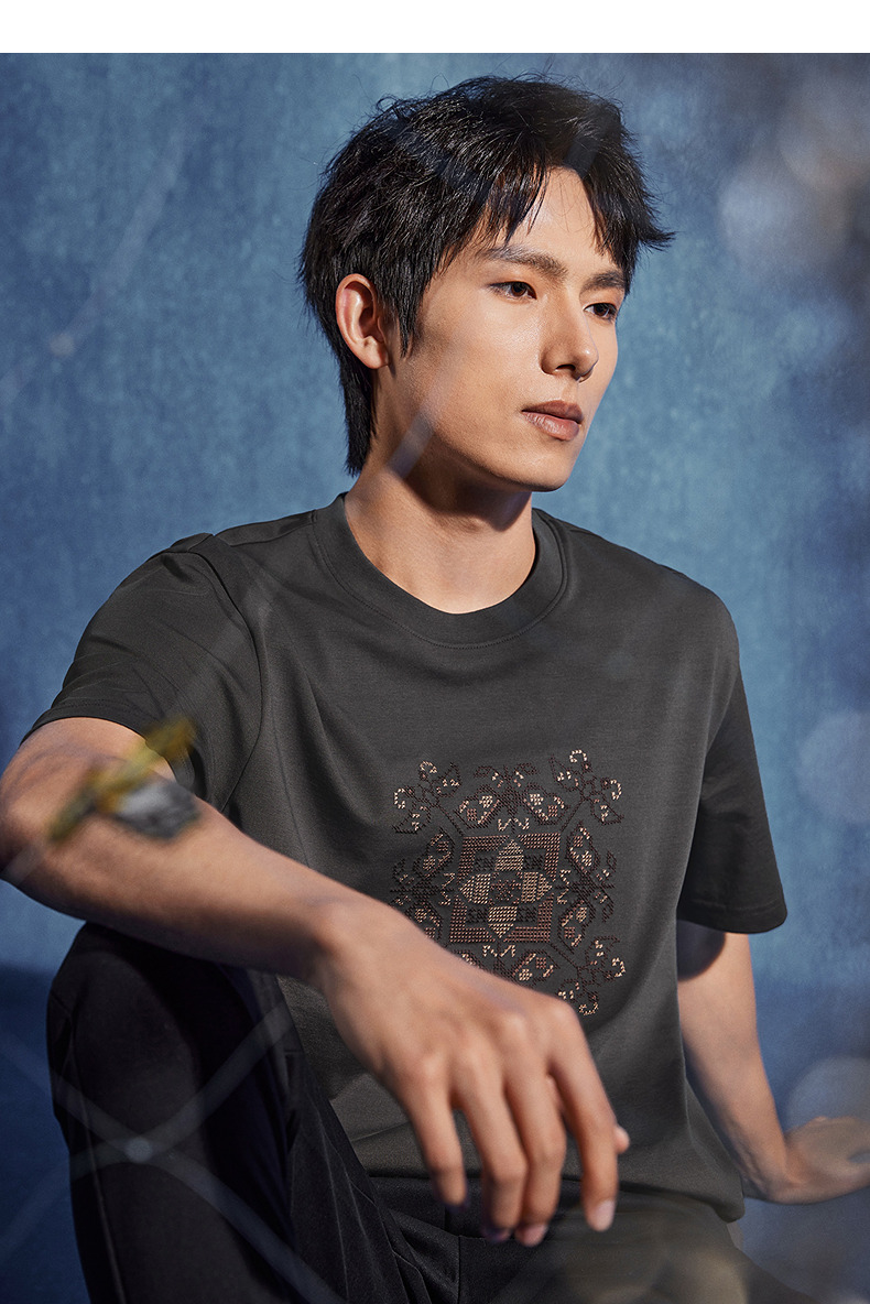 【非遗苗绣蝴蝶妈妈系列】柒牌男士t恤短袖夏季新款休闲圆领上衣 126T72720