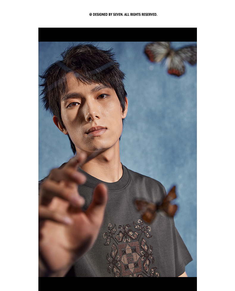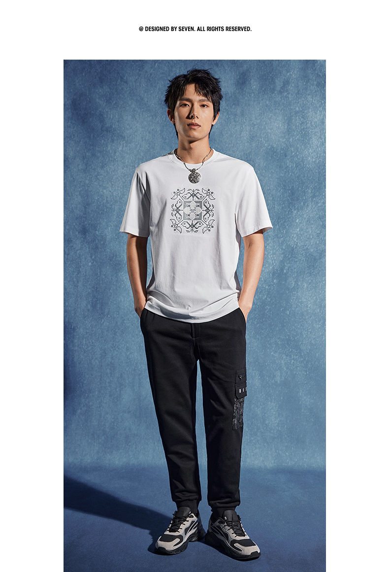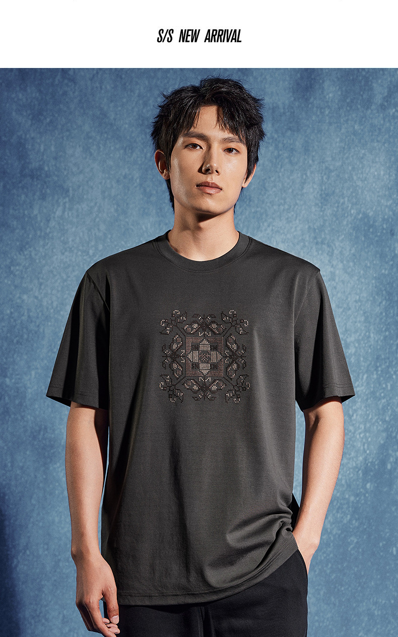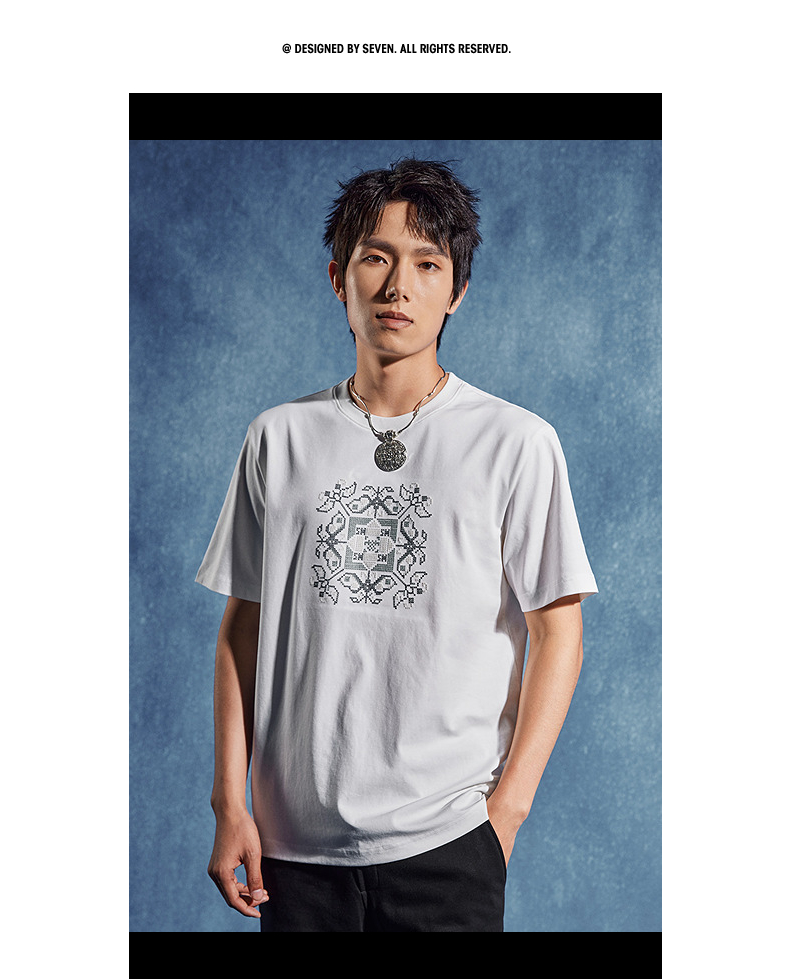 【非遗苗绣蝴蝶妈妈系列】柒牌男士t恤短袖夏季新款休闲圆领上衣 126T72720