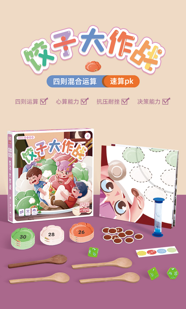 【一刻馆】《饺子大作战》超好玩的加减乘除系列 四则混合运算儿童桌游