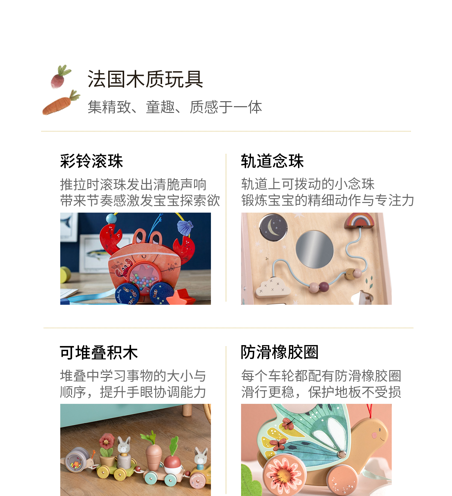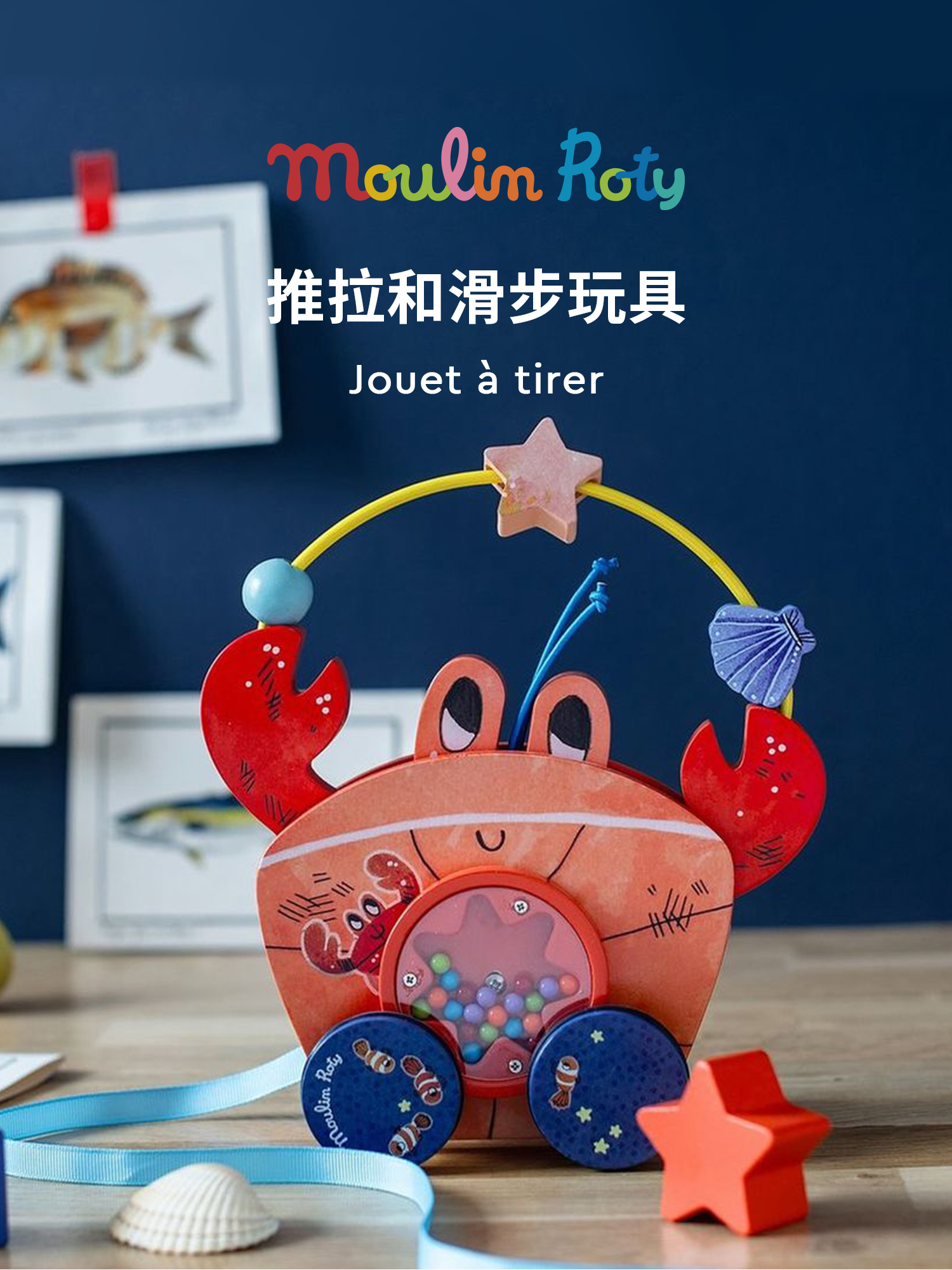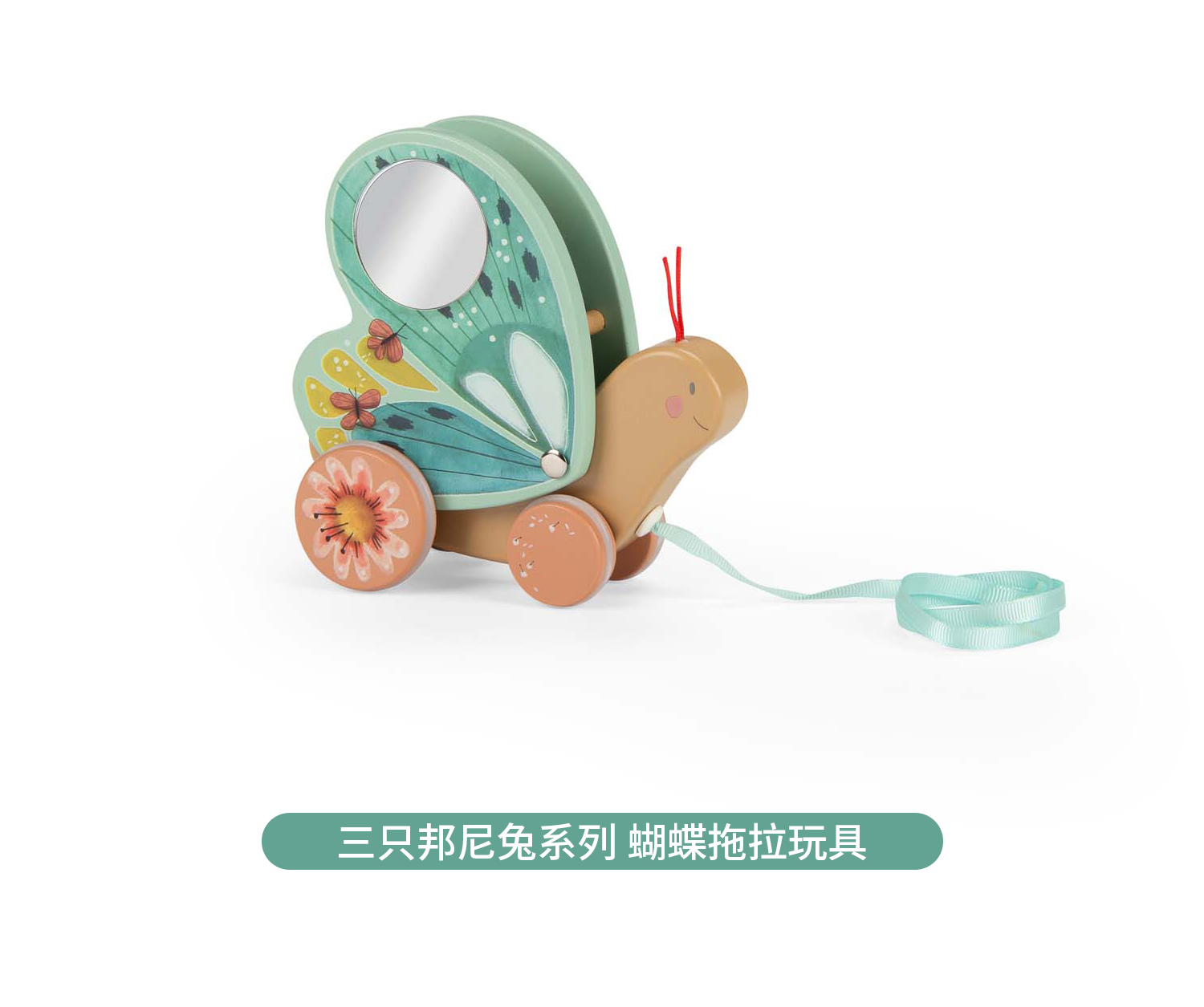 Moulin Roty 蝴蝶 拖拉多功能玩具 适合10月龄+ 三只邦尼兔系列 法国品牌 -678113