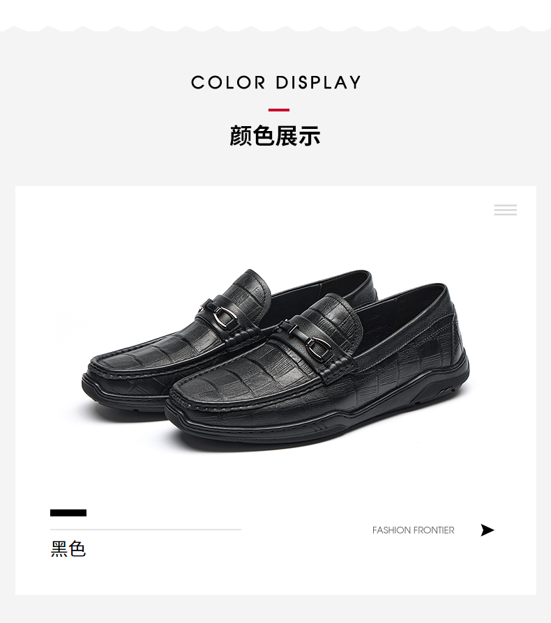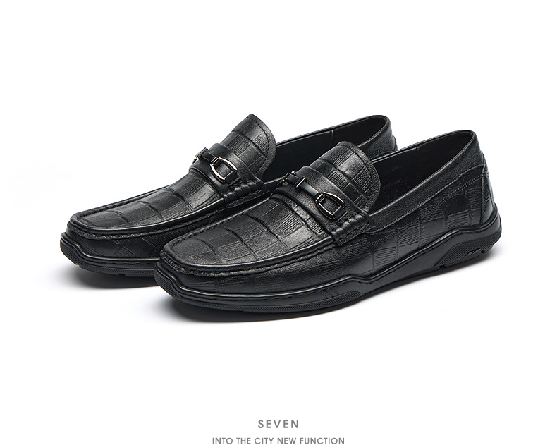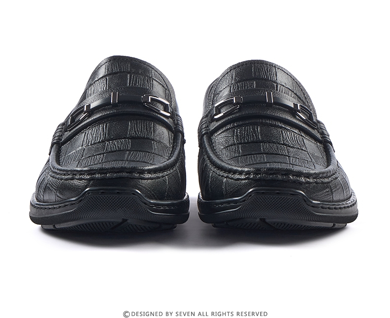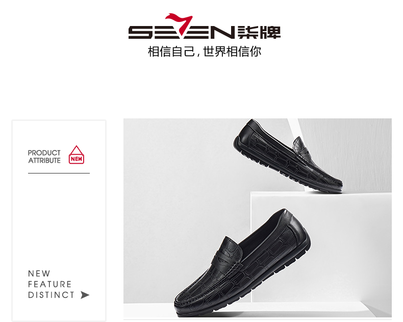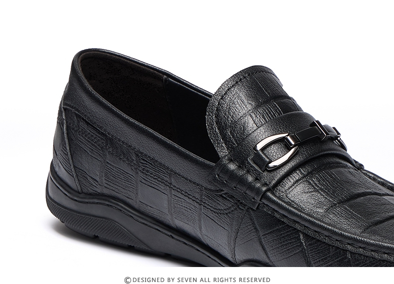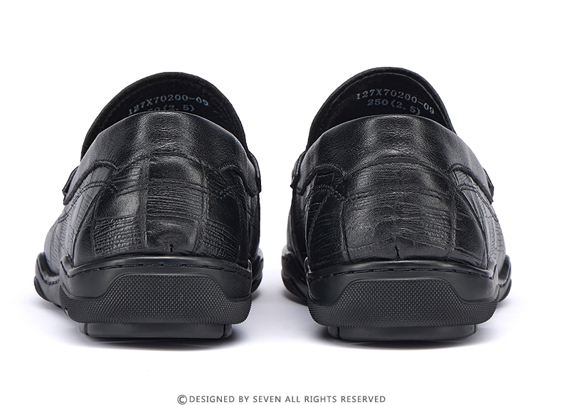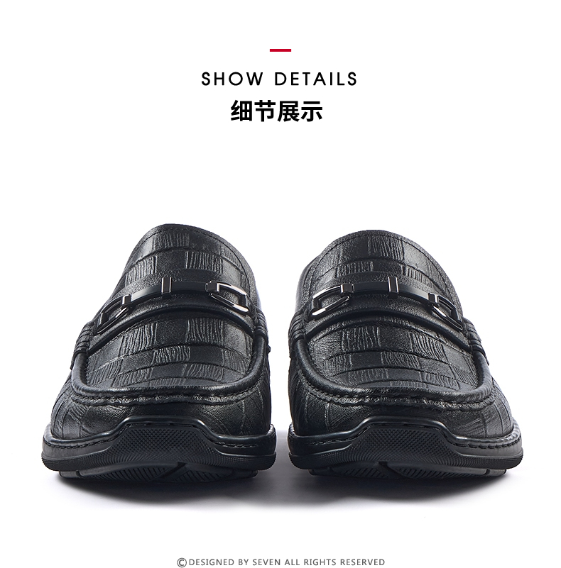 柒牌商务休闲皮鞋男士真皮透气时尚百搭软面一脚蹬黑色懒人鞋单鞋 127X70200