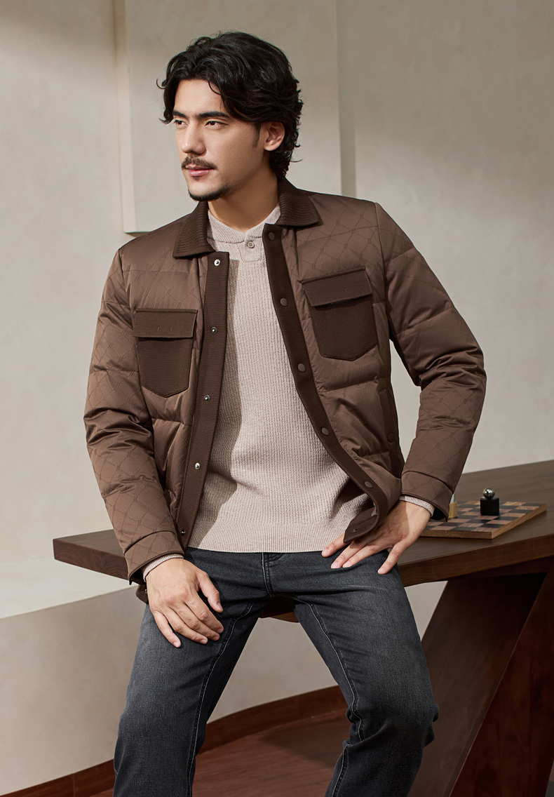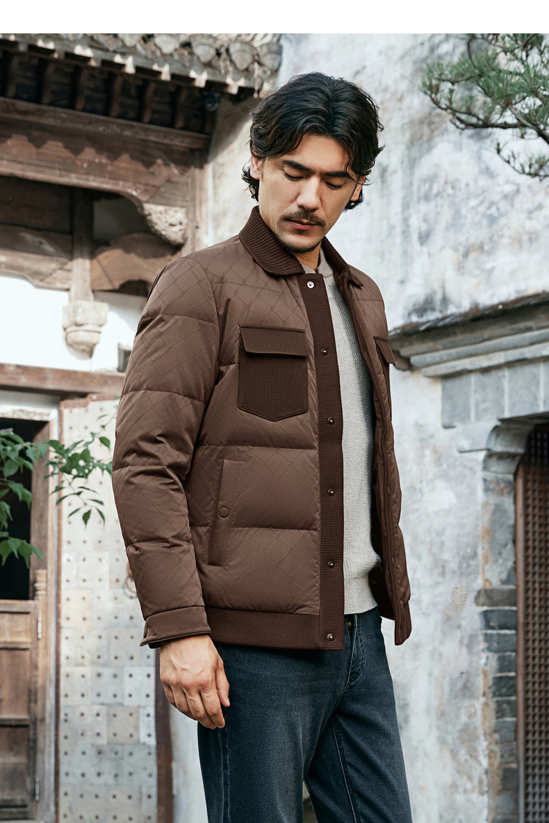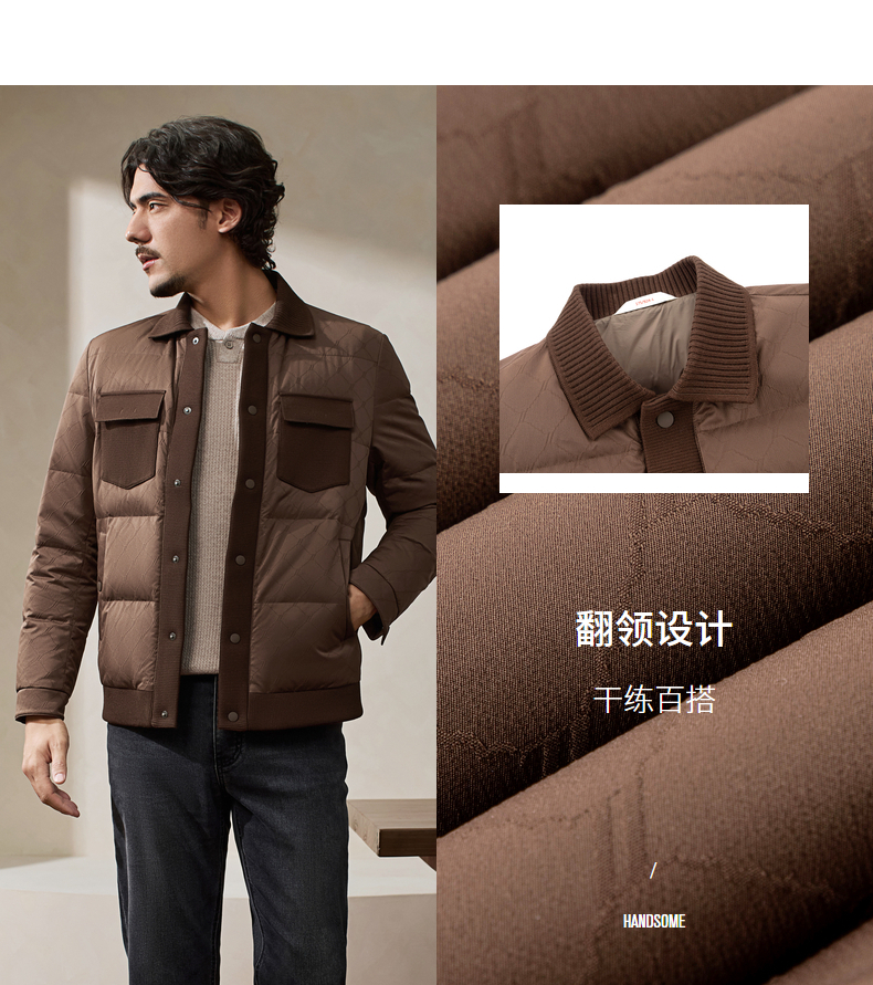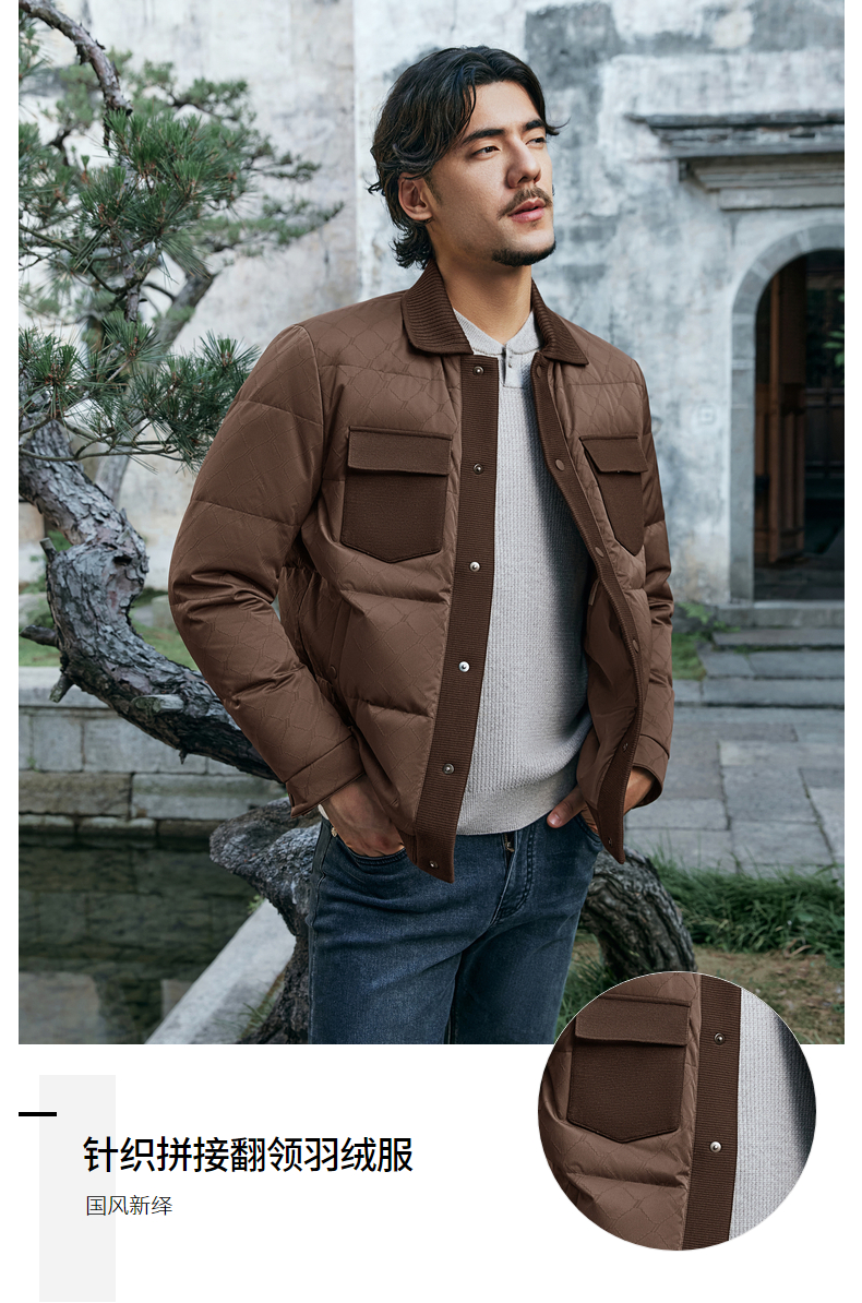 【国风新中式】柒牌羽绒服短款男士2025冬季新款翻领休闲上衣外套129E71260
