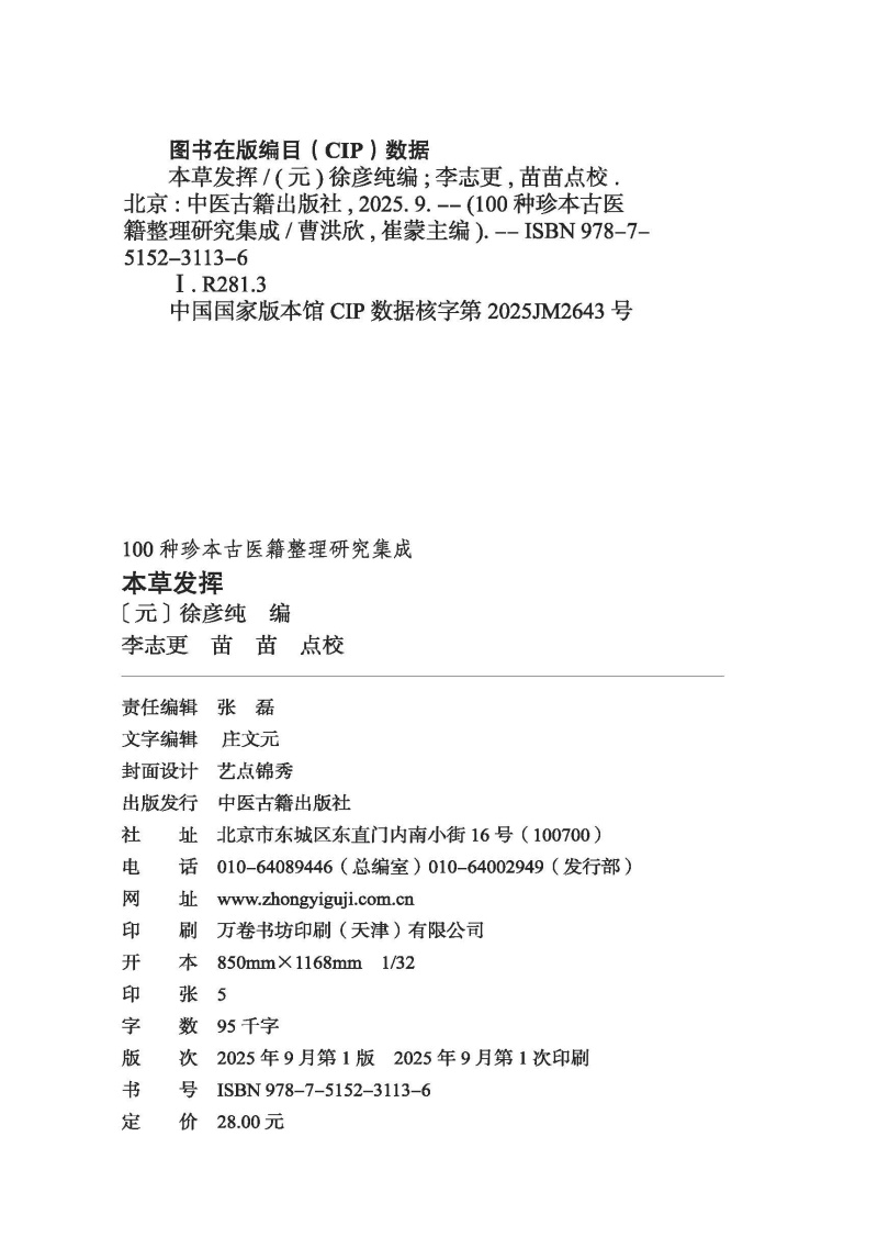 书名:本草发挥 100种珍本古医籍整理研究集成
