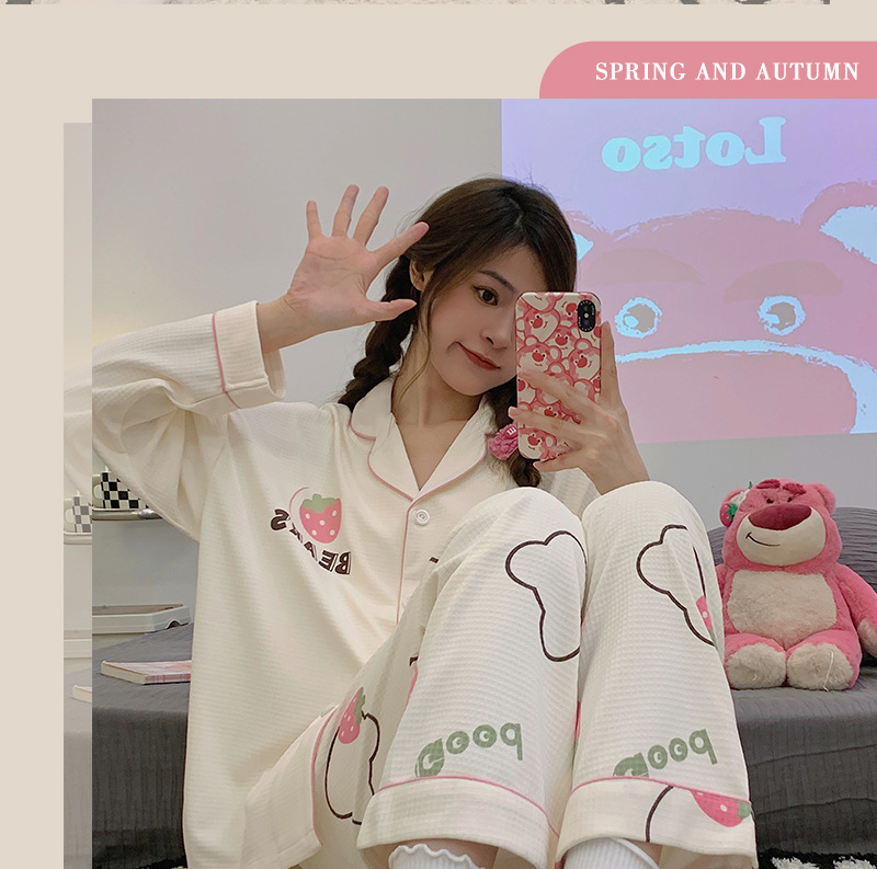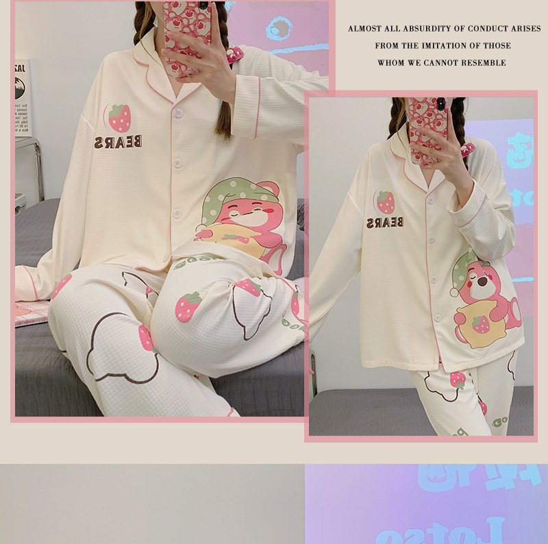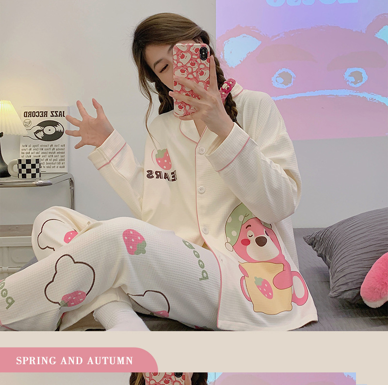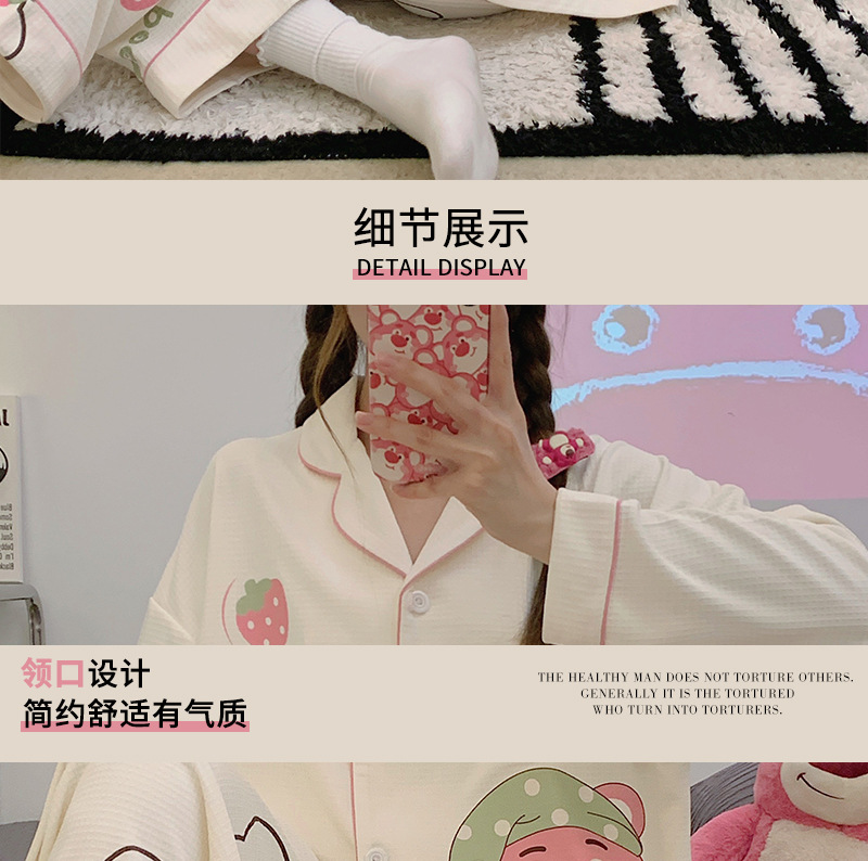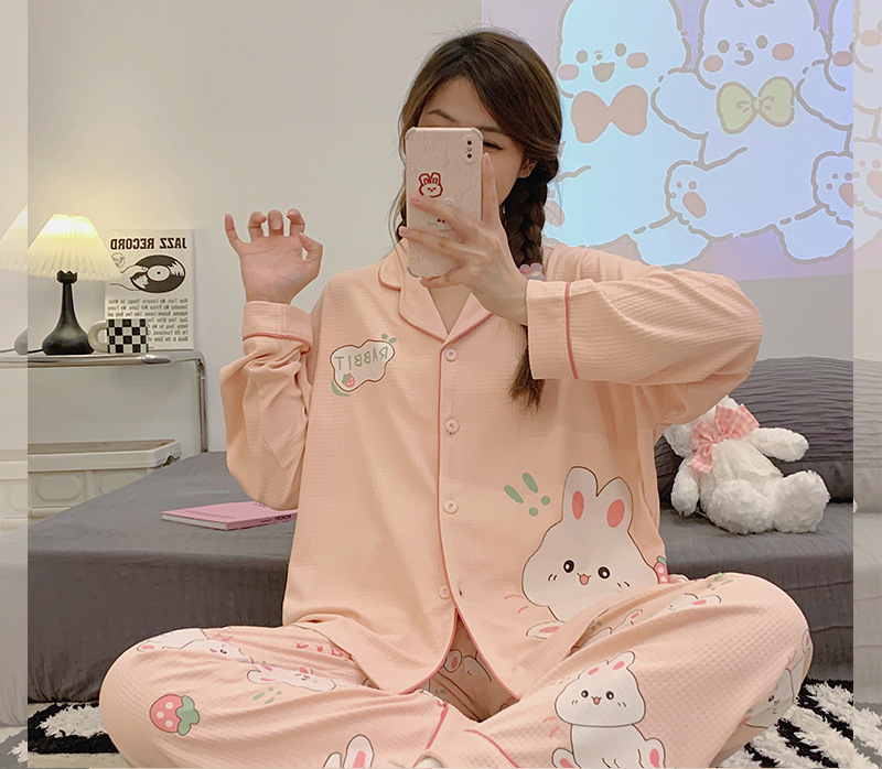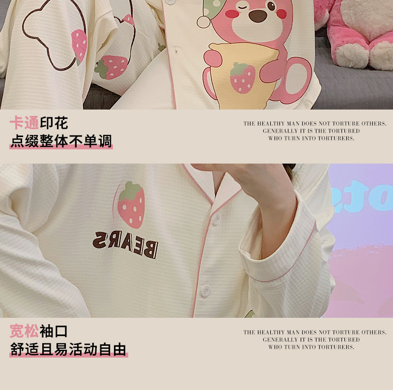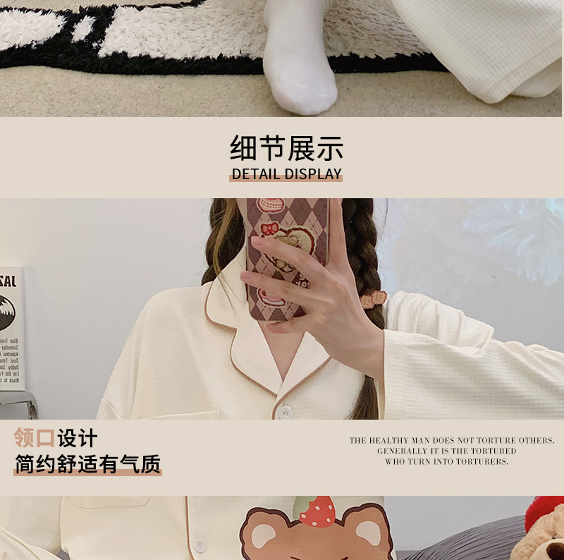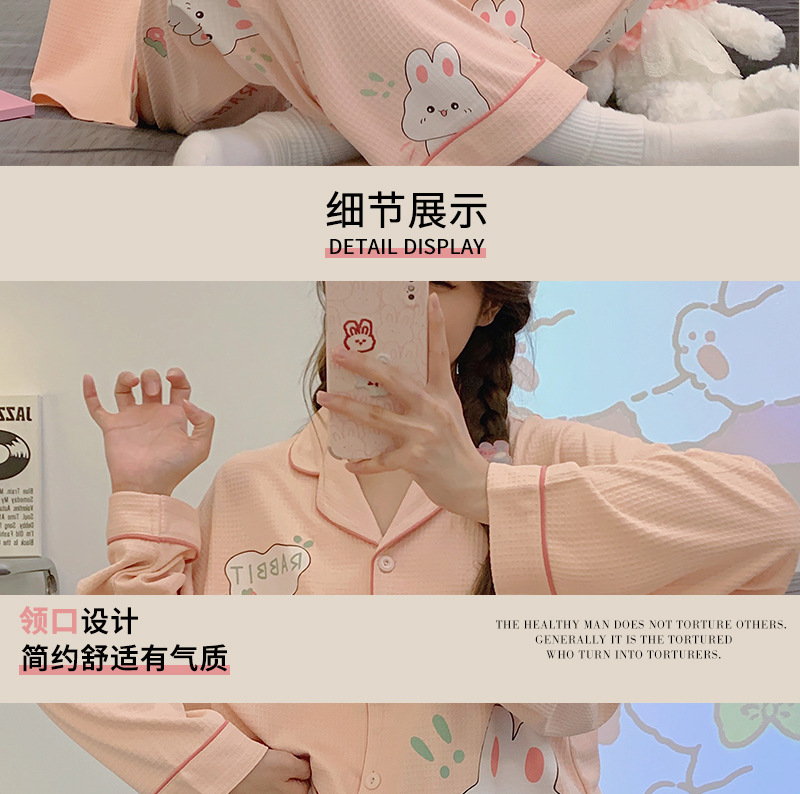 【舒适透气!温和亲肤】柔软亲肤,睡衣女士春秋季仿棉长袖新款可爱可外穿华夫格家居服套装。ra