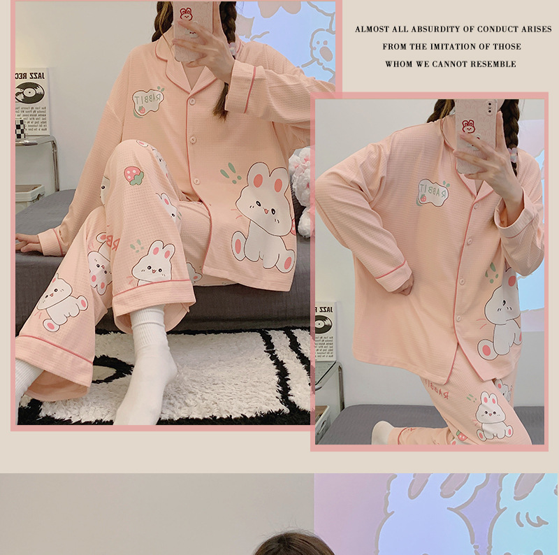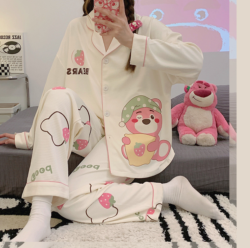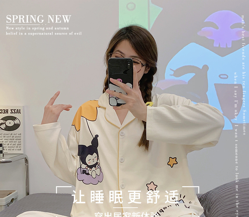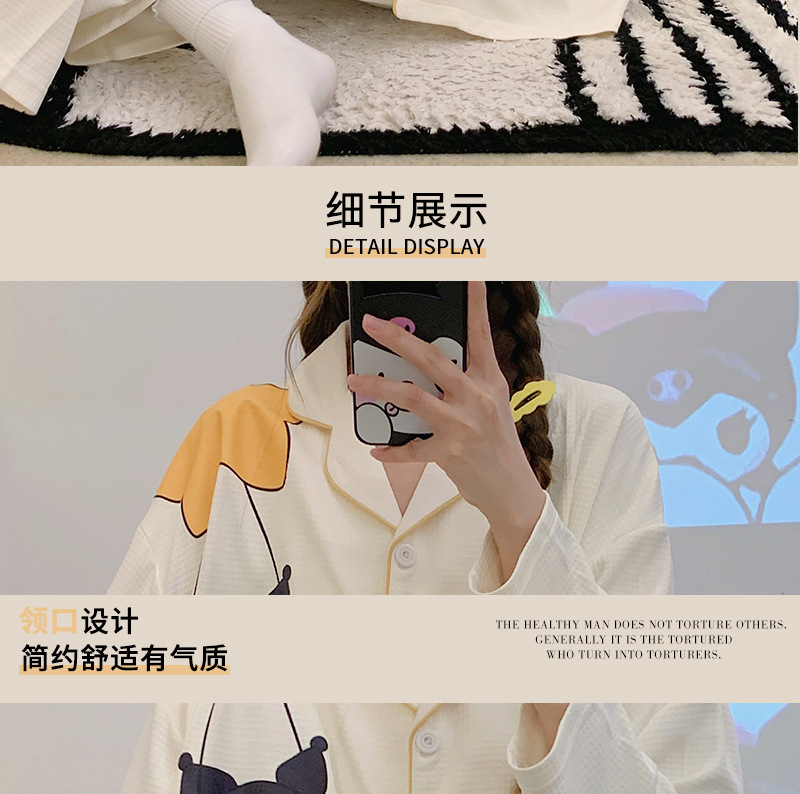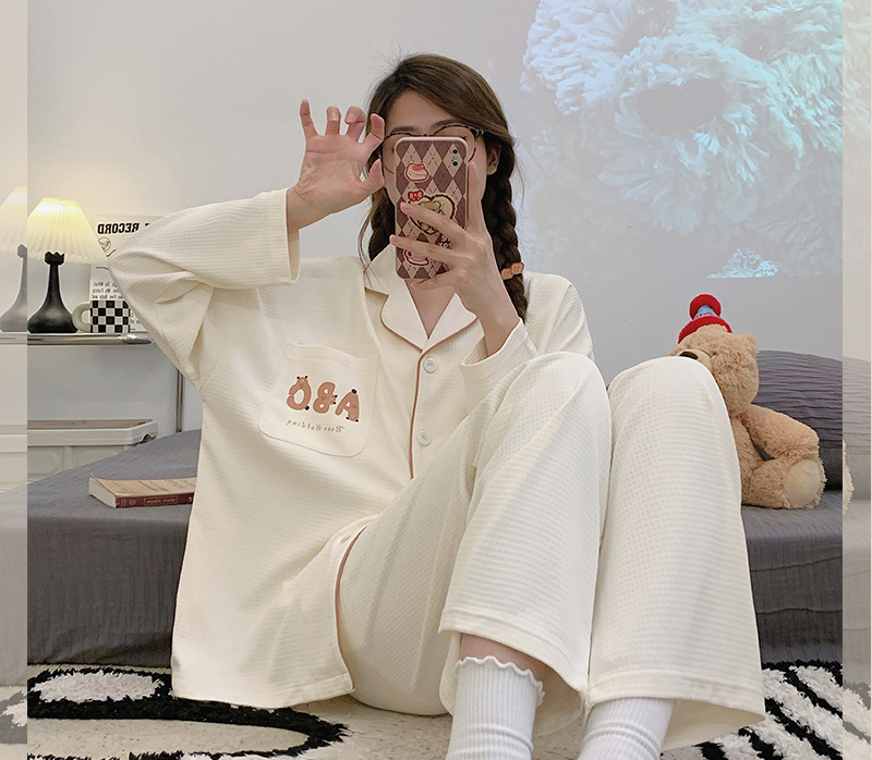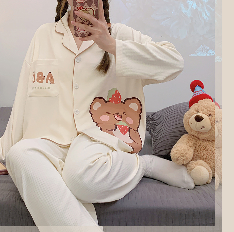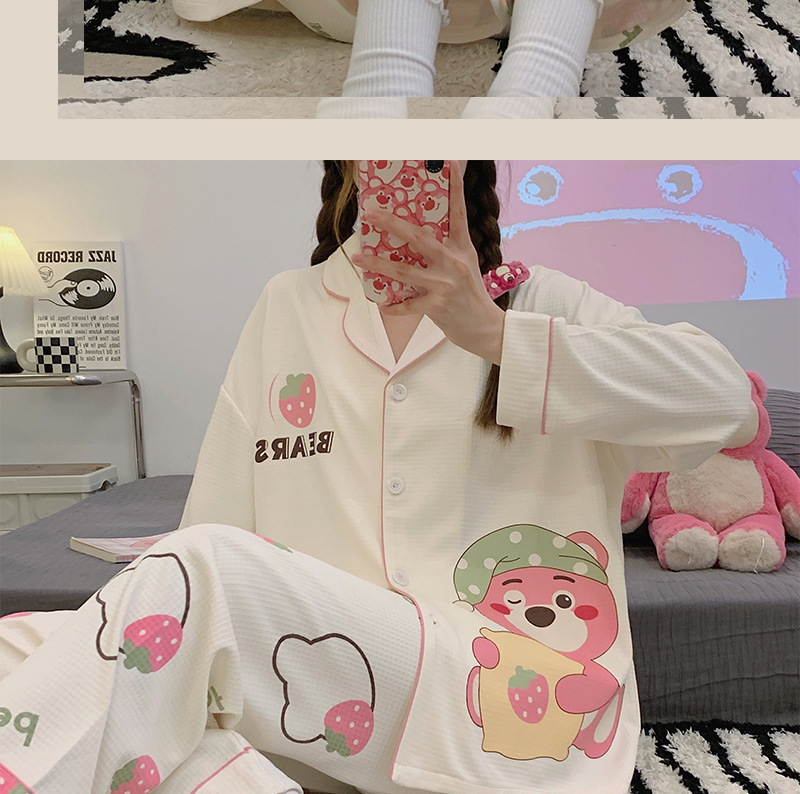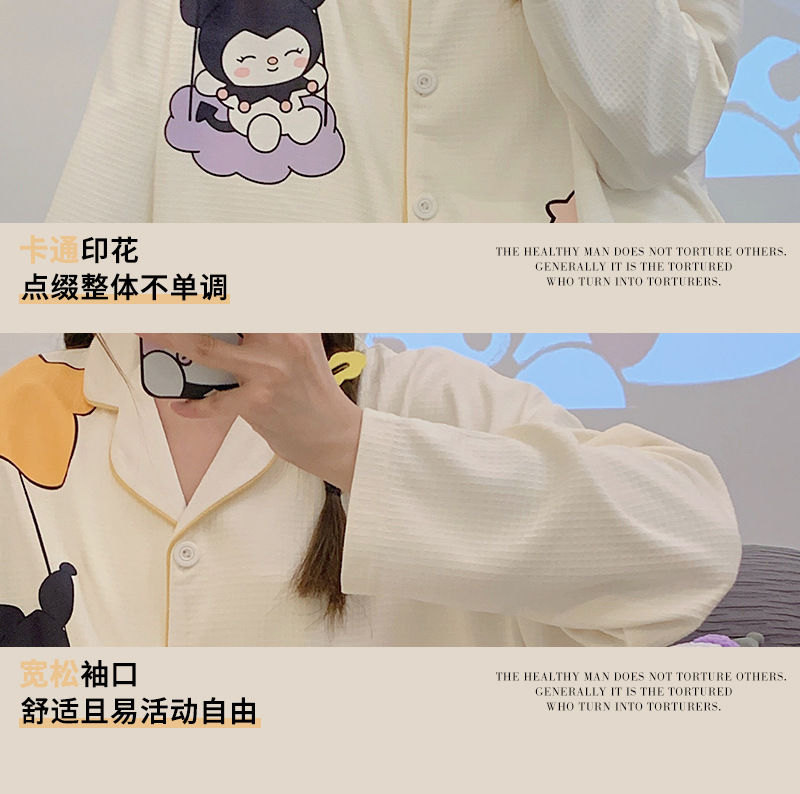 【舒适透气!温和亲肤】柔软亲肤,睡衣女士春秋季仿棉长袖新款可爱可外穿华夫格家居服套装。ra