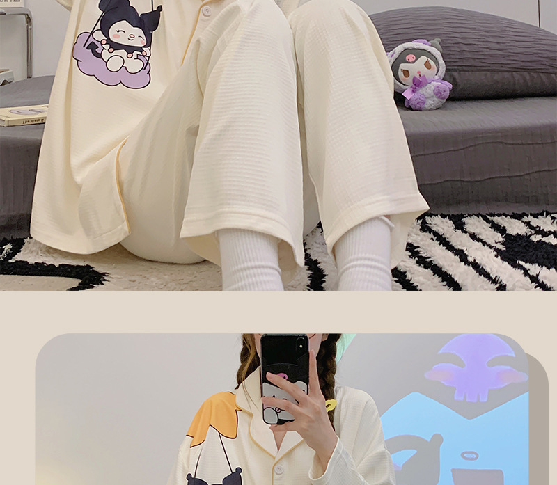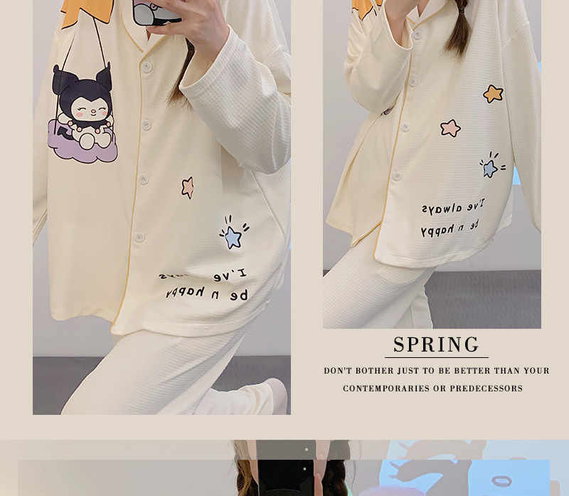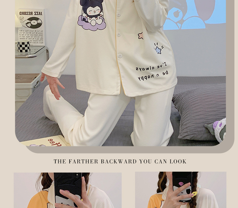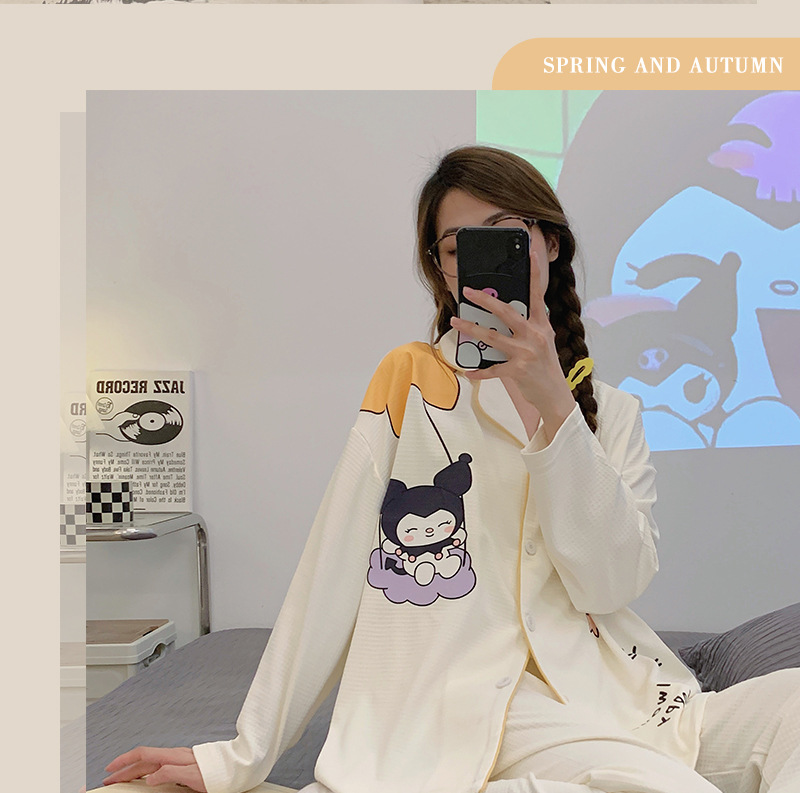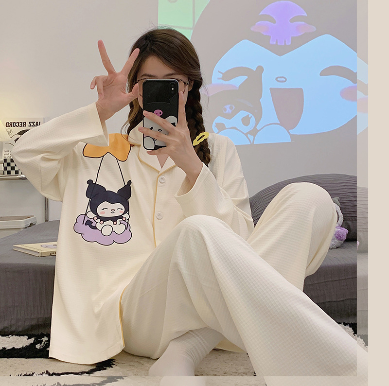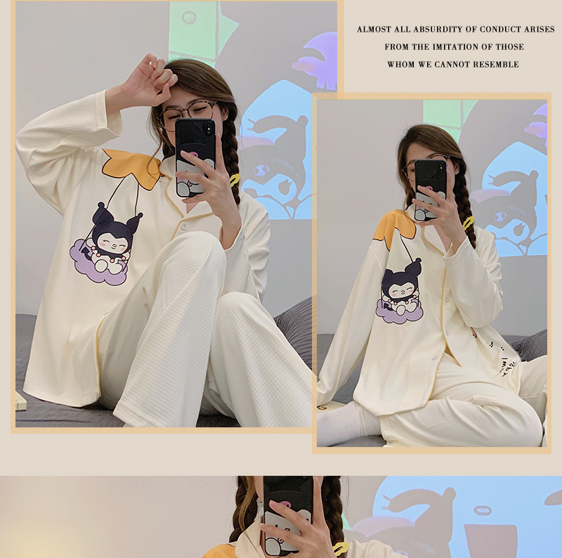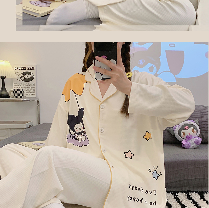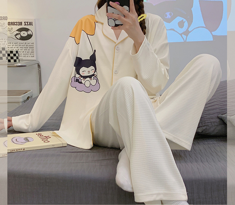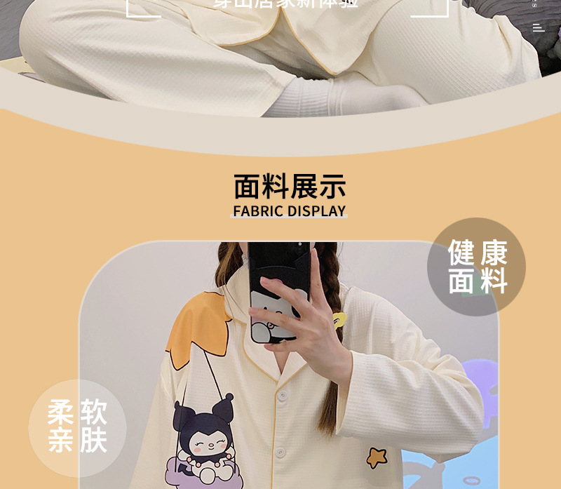【舒适透气!温和亲肤】柔软亲肤,睡衣女士春秋季仿棉长袖新款可爱可外穿华夫格家居服套装。ra