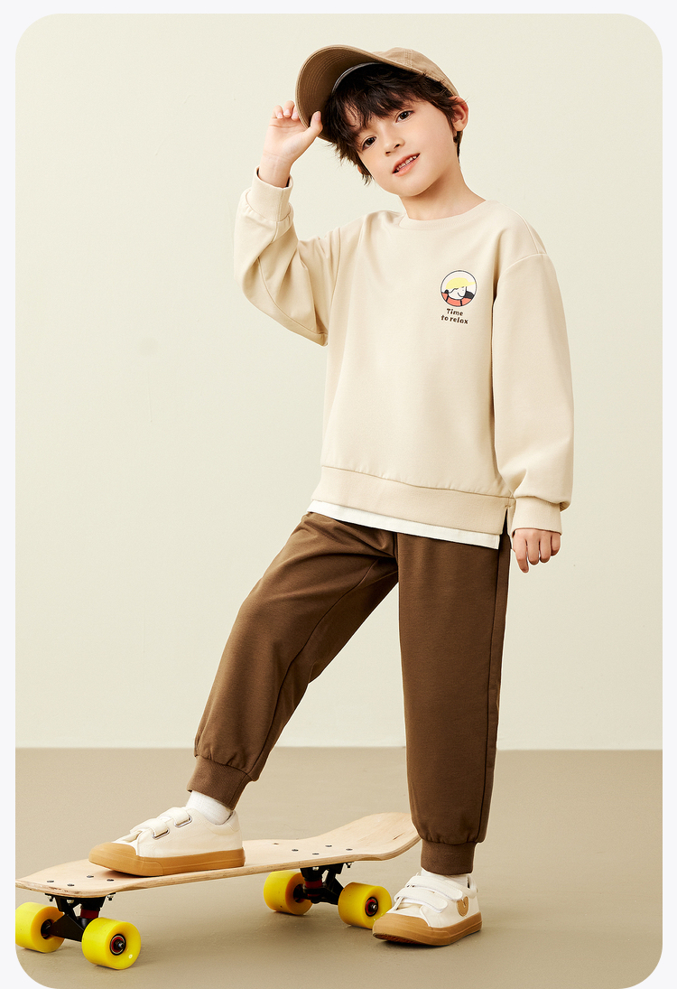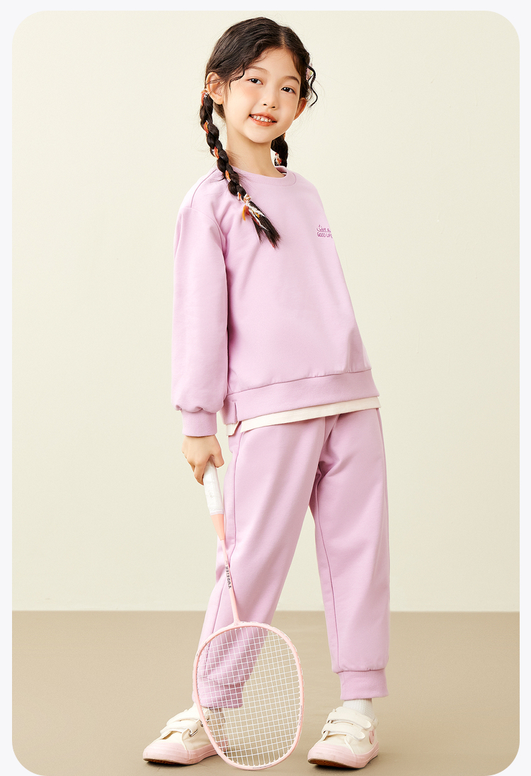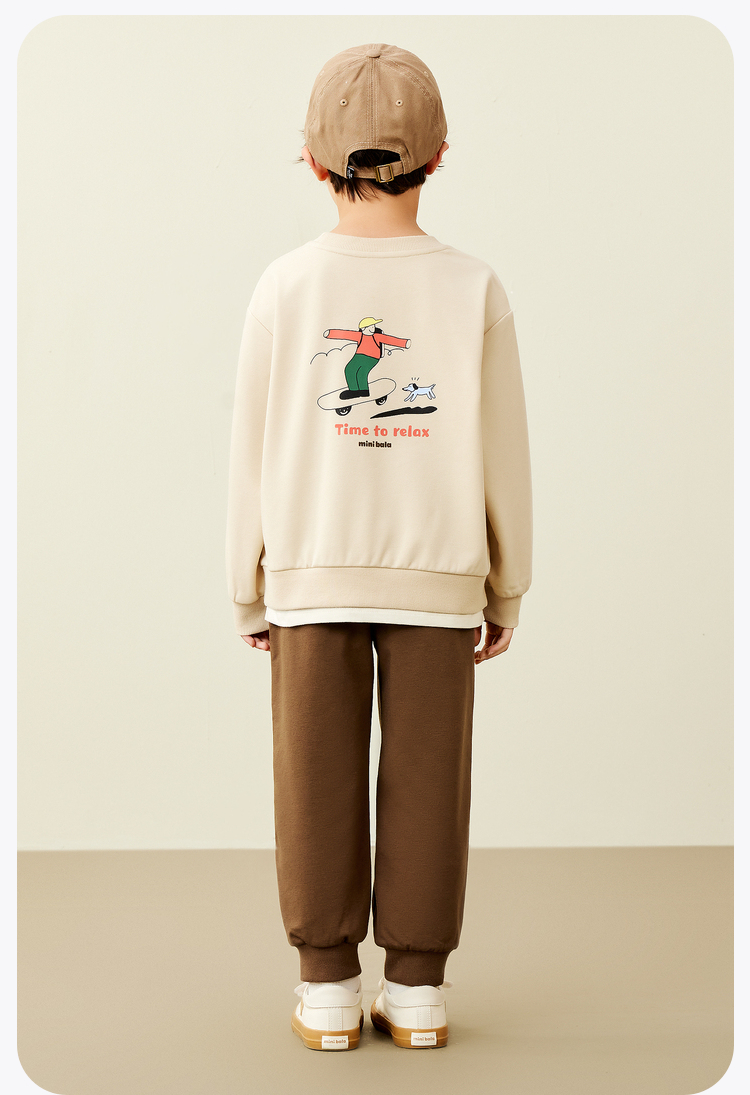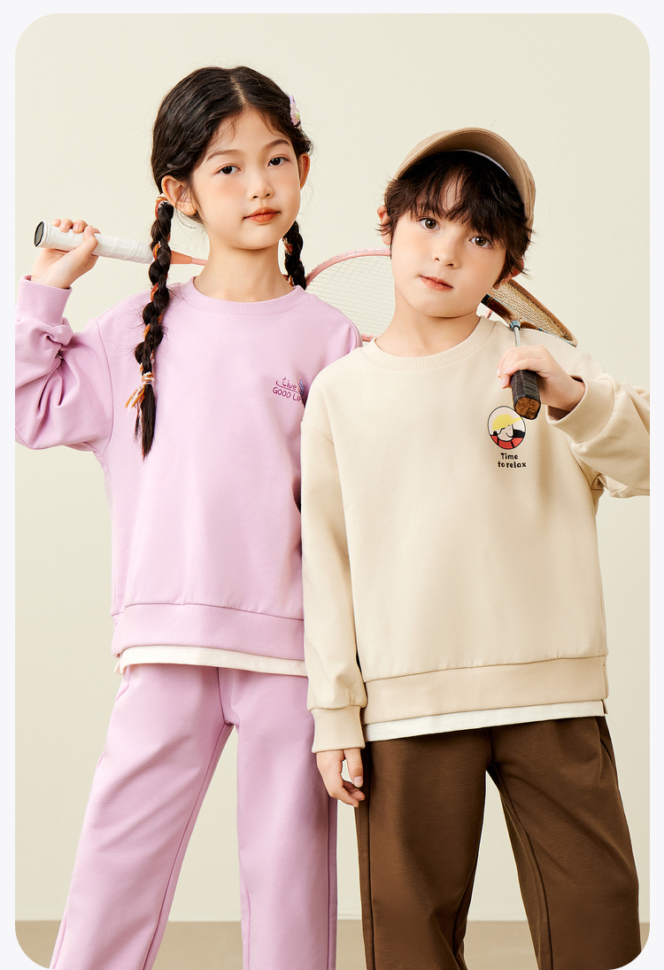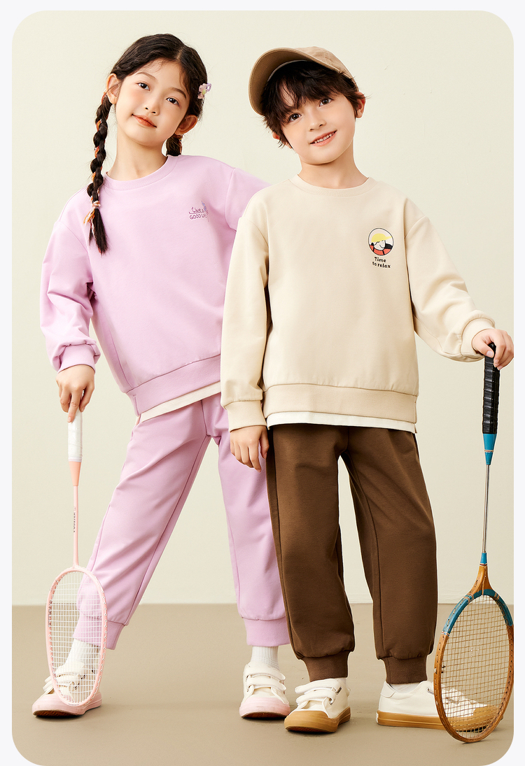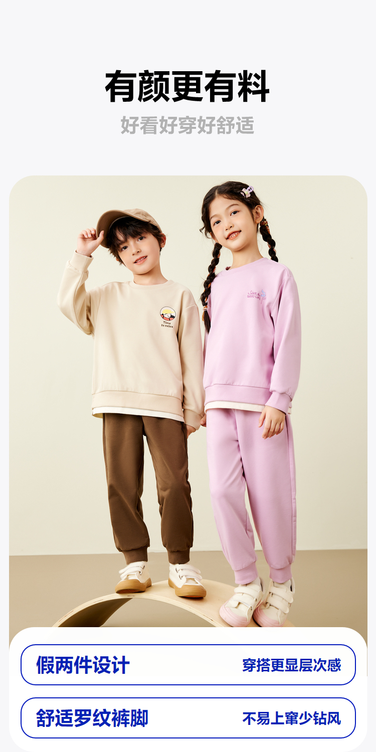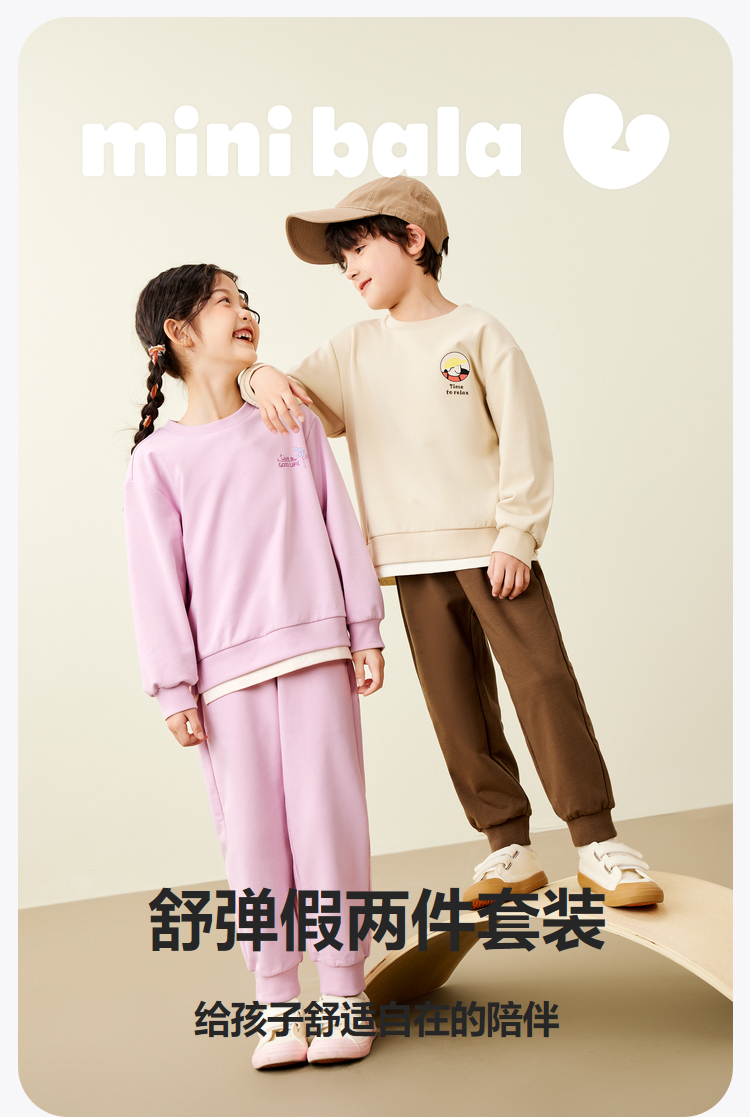 迷你巴拉长袖套装男女童儿童艺术家联名印花卫衣长裤两件套
