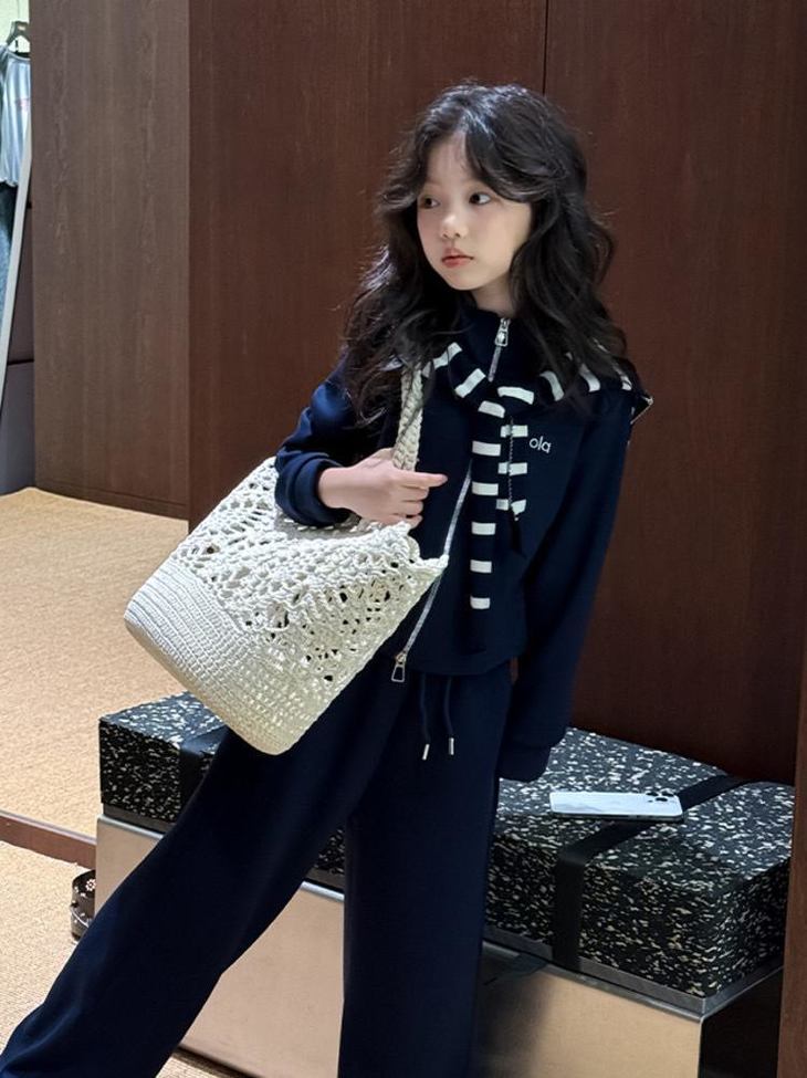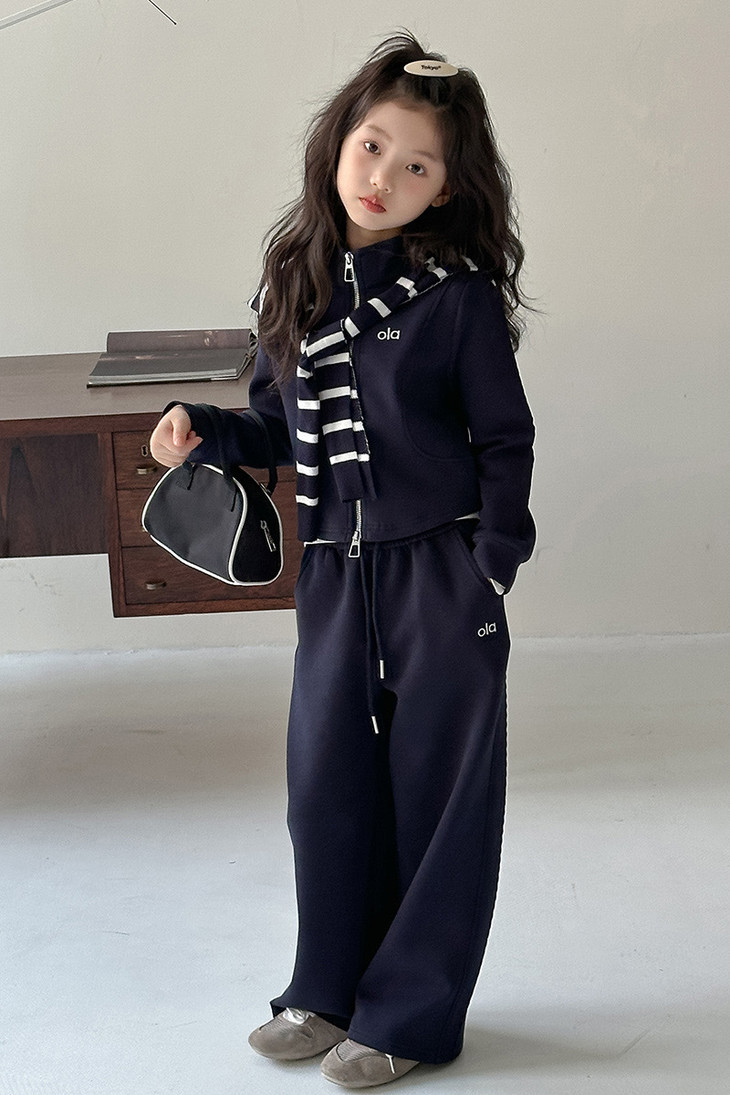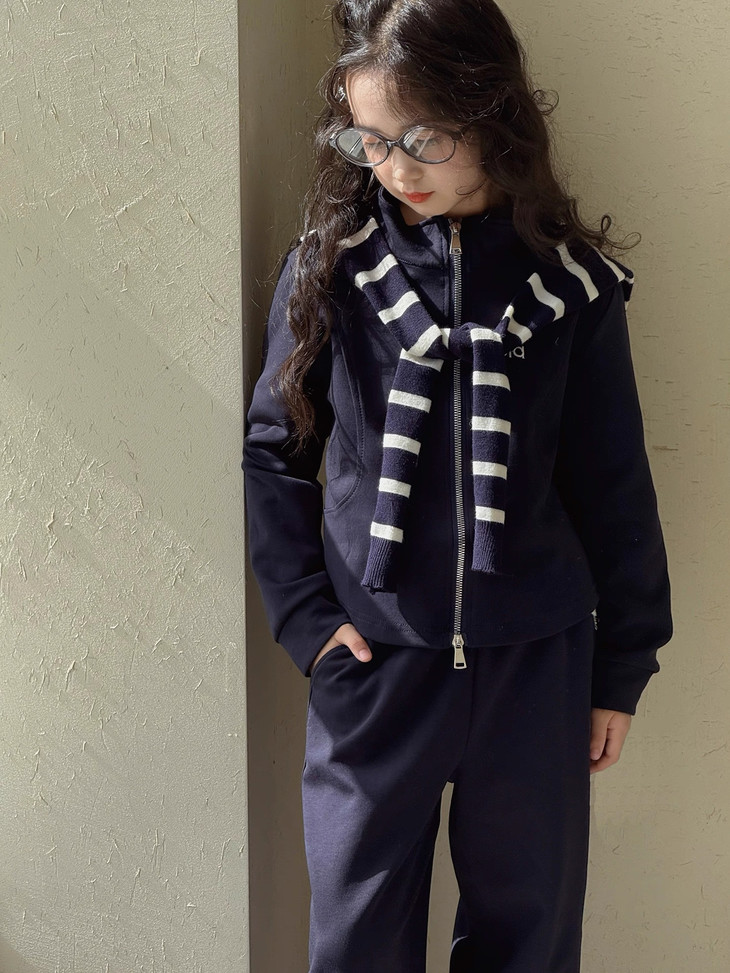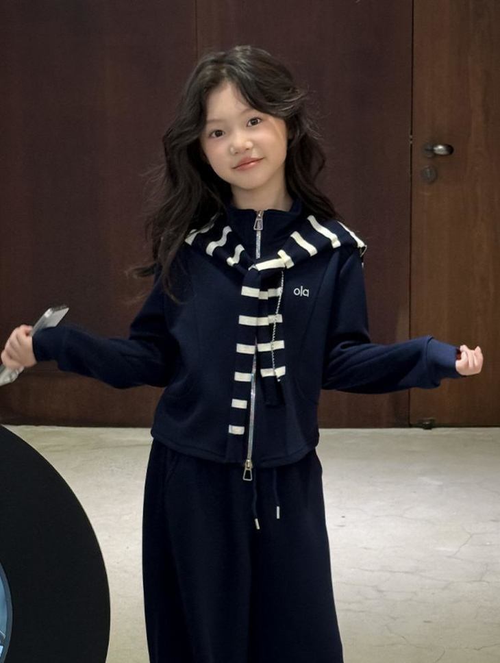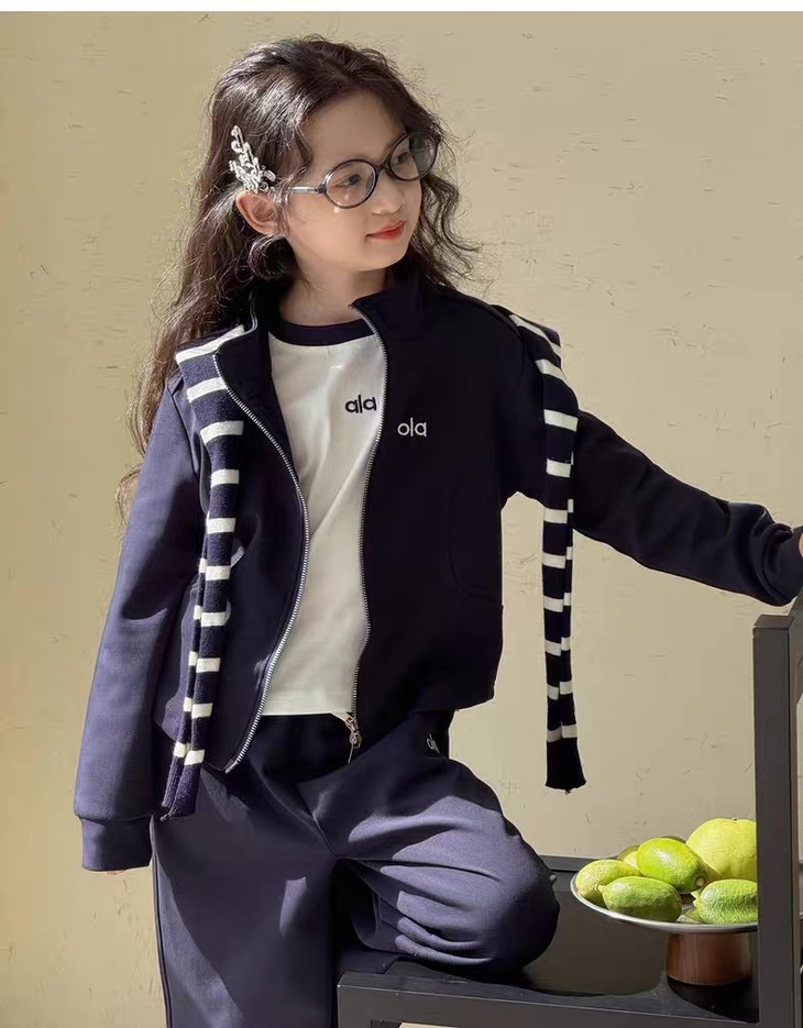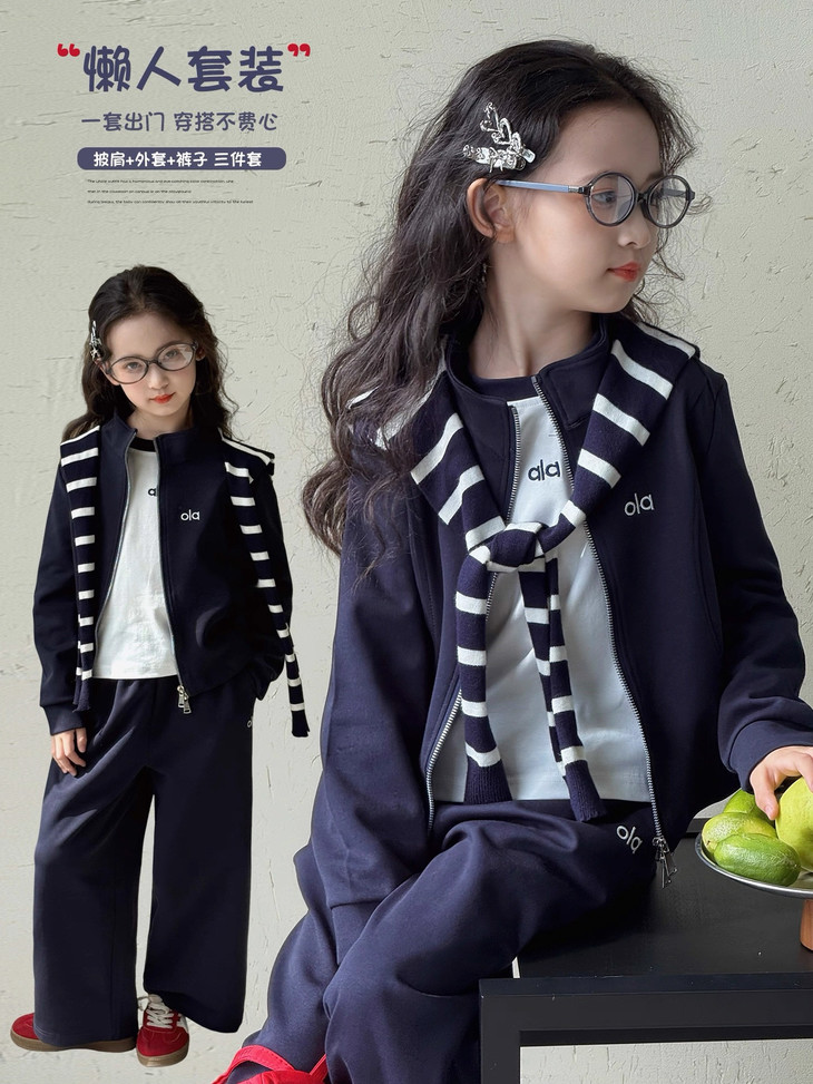 一套封神!拯救搭配荒的超级救星来了! 再也不用为娃的OOTD头秃! 藏青外套+同色系神裤+灵魂条纹披肩 上身秒变学院风小绅士/韩系小欧尼~ 三件叠穿=气场全开! 单穿拆搭=一周7天不重样! 懒癌宝妈直呼救命!! 闭眼抓一套出门都被夸会穿!!!