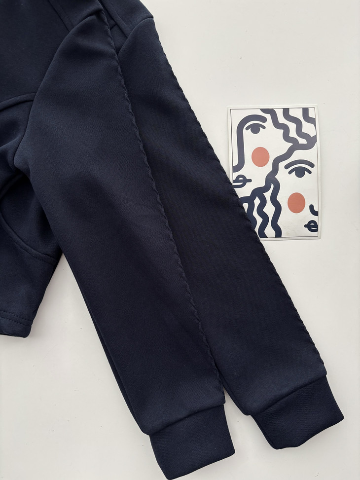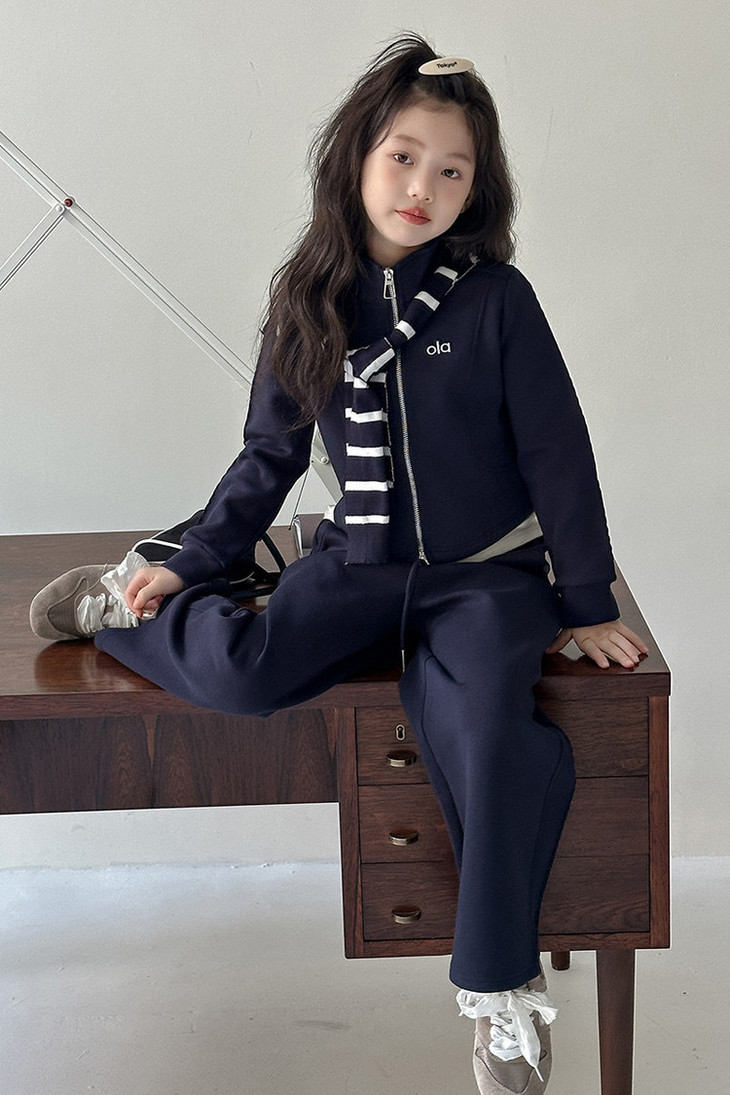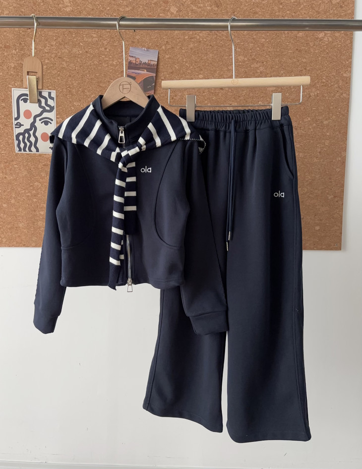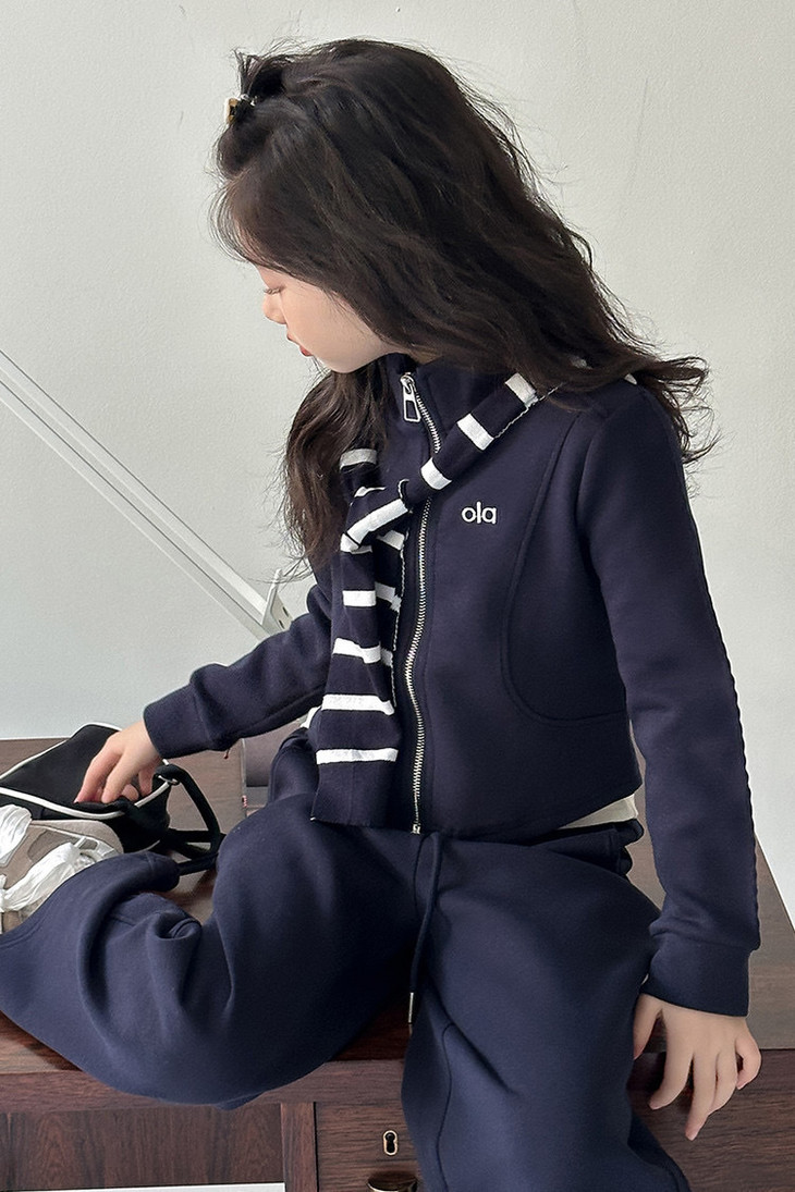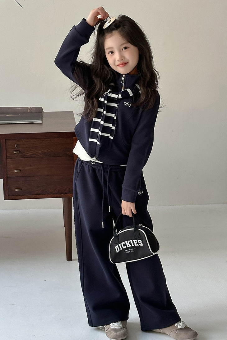 一套封神!拯救搭配荒的超级救星来了! 再也不用为娃的OOTD头秃! 藏青外套+同色系神裤+灵魂条纹披肩 上身秒变学院风小绅士/韩系小欧尼~ 三件叠穿=气场全开! 单穿拆搭=一周7天不重样! 懒癌宝妈直呼救命!! 闭眼抓一套出门都被夸会穿!!!