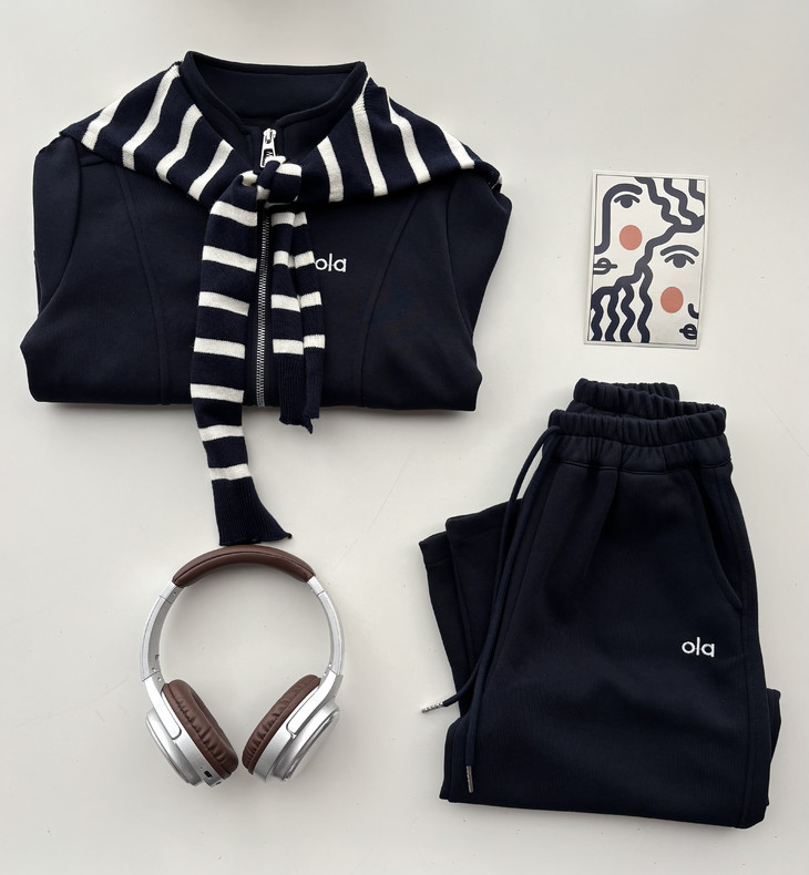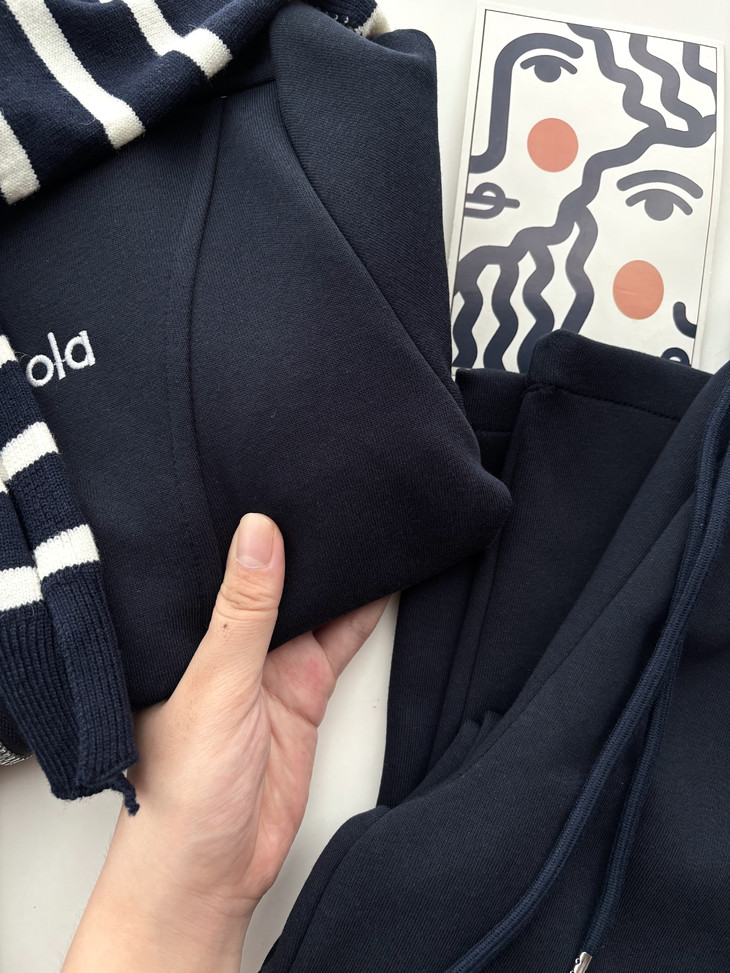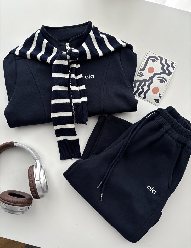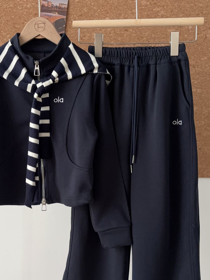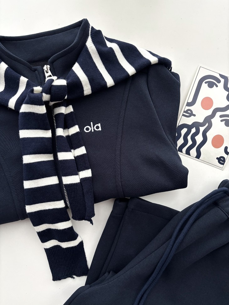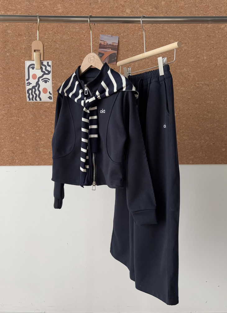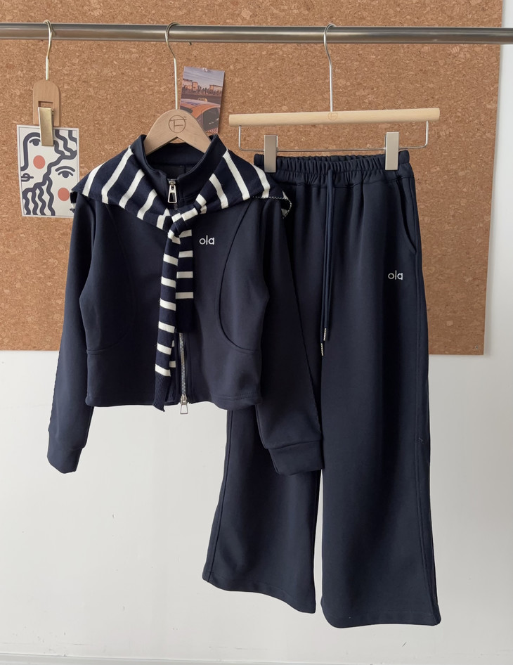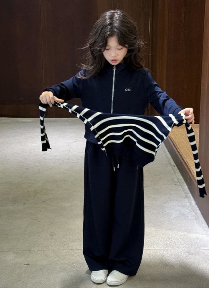 👍秋日街头最靓的韩系小甜豆来啦❗️上身超韩❗【条纹披肩运动三件套】🌟藏青主调+条纹披肩❗韩系时髦感爆棚❗ 🌻一套穿出门吸睛度max❗设计巧思藏不住,怎么搭都好看❗110-170码全cover