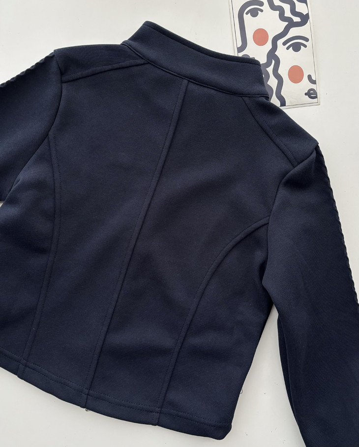 立领外套采用微宽松剪裁, 既不会显得臃肿,又能给孩子足够的活动空间, 利落的线条感让整体造型更显精神; 既保持了韩系穿搭的随性松弛感,又不会显得拖沓, 110-170码的梯度设计, 从孩童到少女都能找到合身的尺寸!