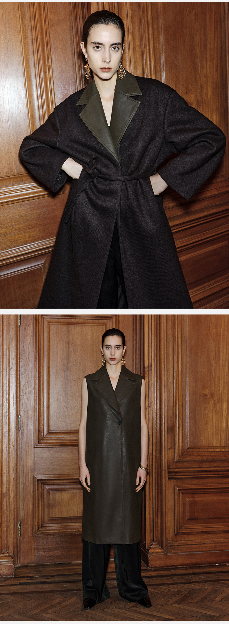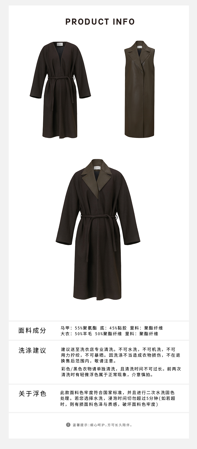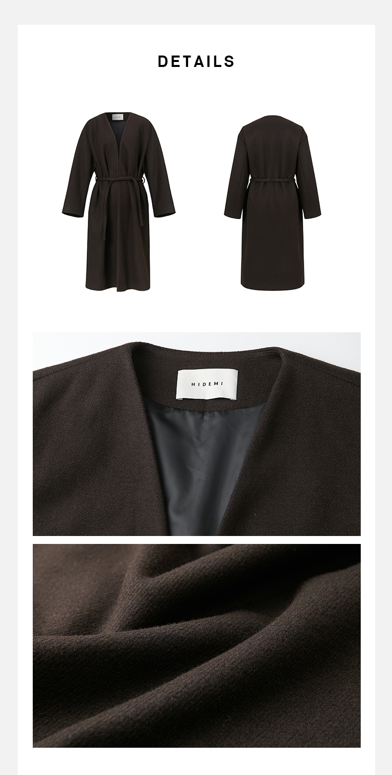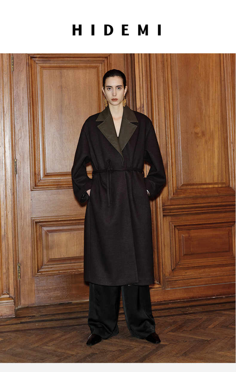 HIDEMI 【赵丽颖同款】节日系列极简分体两件式毛呢阔型浴袍腰带长款大衣