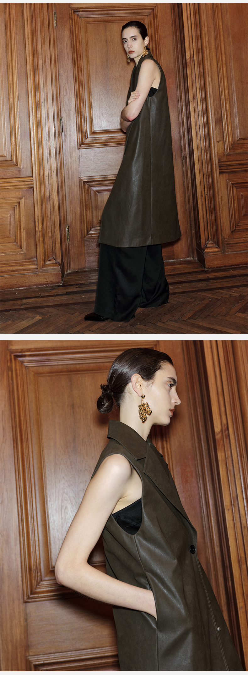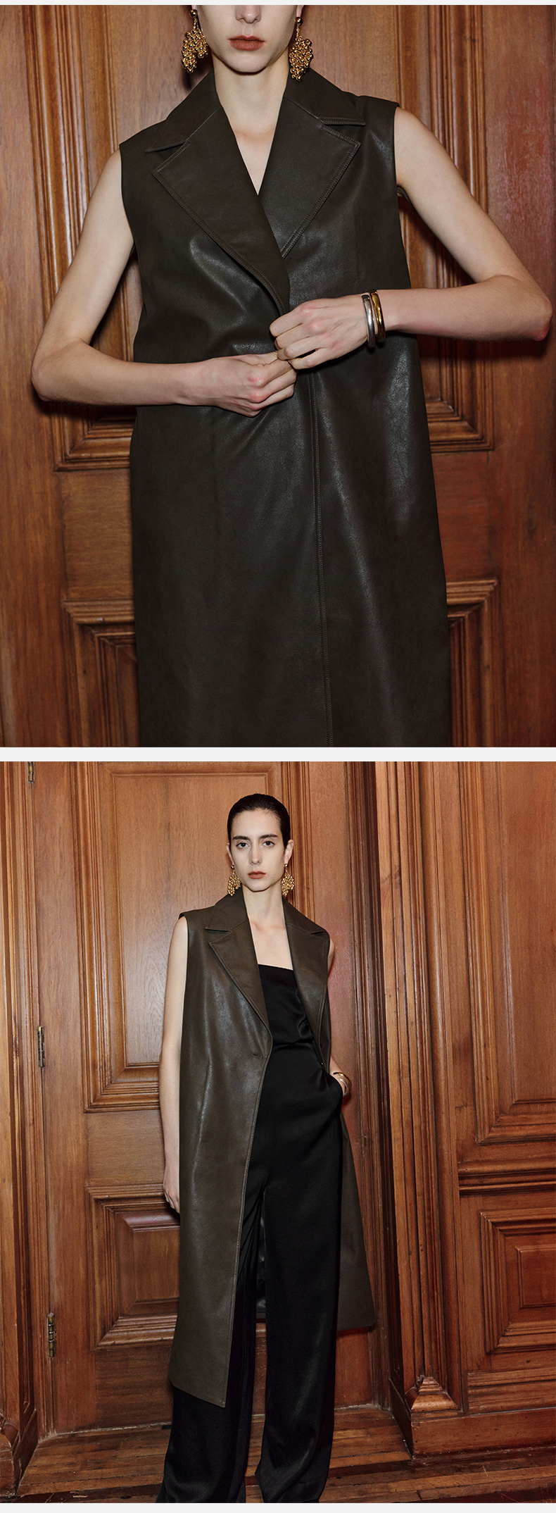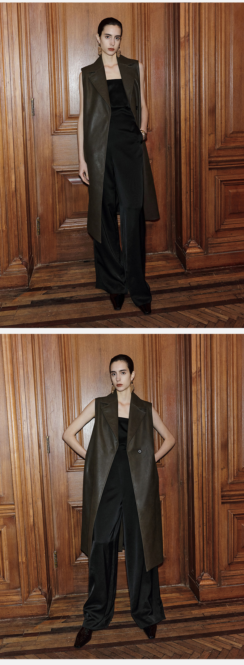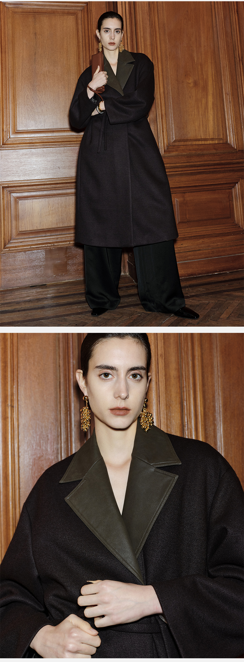 HIDEMI 【赵丽颖同款】节日系列极简分体两件式毛呢阔型浴袍腰带长款大衣