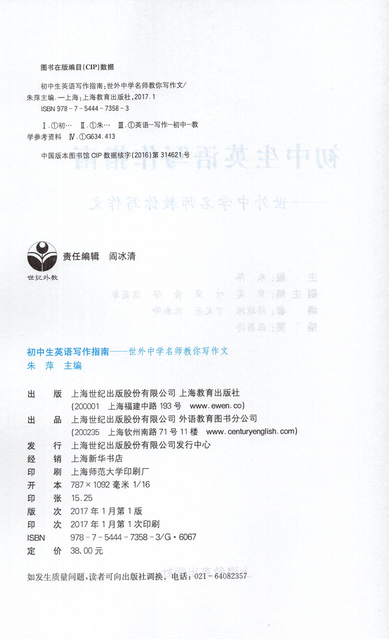 初中生英语写作指南——世外中学名师教你写作文 深度剖析 扫描二维码即获7节写作微课 初中英语写作参考资料 上海教育出版社