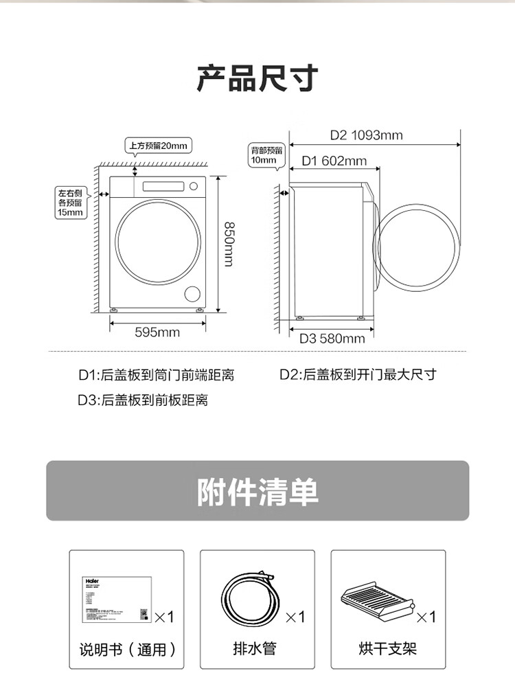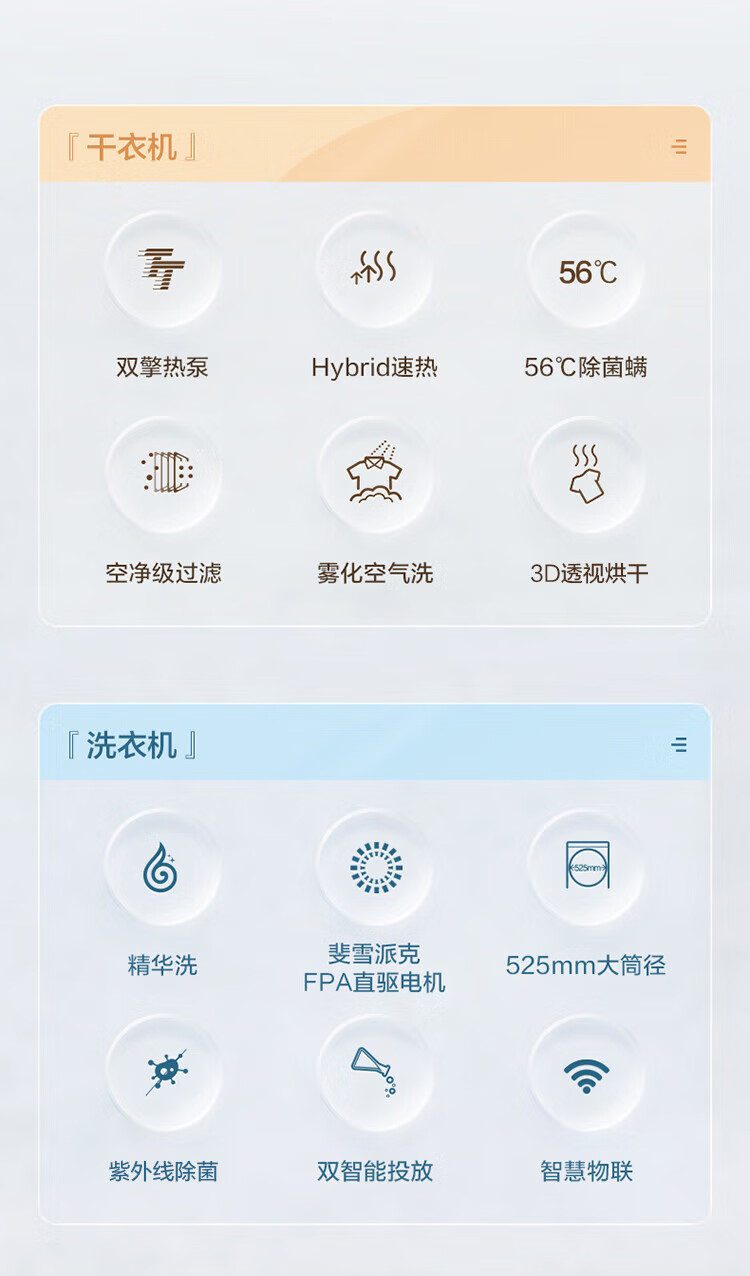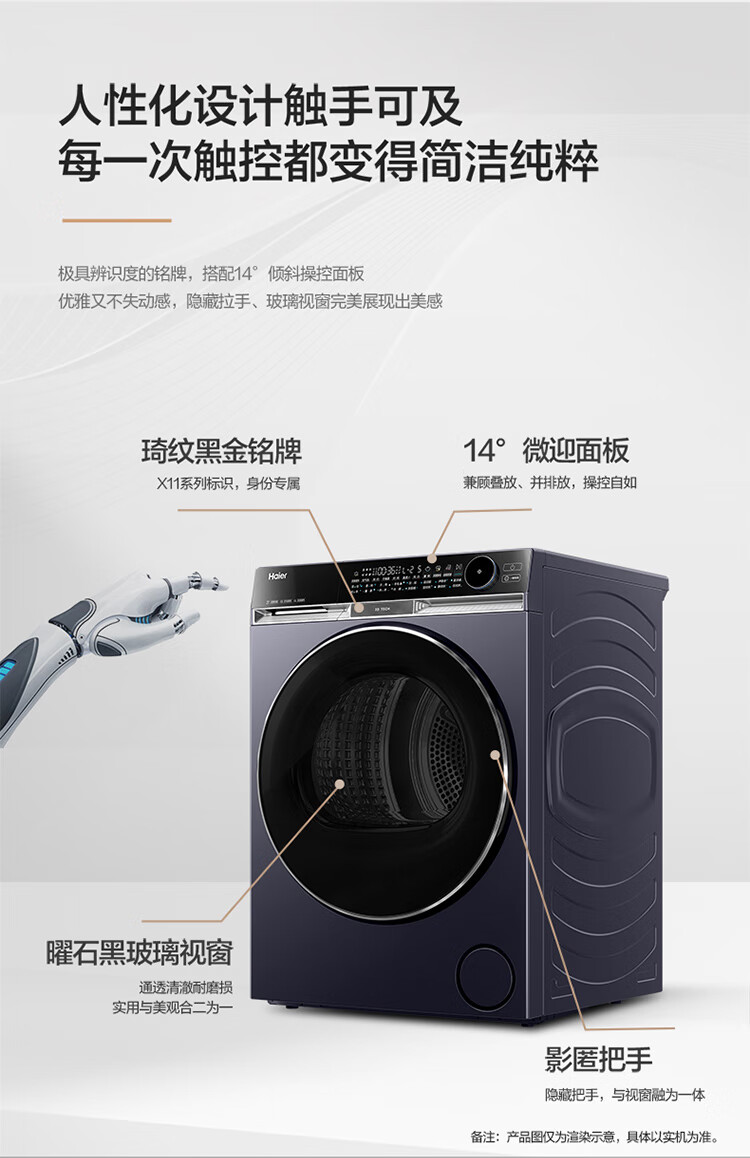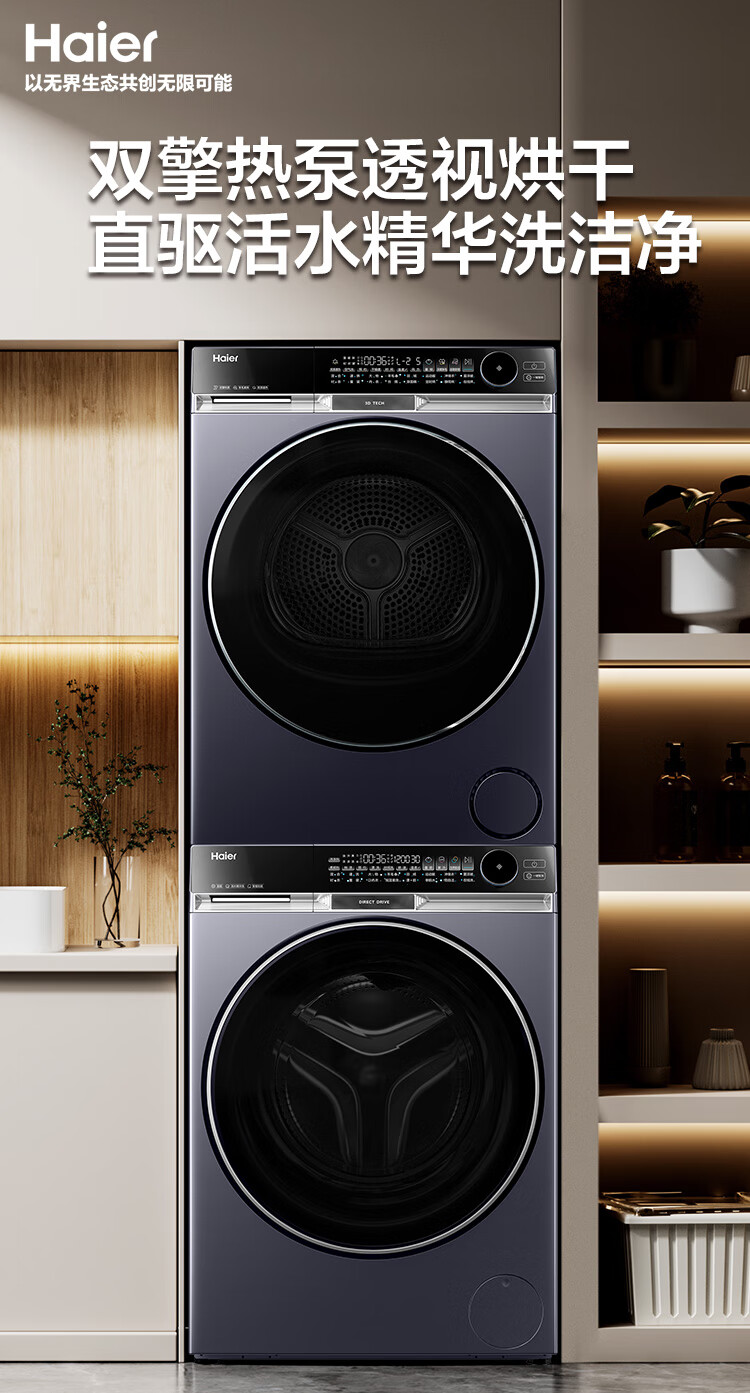 【朗境X11系列】海尔576洗烘套装10公斤薄直驱滚筒精华洗双擎热泵羊毛蓝标绿标 直驱精华洗+羊毛蓝标绿标+3D透视烘576